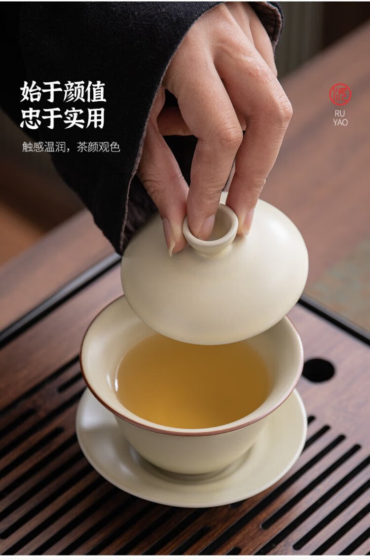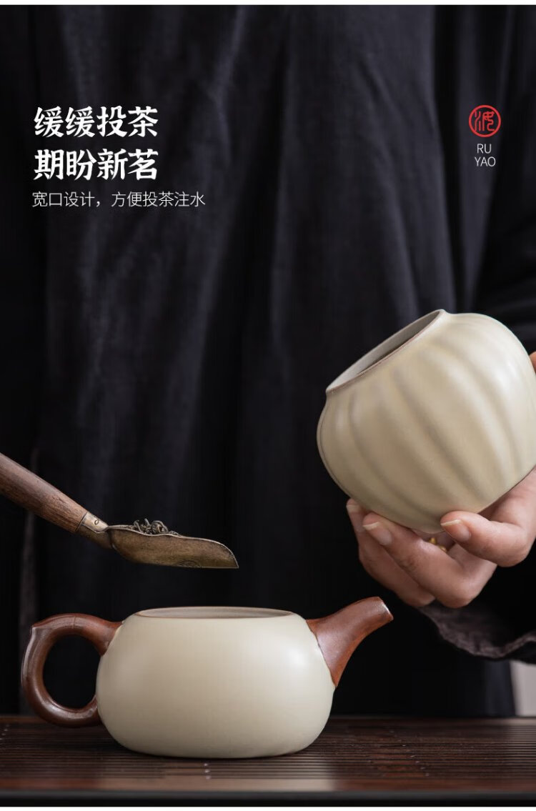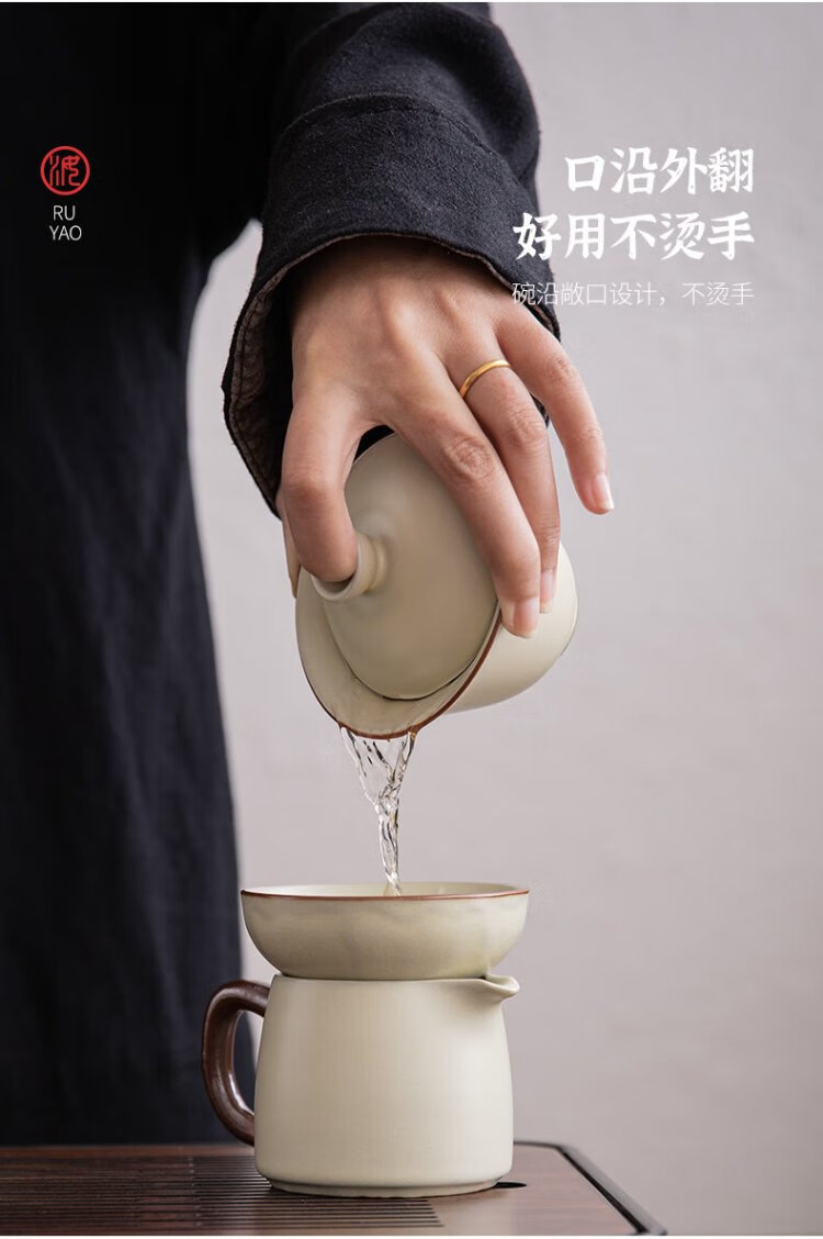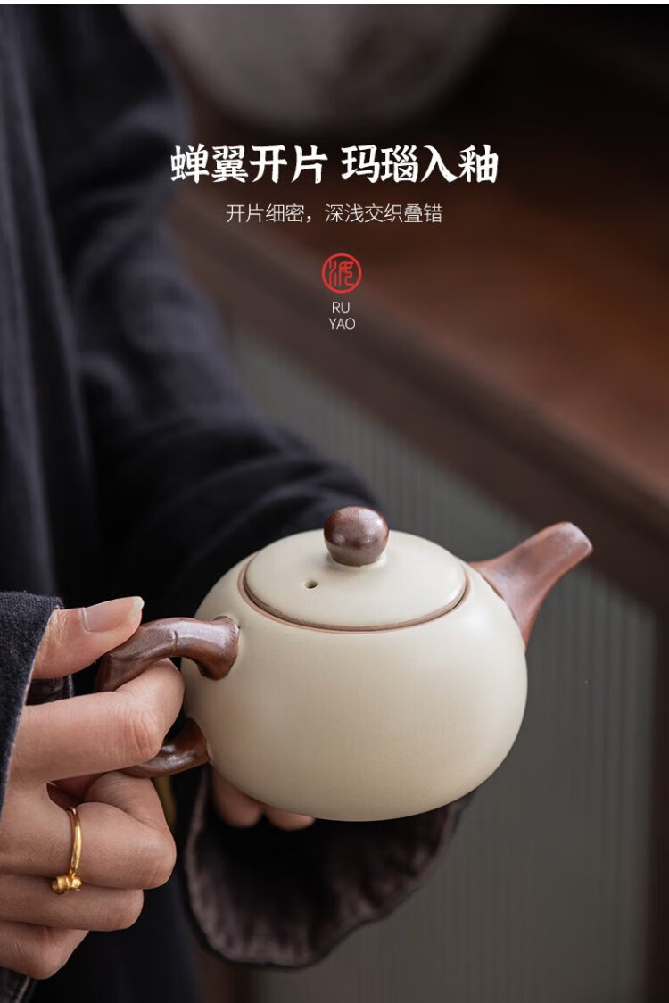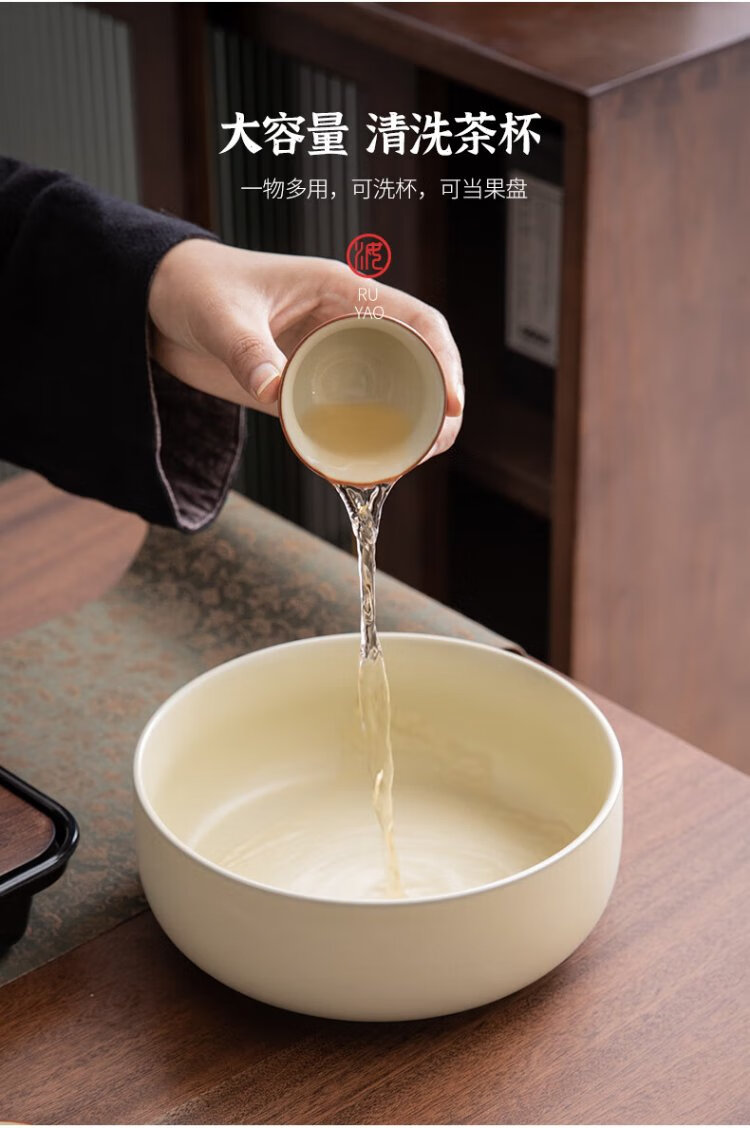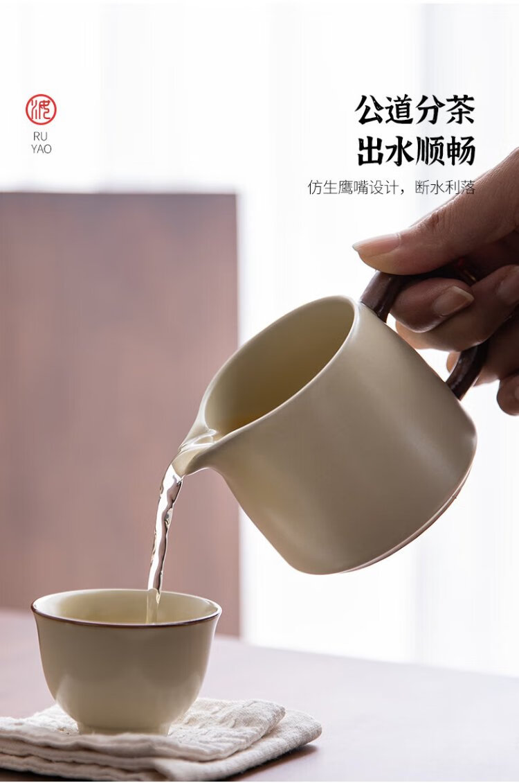Lingyi tea set complete tea set set beige Ru kiln teapot tea cup gift box beige Ru kiln 16-head gift box set