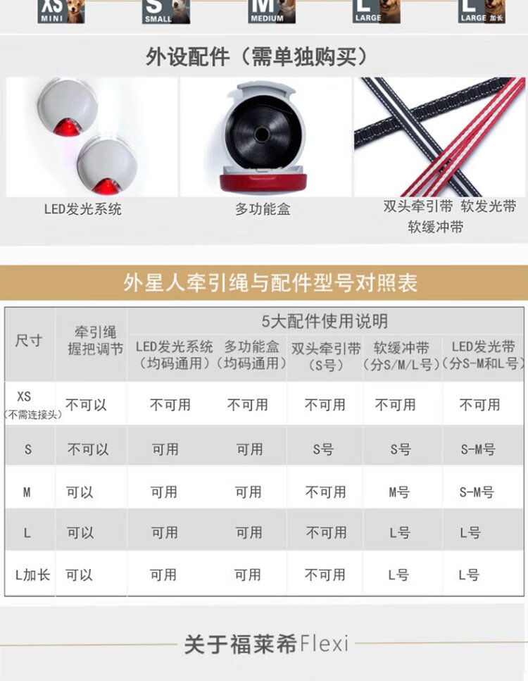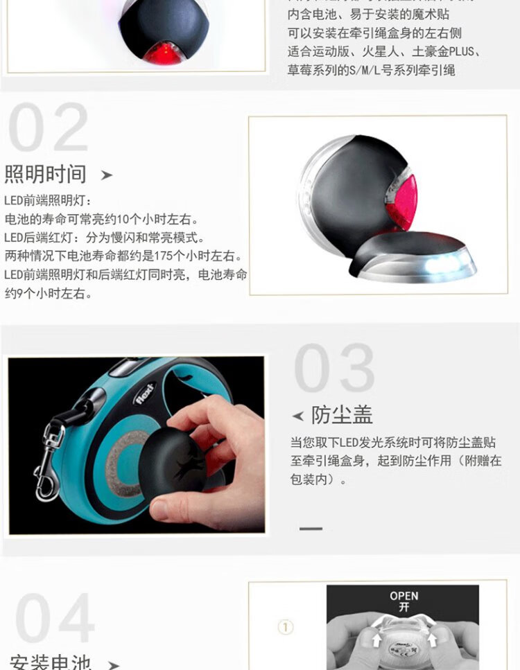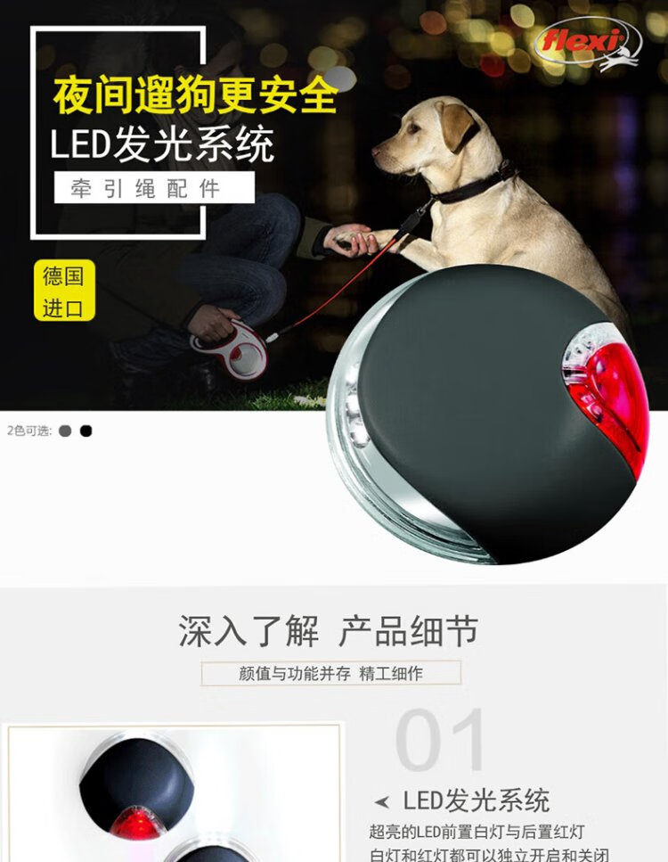 FLEXI pet dog automatic traction rope automatic retractable chain accessories LED light-mysterious black