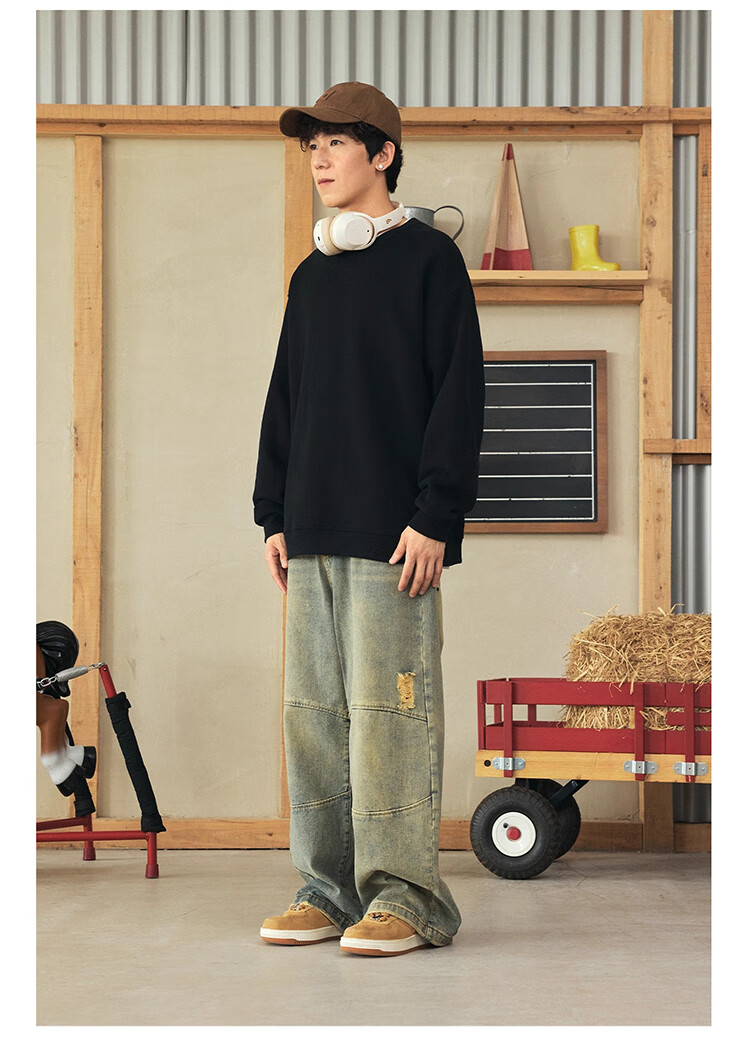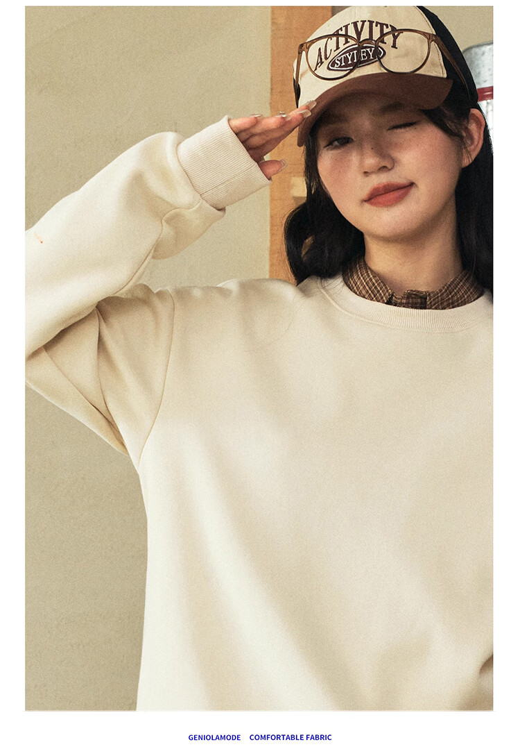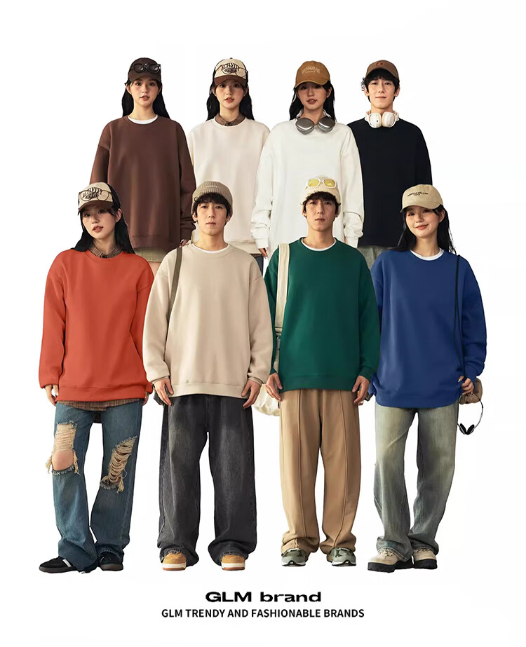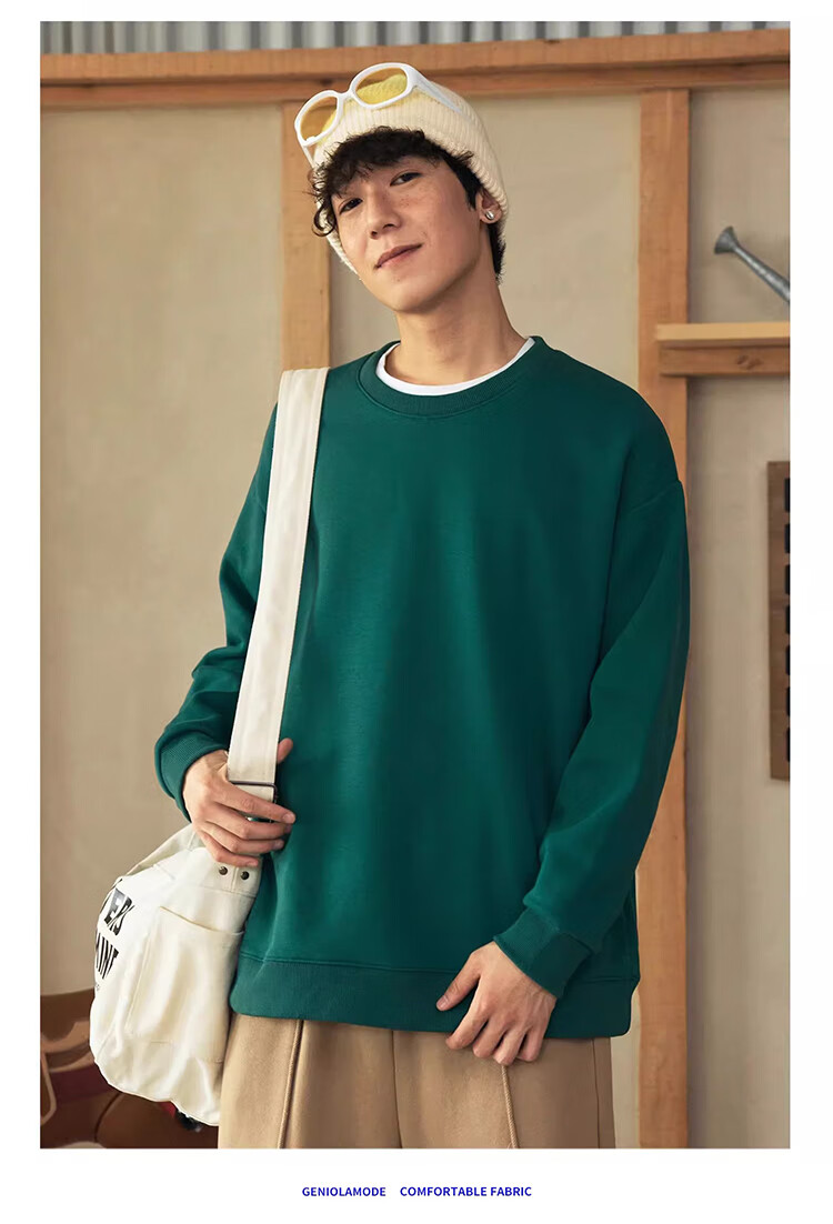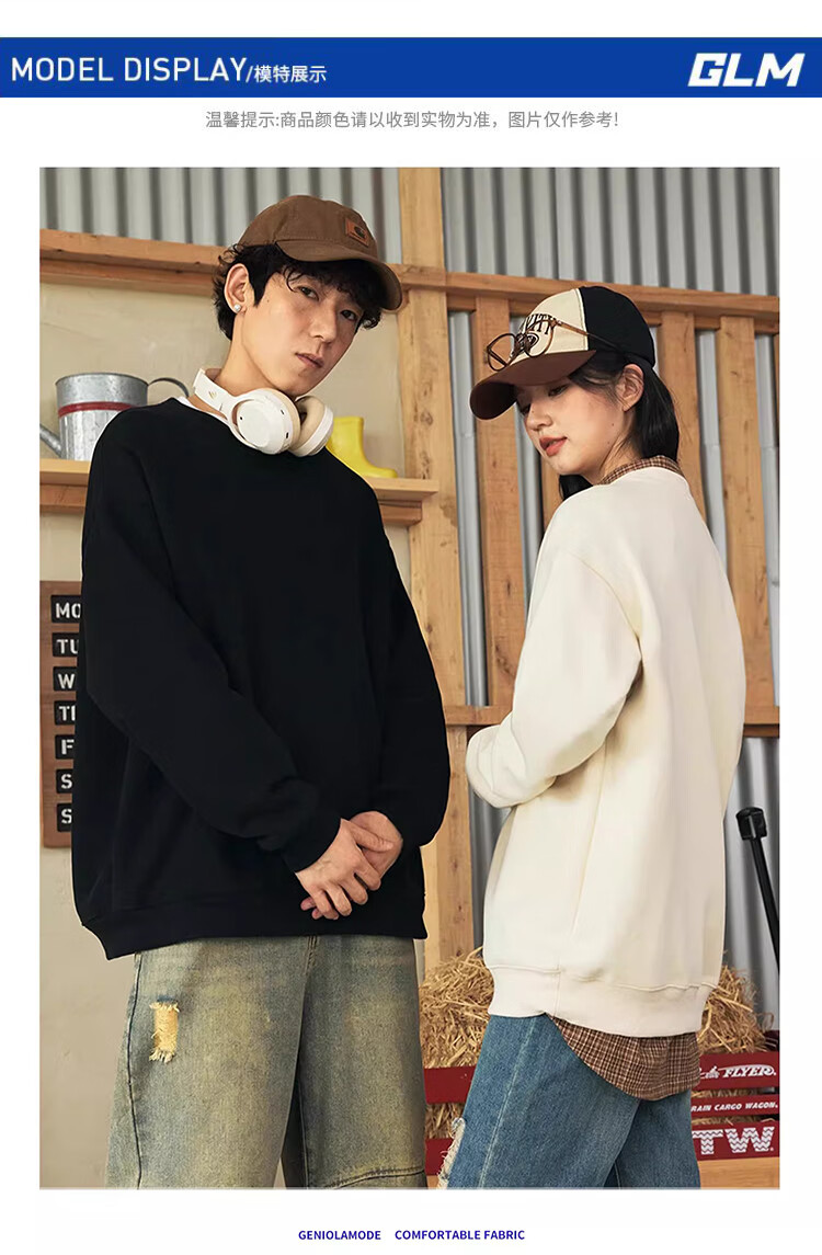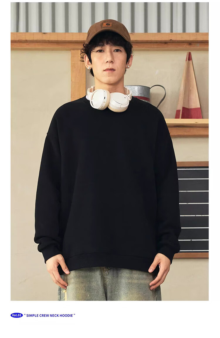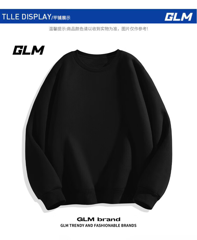 GLM velvet sweatshirt men's winter loose and versatile sports round neck bottoming shirt casual jacket black velvet XL
