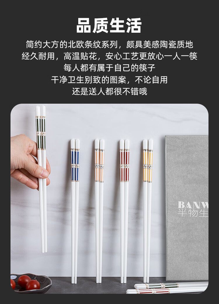Набор керамических палочек для еды с периодом полураспада для одного человека и одна пара для одного человека, специальные палочки для еды, общественные палочки для еды, антибактериальные, устойчивые к плесени, противоскользящие, высококачественные палочки для еды