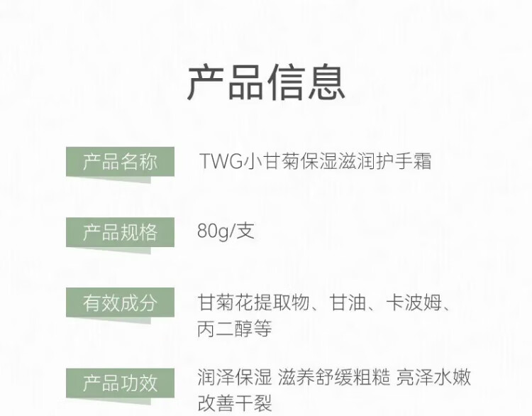 TWG Little Chamomile Hand Cream 80ml*2 Little Daisy Dry and Rough Moisturizing Moisturizing Anti-Dry Crack Gift