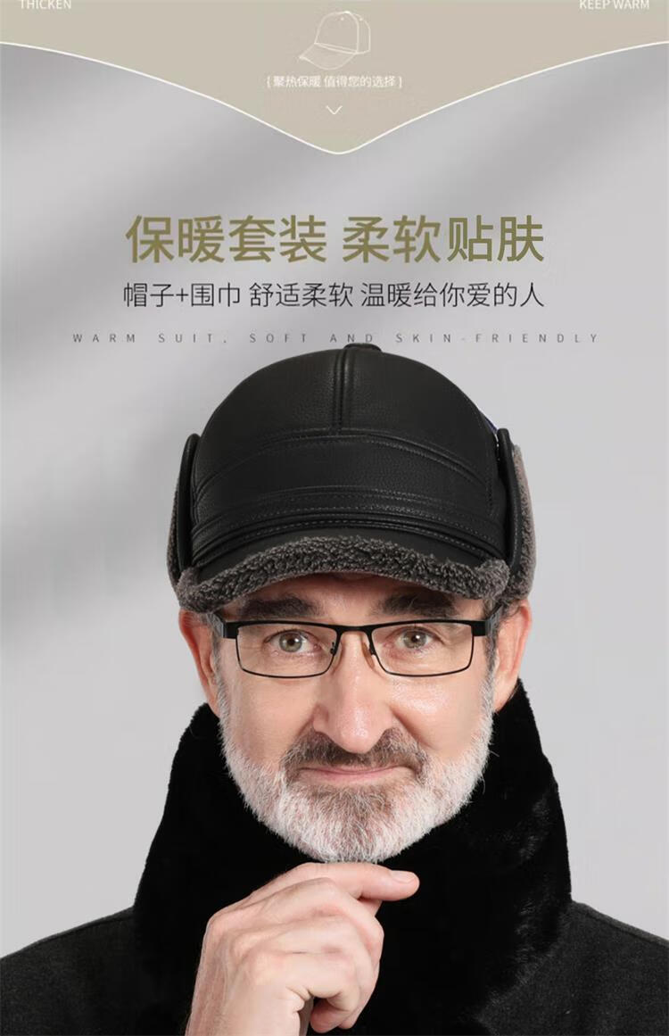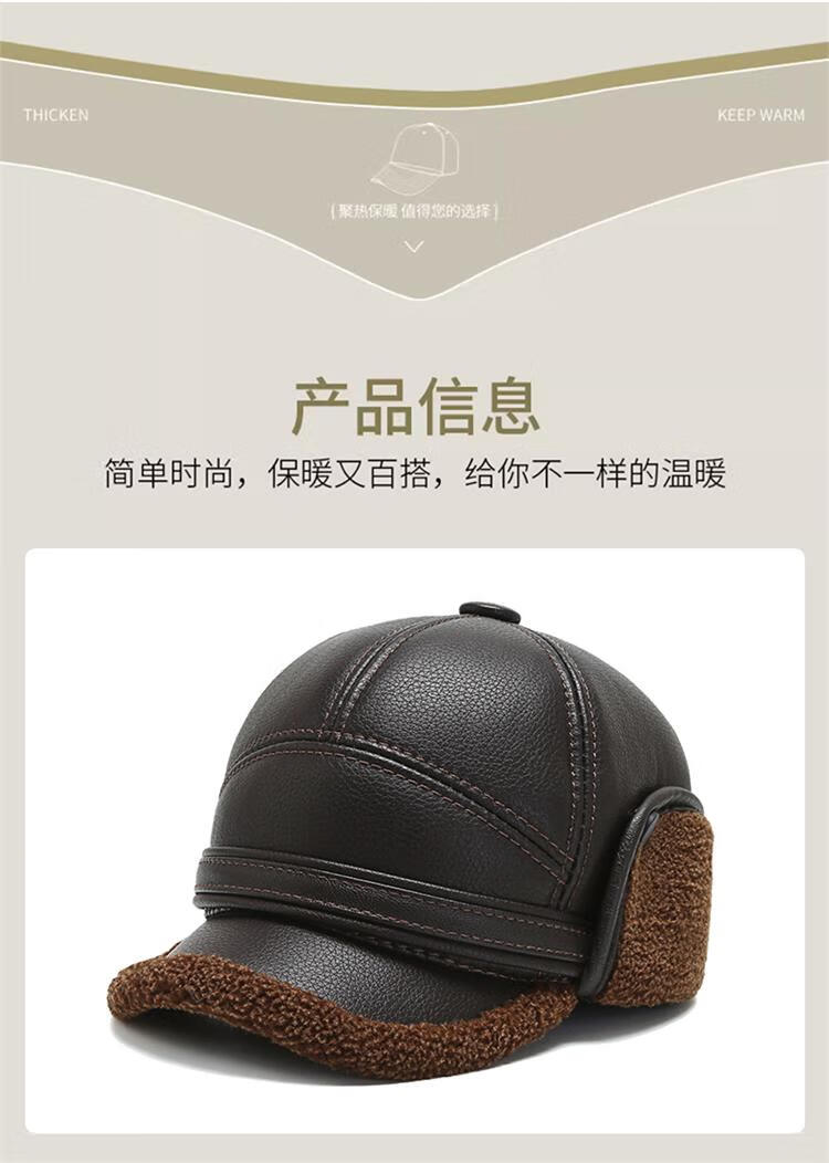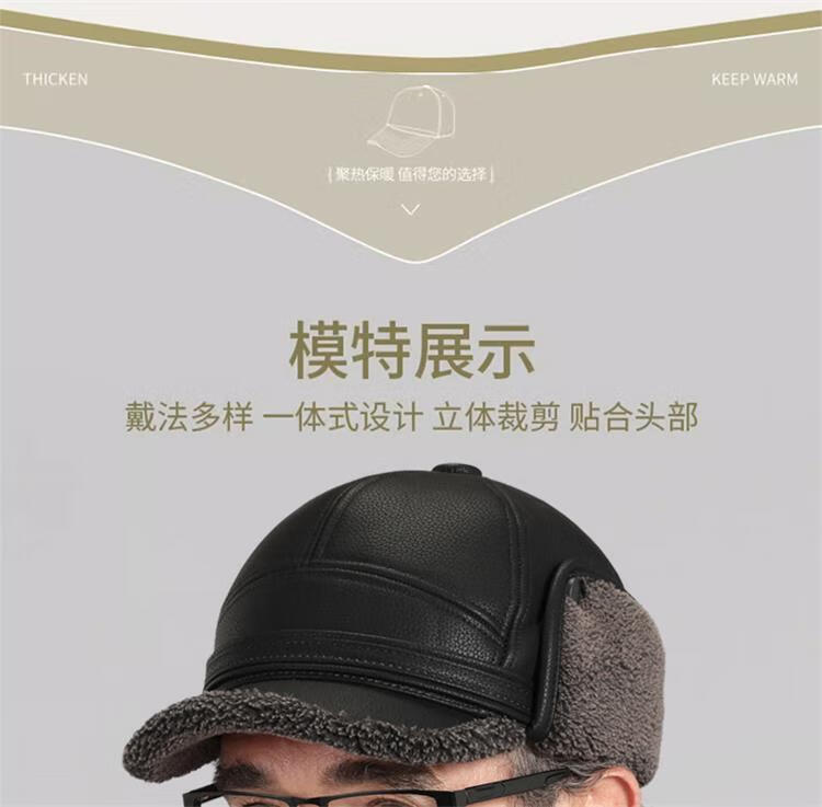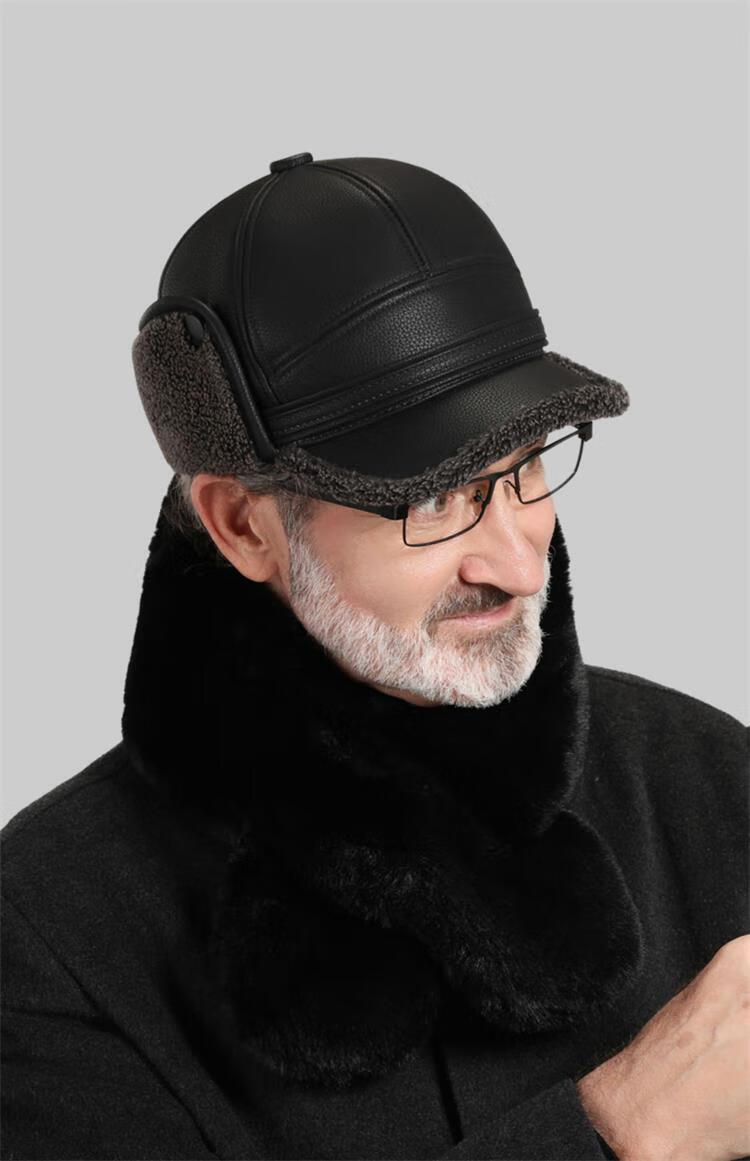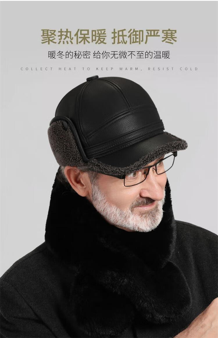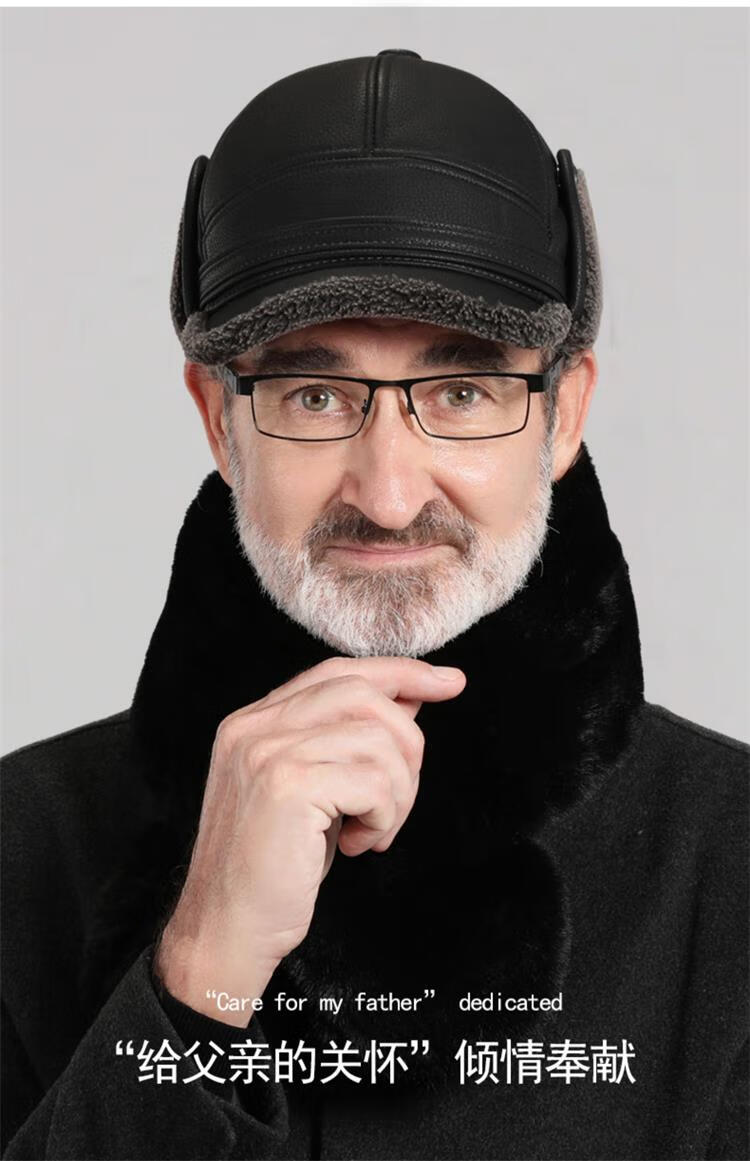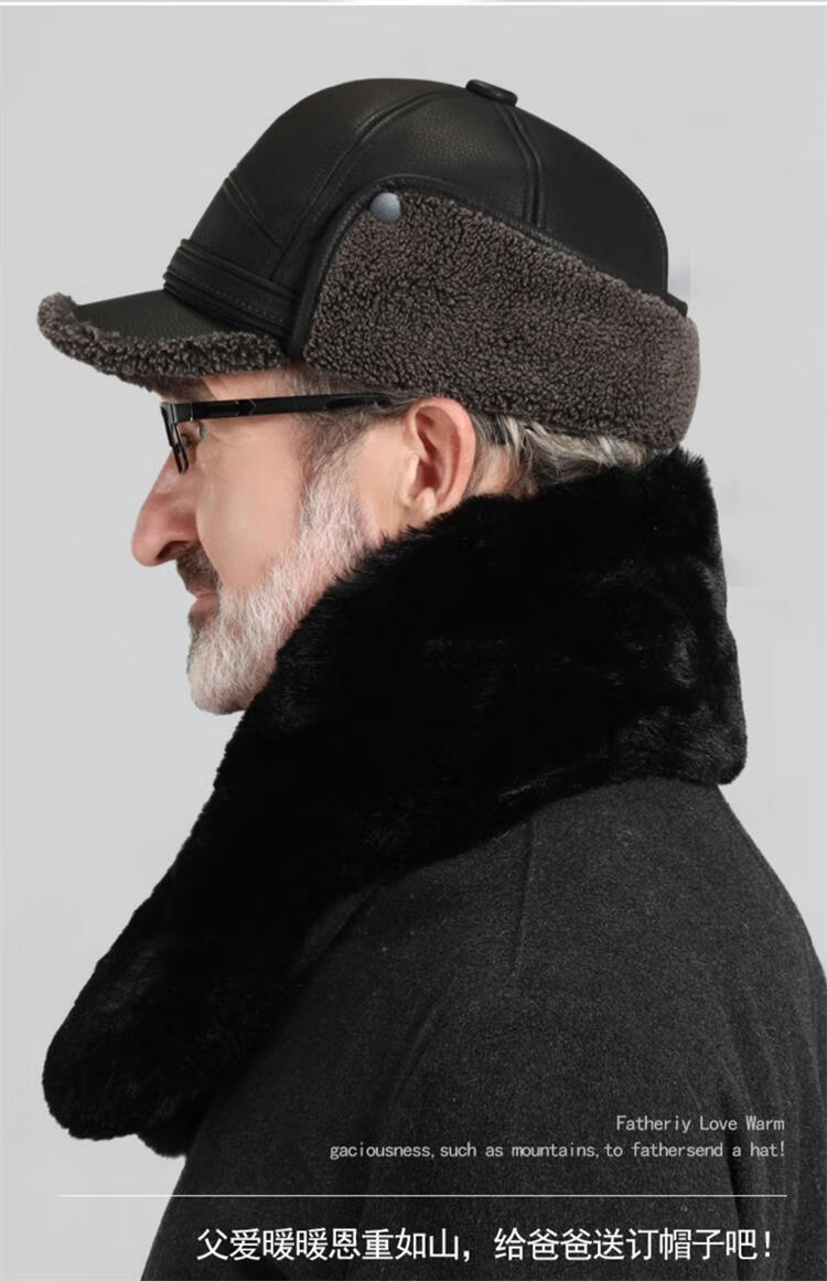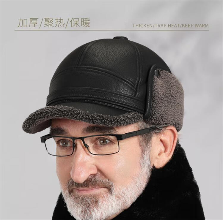 Woodpecker hat men's winter plus velvet thickened warm leather hat for dad, grandpa, the elderly, middle-aged and elderly windproof ear protection peaked cap