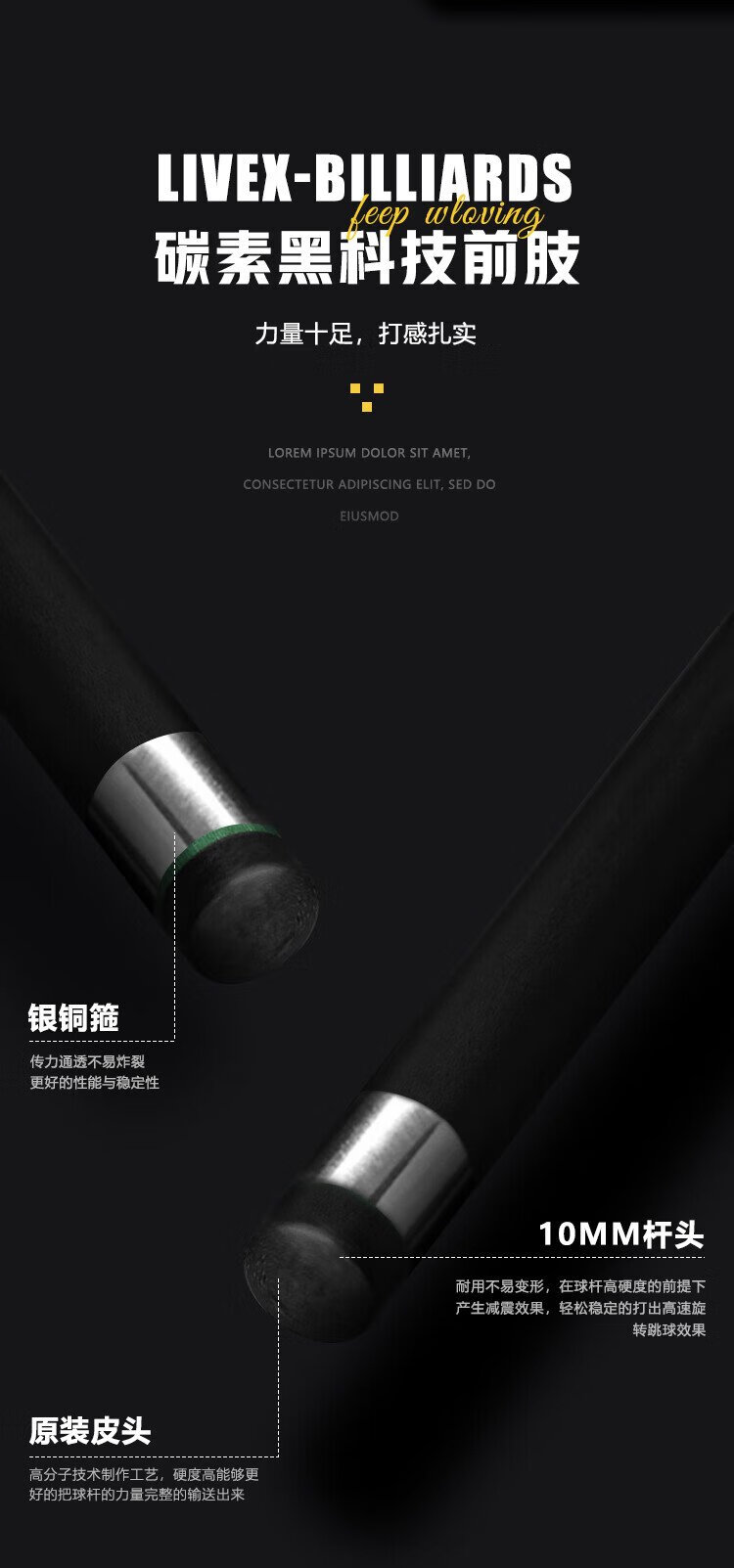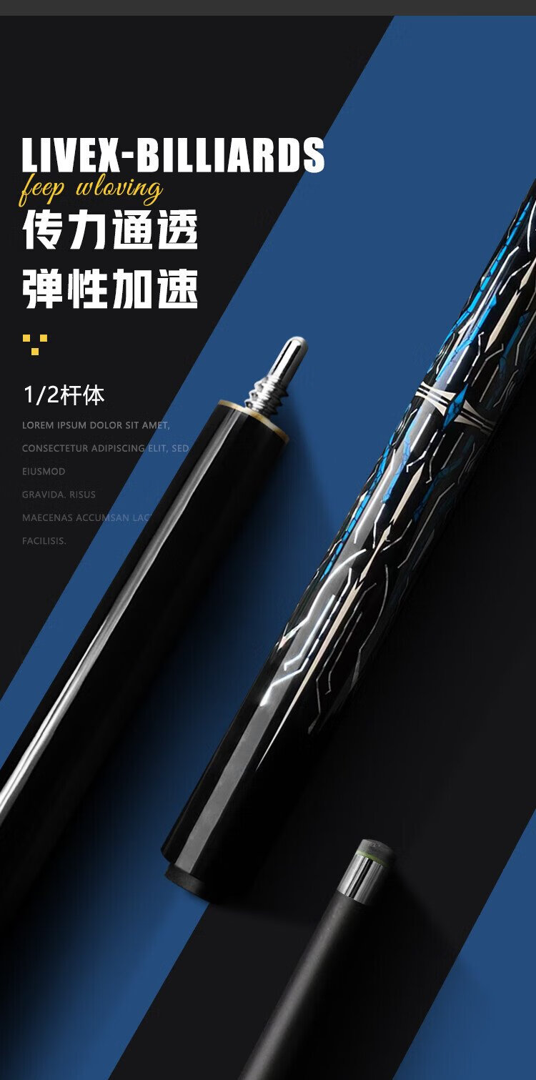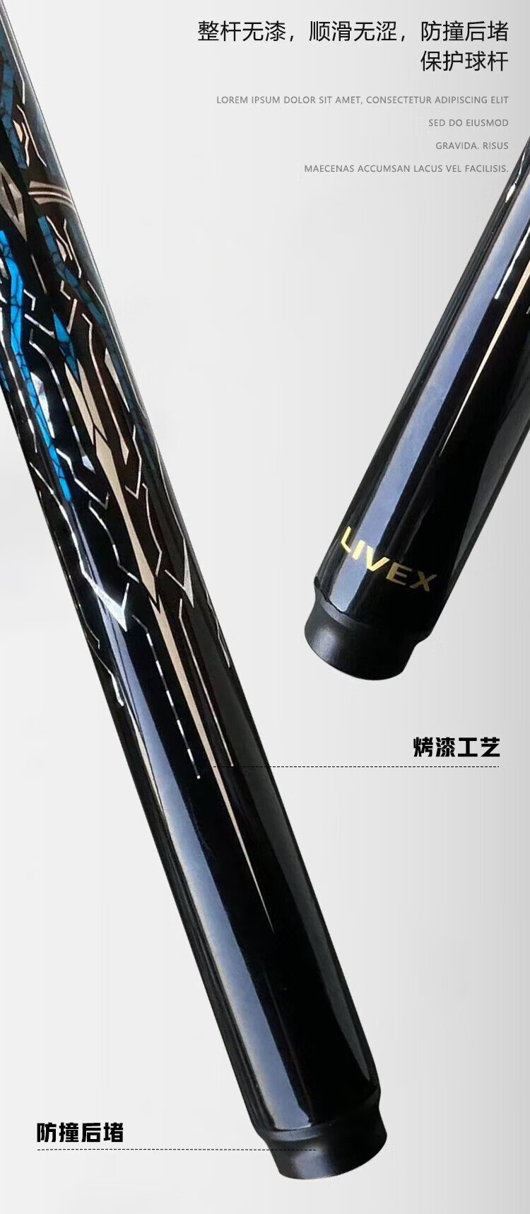 LIVEX carbon fiber small head Chinese style black 8 black technology carbon 1/2 billiard cue split billiard cue with pole box TS02