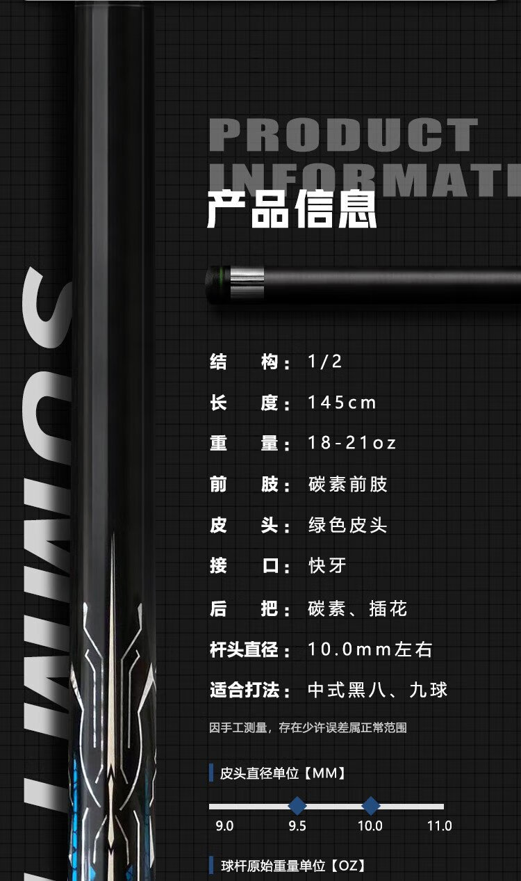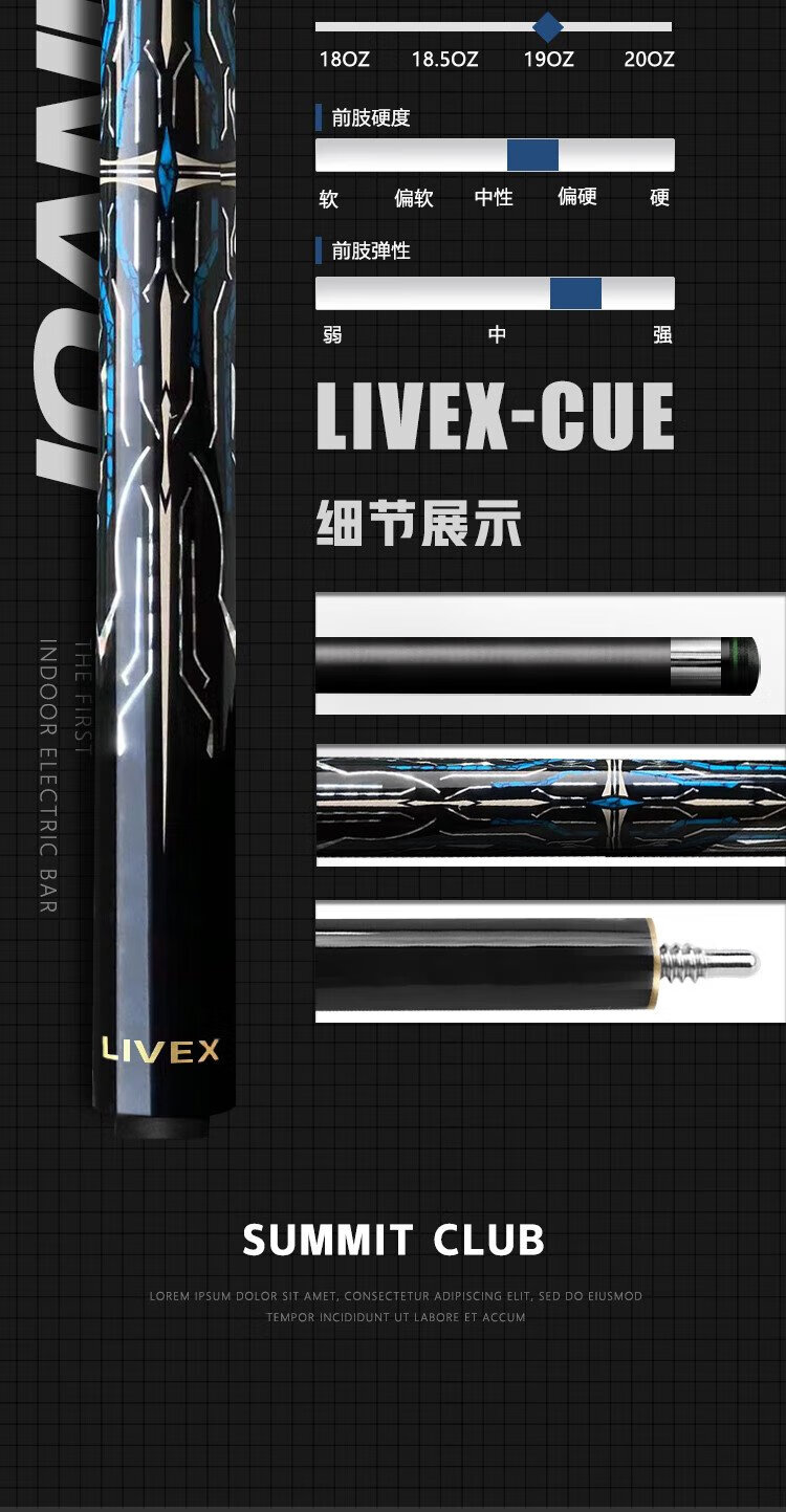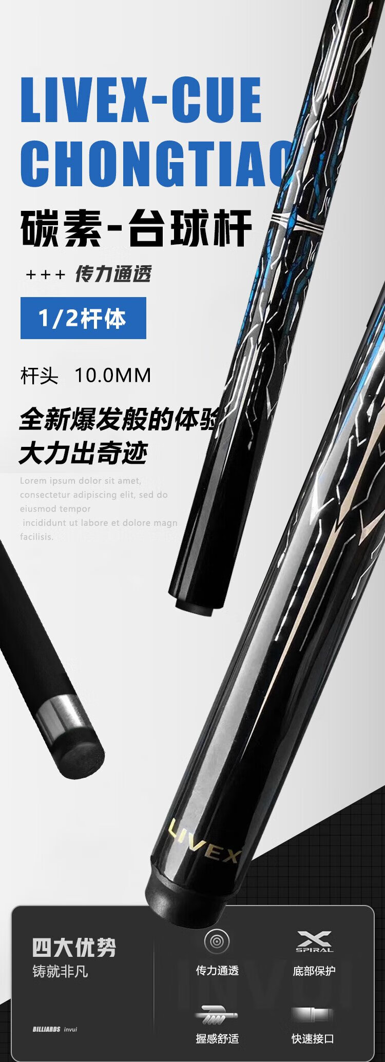 LIVEX carbon fiber small head Chinese style black 8 black technology carbon 1/2 billiard cue split billiard cue with pole box TS02