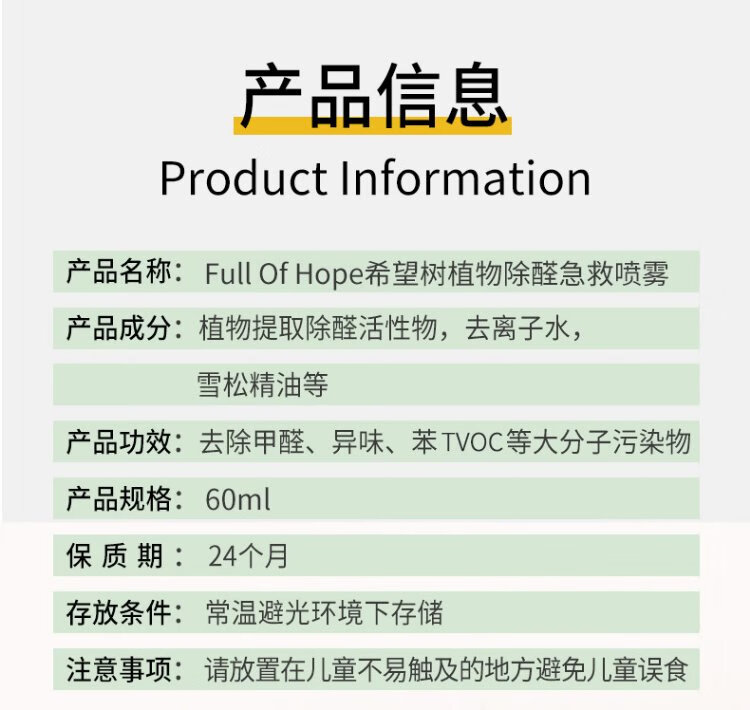 Hope Tree Formaldehyde Removal Spray 60ml Newly Upgraded FOH Powerful New House Household Formaldehyde Remover