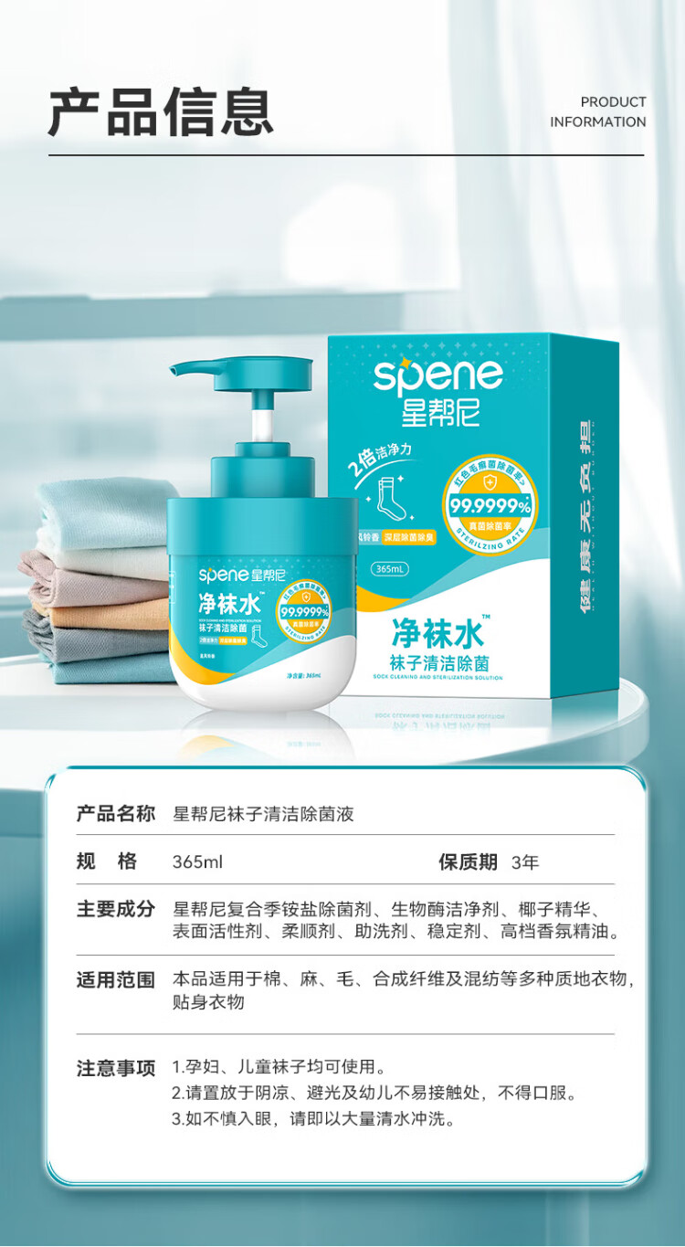 Xingbangni special cleaning liquid for washing socks, deodorizing, antibacterial, washing and fungicidal artifact, underwear, sterilizing agent, laundry disinfectant
