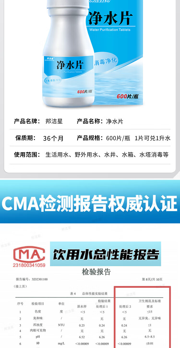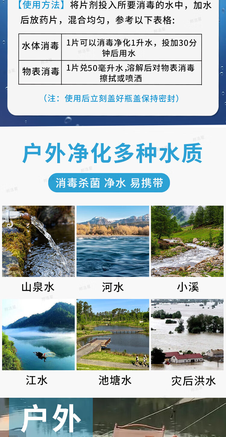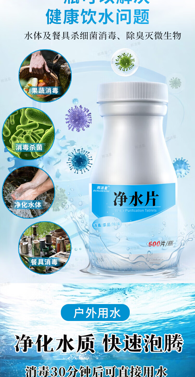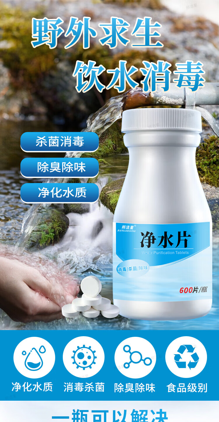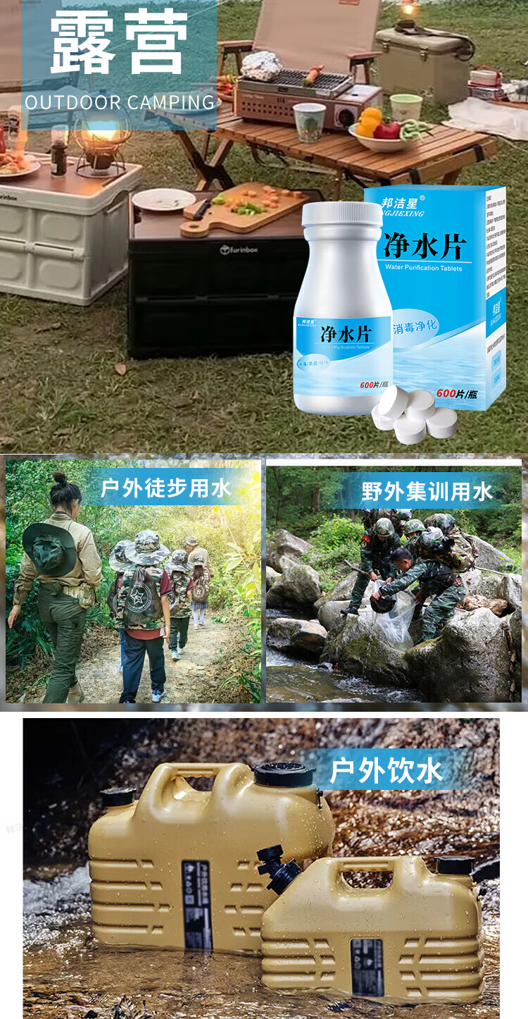 Bangjiexing Outdoor Water Purification Tablets Emergency Outdoor Adventure Survival Travel Essential Camping Drinking Water Purification Tablets 600 Tablets