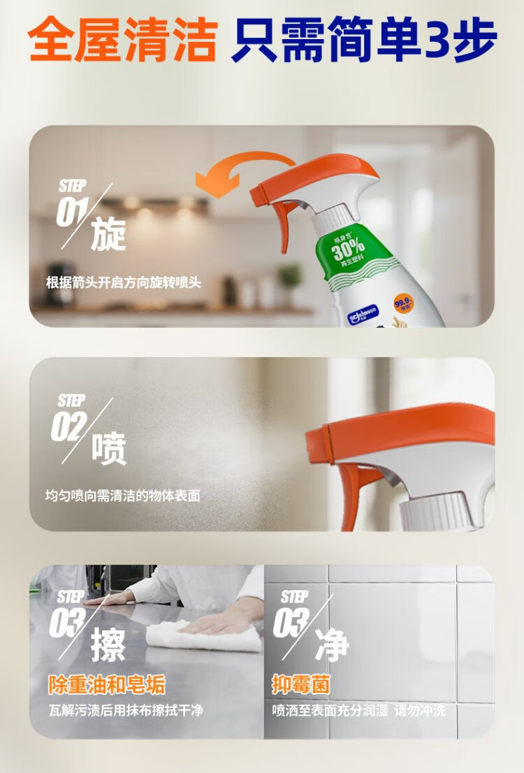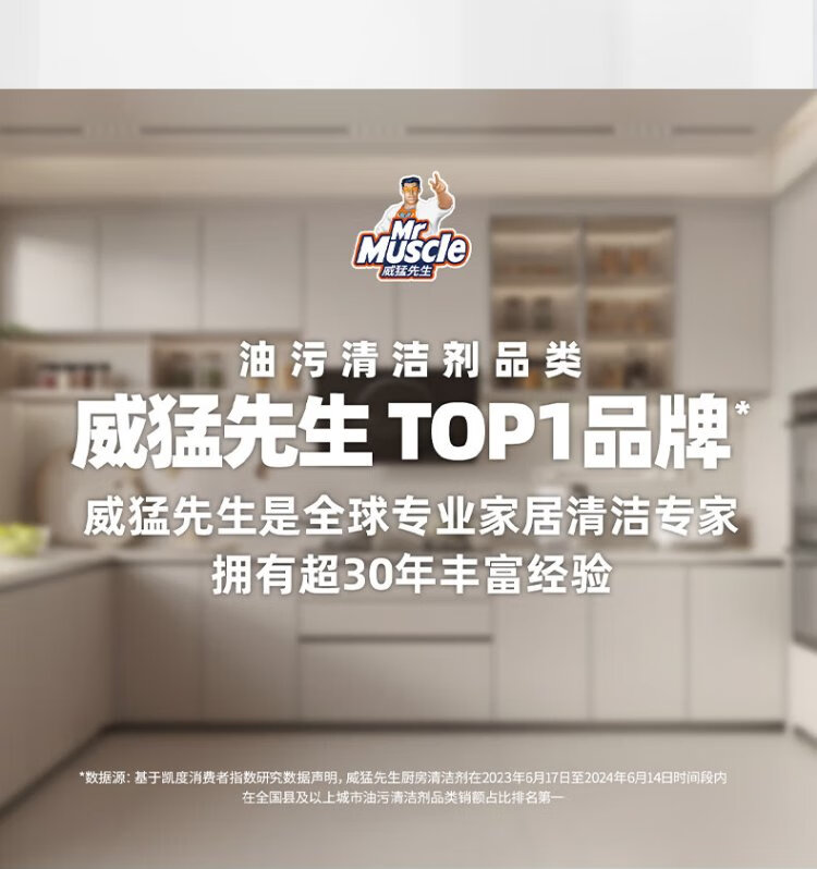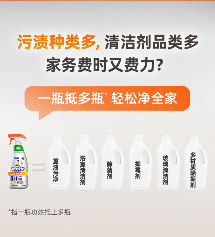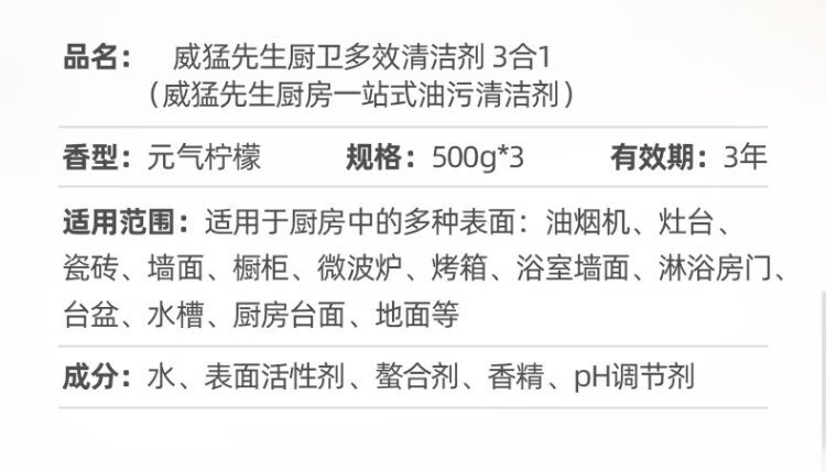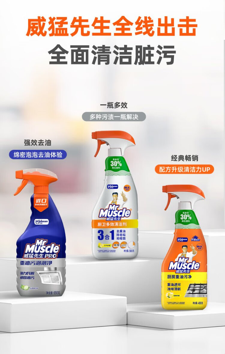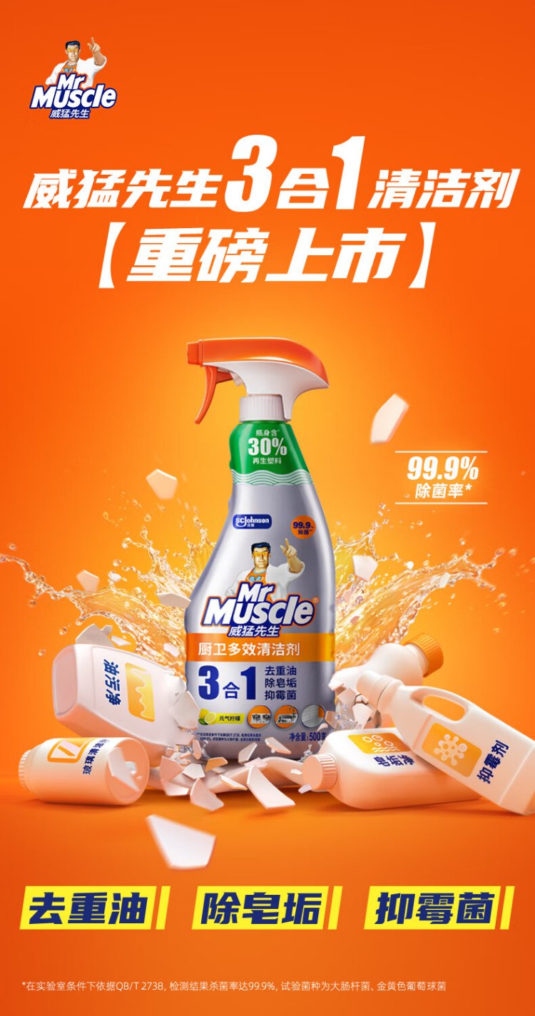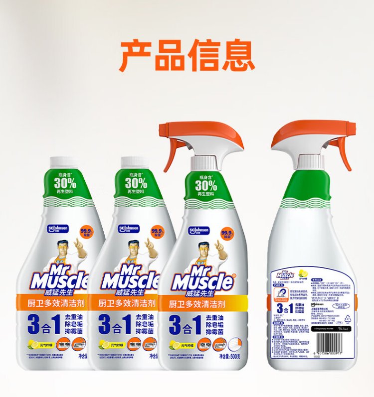 Mr Muscle Kitchen and Bathroom Three-in-one Oil, Stain, Mold, Soap Scum Removal Multifunctional Cleaner 500g*3 Bottles Yuanqi Lemon