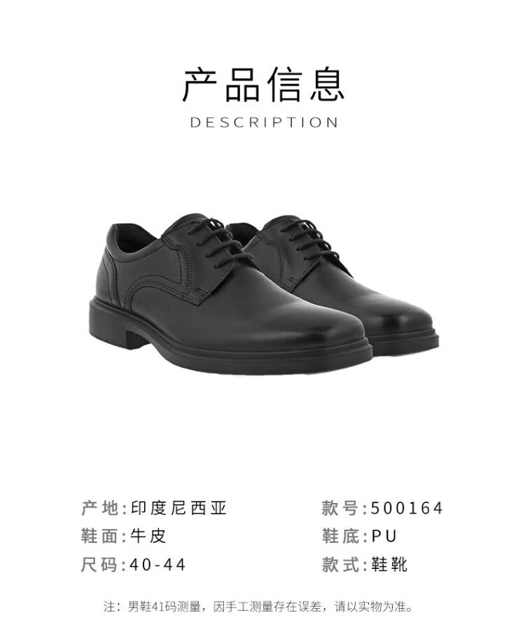 ECCO business casual shoes for men 500164 01001 black 42 gift for boyfriend