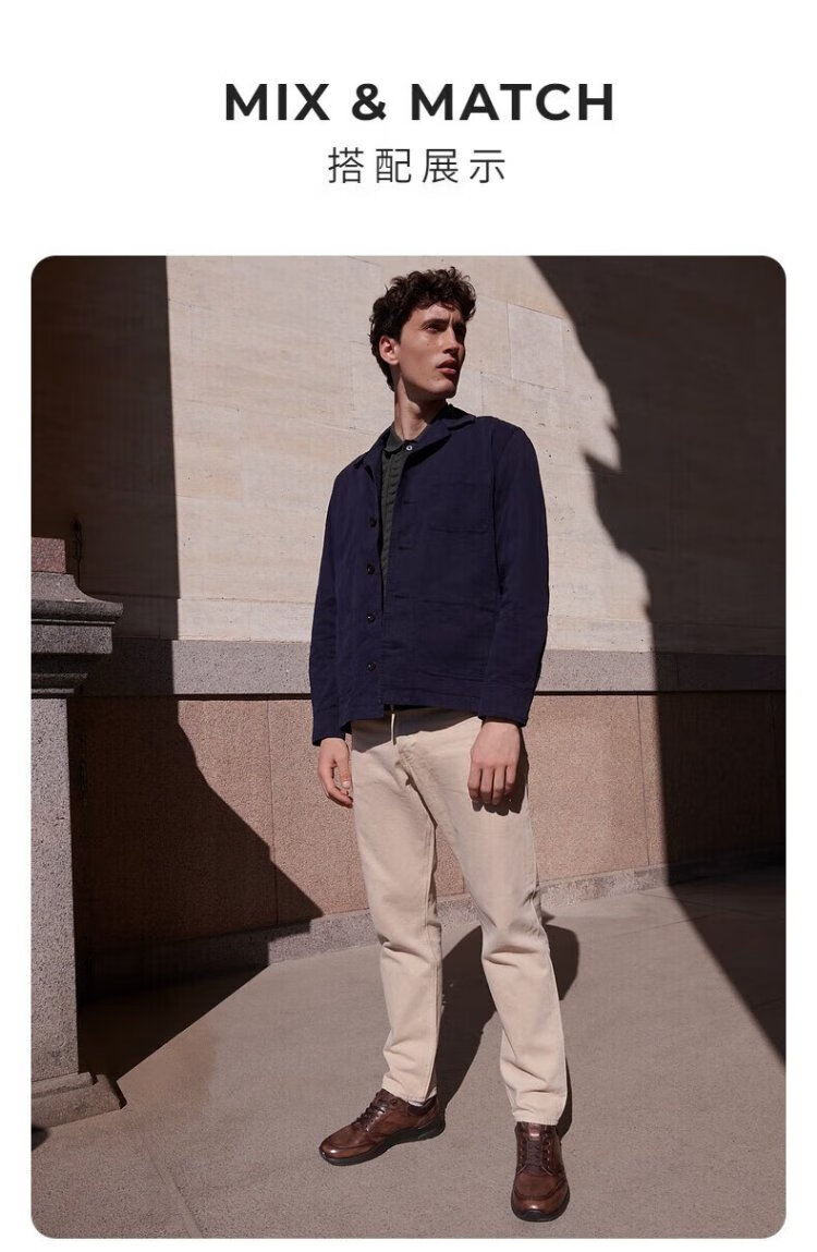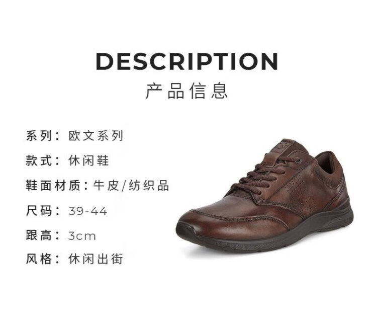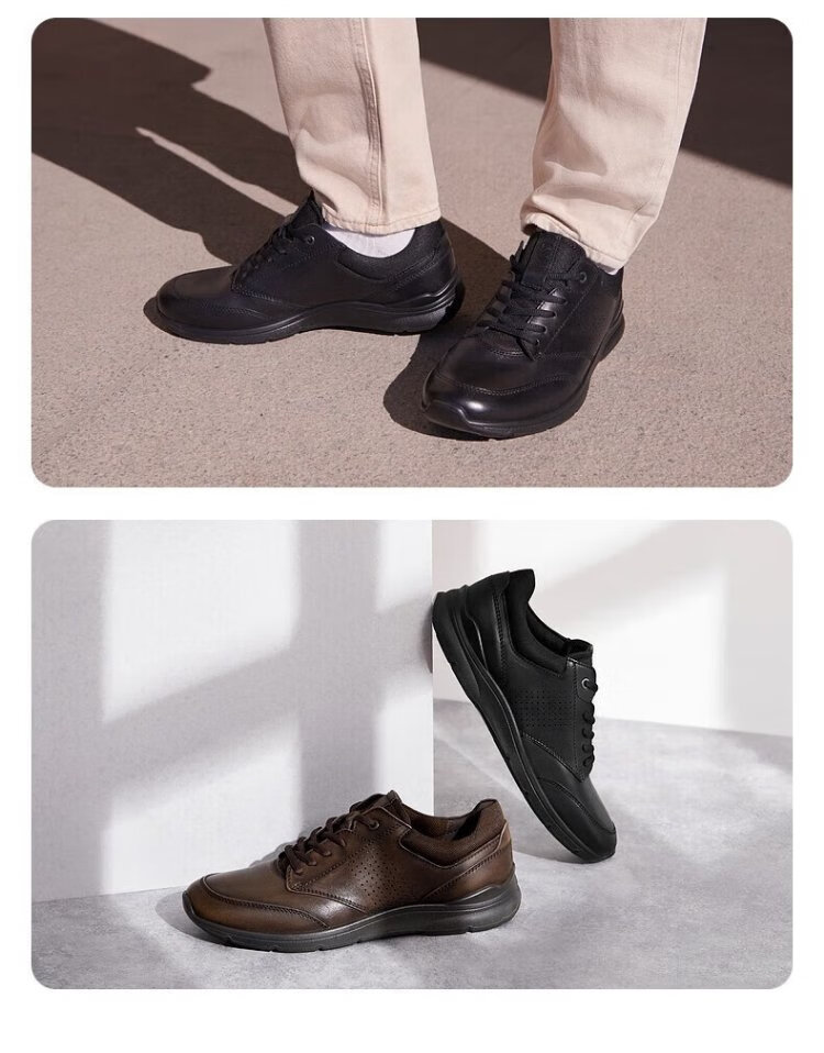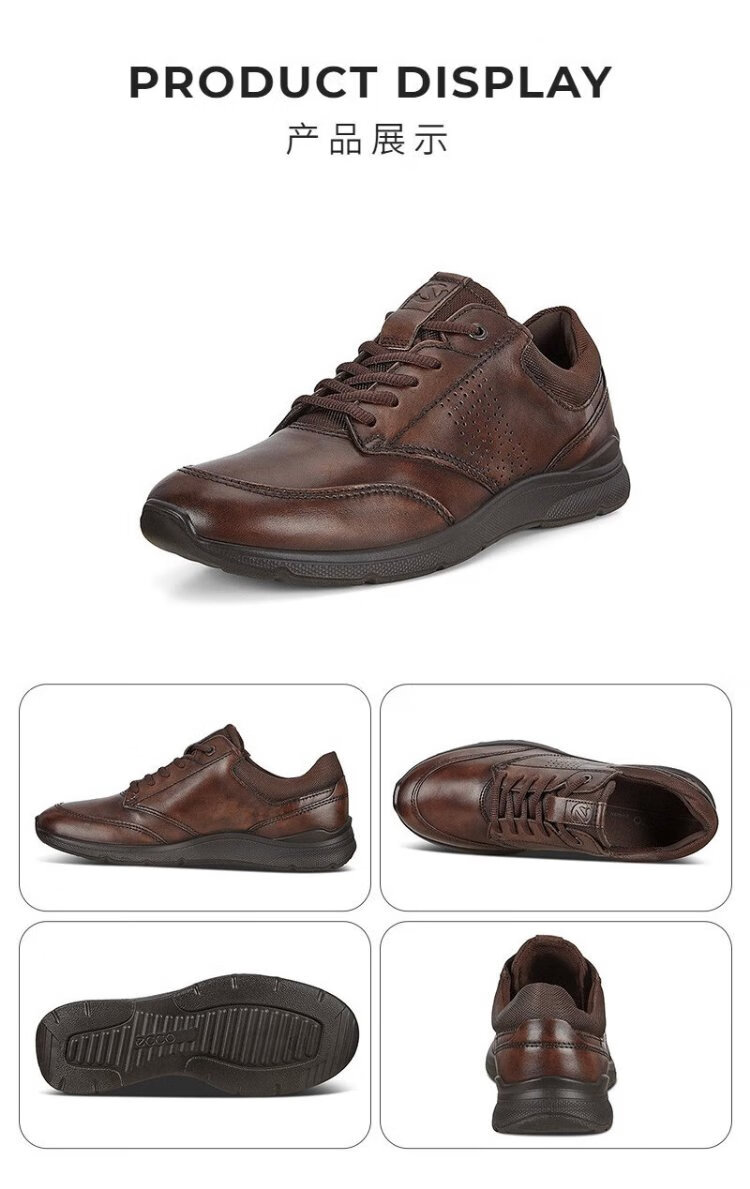 ECCO casual leather shoes for men, lightweight cowhide sneakers, walking shoes, comfortable and breathable, Owen series, brown 44