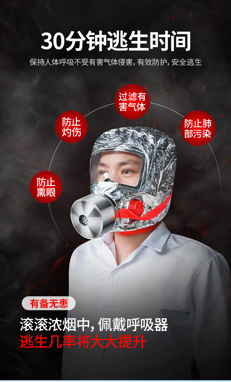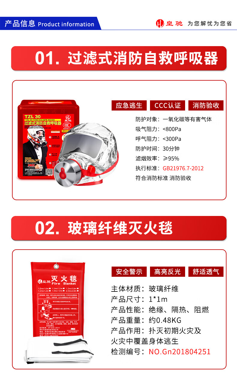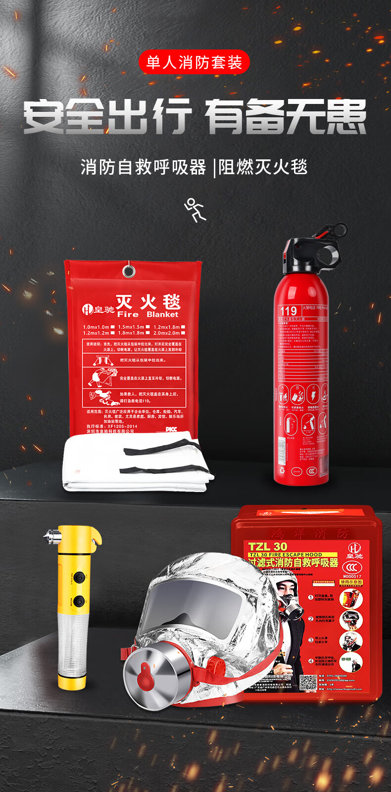 Huangchi fire emergency kit gas mask water-based fire extinguisher fire blanket fire escape fire safety 4-piece set