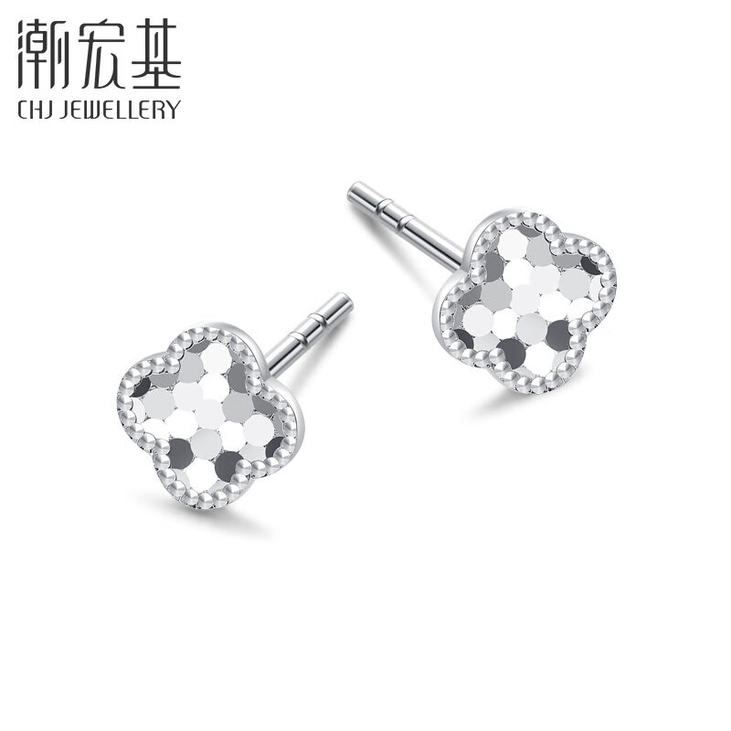 Trendy Acer Platinum Four-leaf Clover PT950 platinum earrings as a birthday gift for girlfriend. Priced. One pair is about 1.05g.