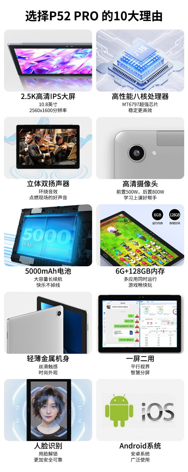 Acer tablet pad 10.8-inch 2.5k eye-protecting high-definition large screen 8-core business office audio-visual entertainment online class learning tablet 6G+128G WIFI silver PAWBO