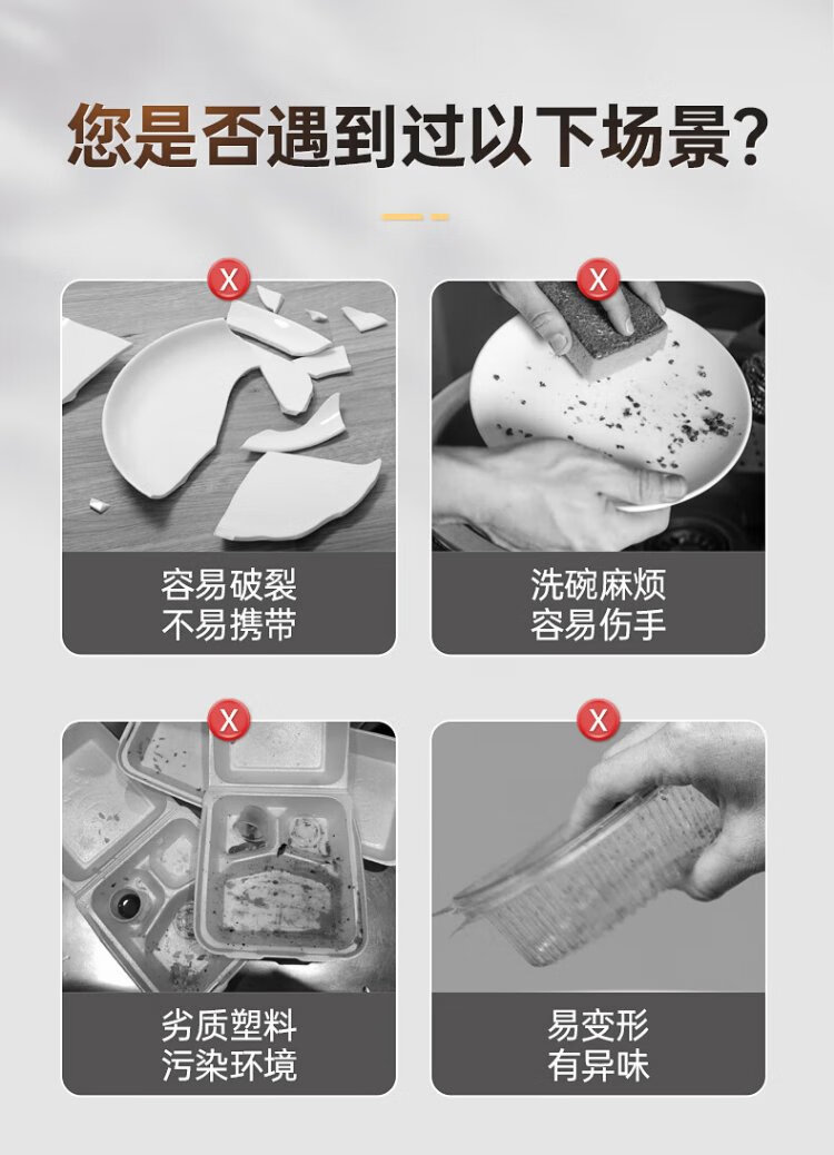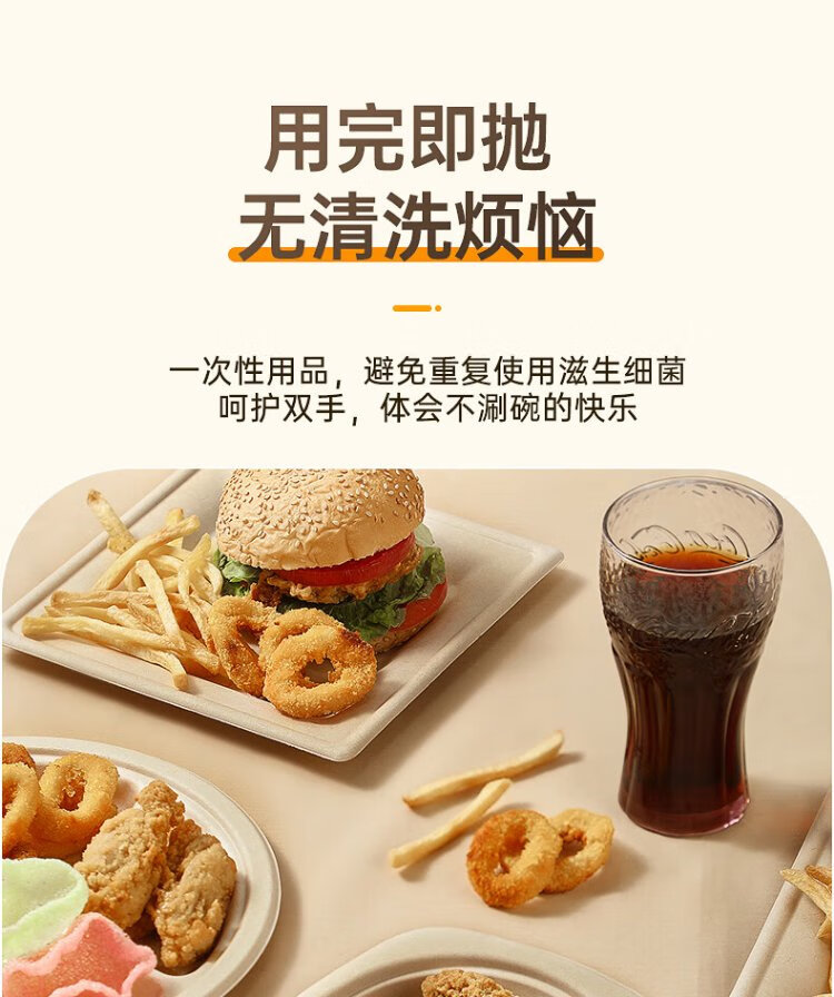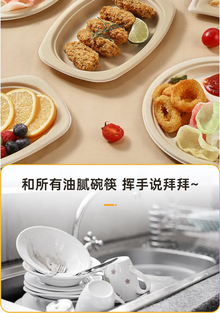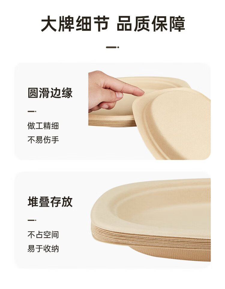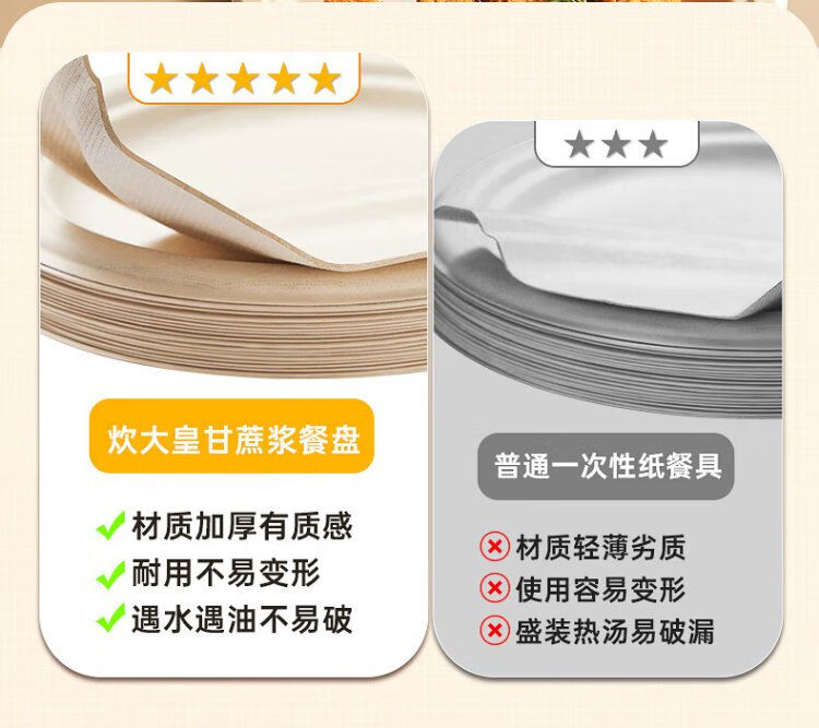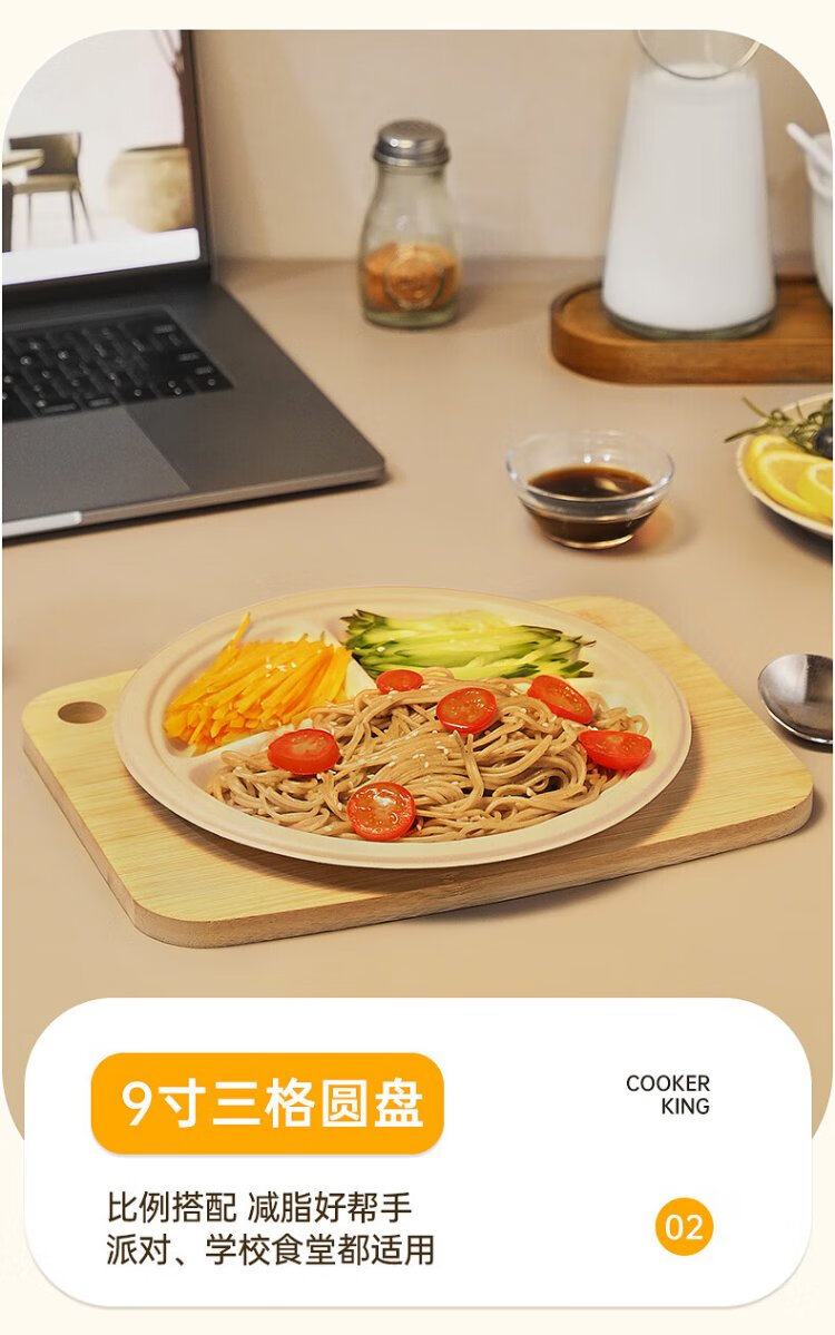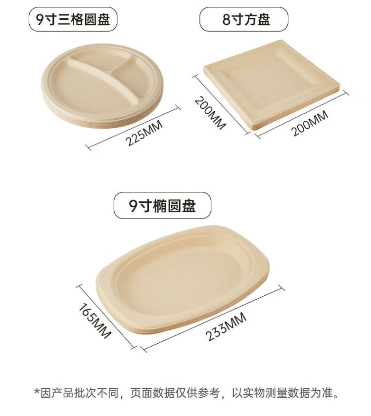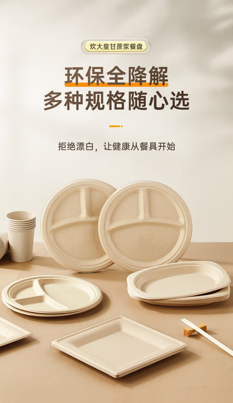 Cui Dahuang sugarcane pulp paper plate disposable tableware waterproof and oil-proof thickened natural color degradable disc three grids 9 inches 20 pieces