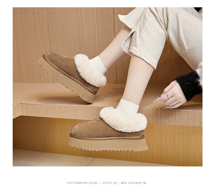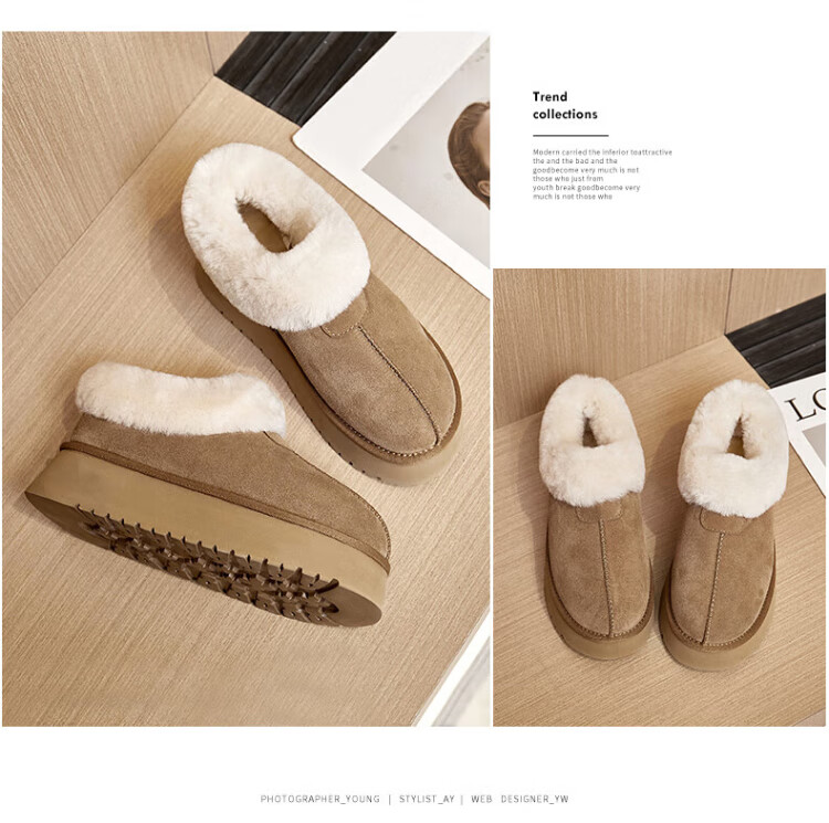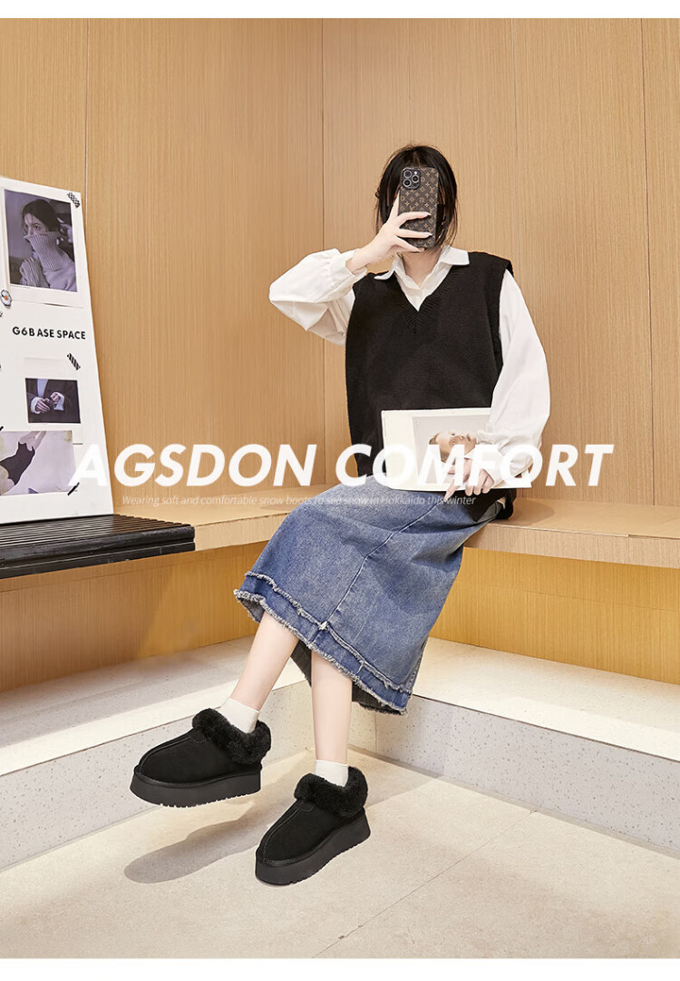 Agsdon snow boots for women winter thickened velvet low-top cotton shoes women's warm one-leg cotton boots 934156 Maroon 37
