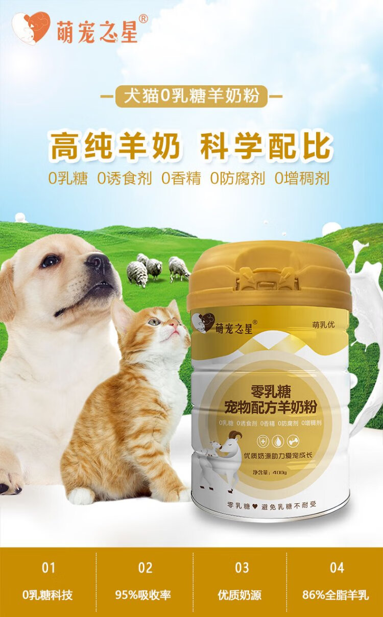 Cute Pet Star Zero Lactose Goat Milk Powder Cats and Goat Milk Powder 400g/can Dog Goat Milk Powder 0 Lactose Dog and Cat Full Stage Goat Milk Powder