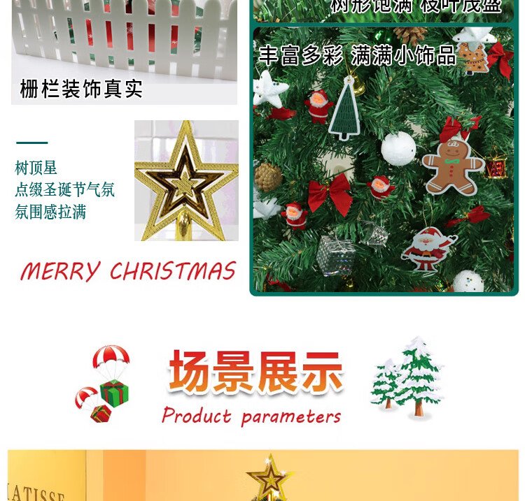Abaoli Christmas tree home package encrypted diy luminous large ornaments shopping mall store ins Christmas decoration 150cm