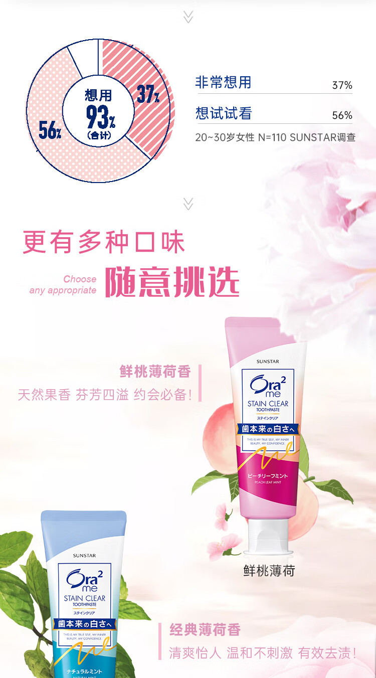 Haole Teeth (Ora2) fruity whitening toothpaste 4 pieces whiten teeth, relieve oral stains, fresh breath, contain fluoride to remove yellowing