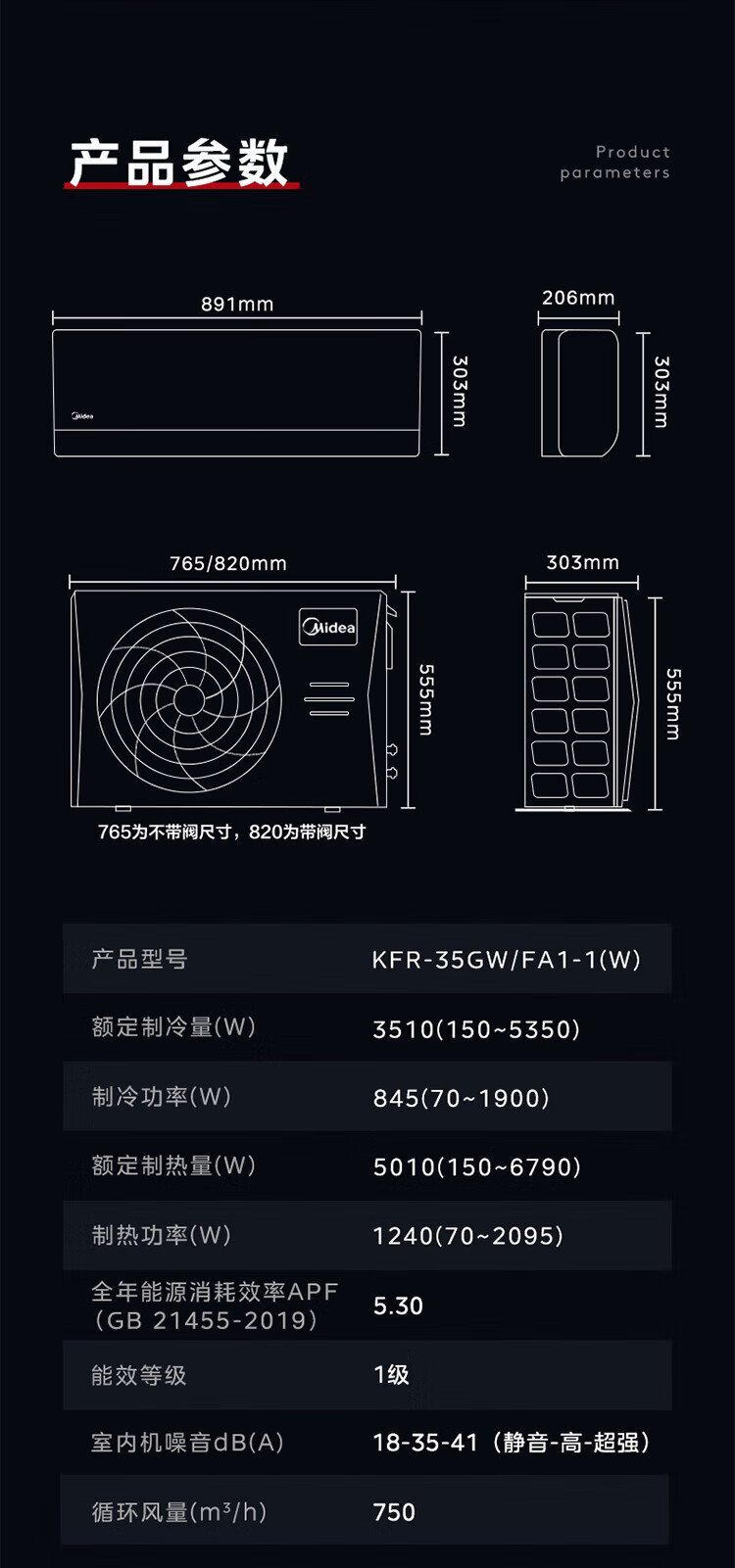 Midea 1,5 HP On-Hook Star Rui neues Maß an Energieeffizienz, angenehmes Windgefühl Star Speed Heiz- und Kühl-Wandklimagerät KFR-35GW/FA1-1(W)