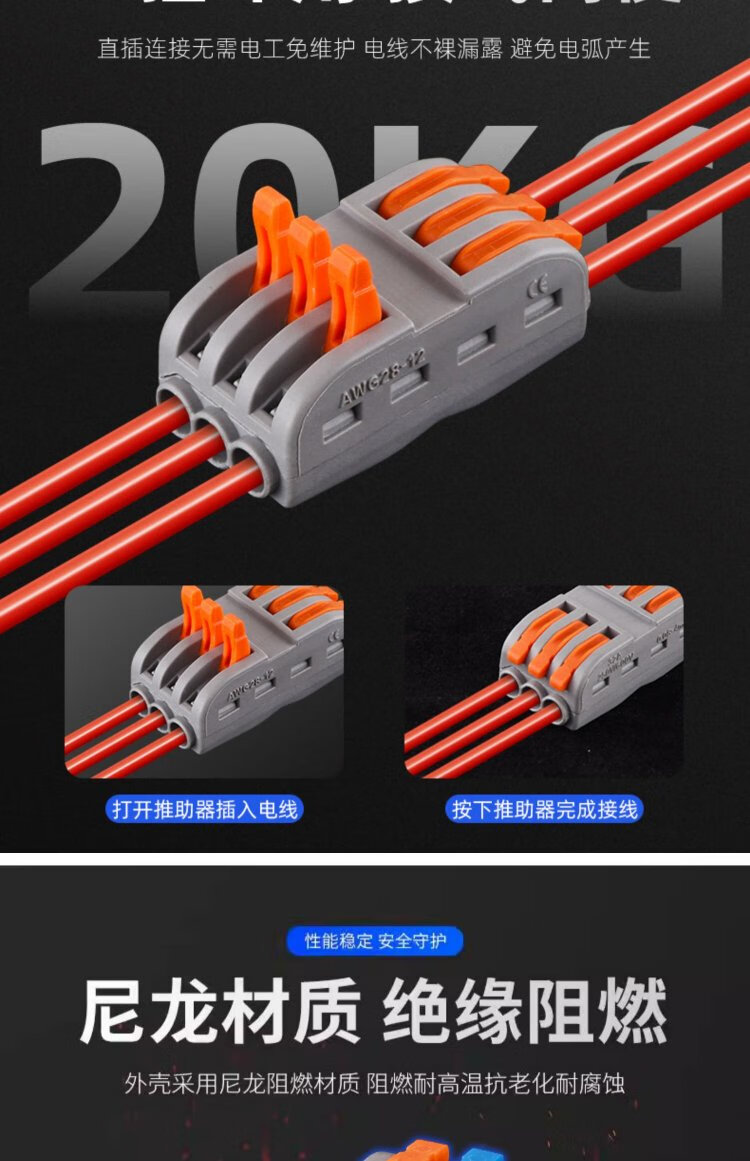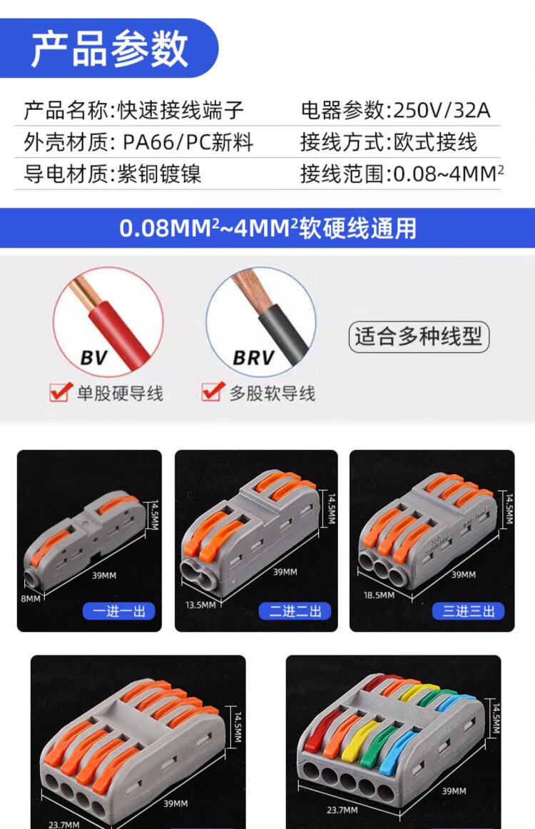 Andatong quick terminal block push-type wiring connection artifact wire head clip branch connector two in two out 10 pieces