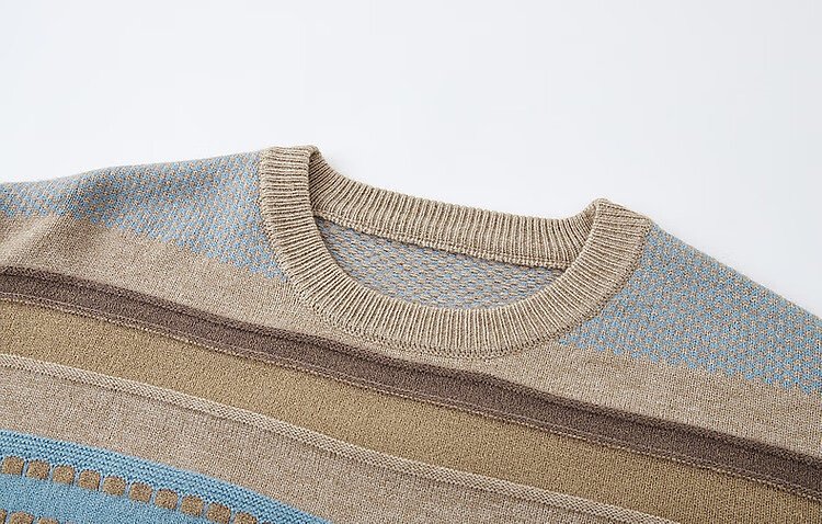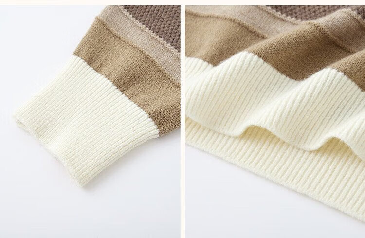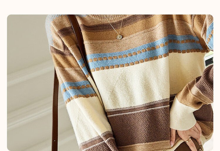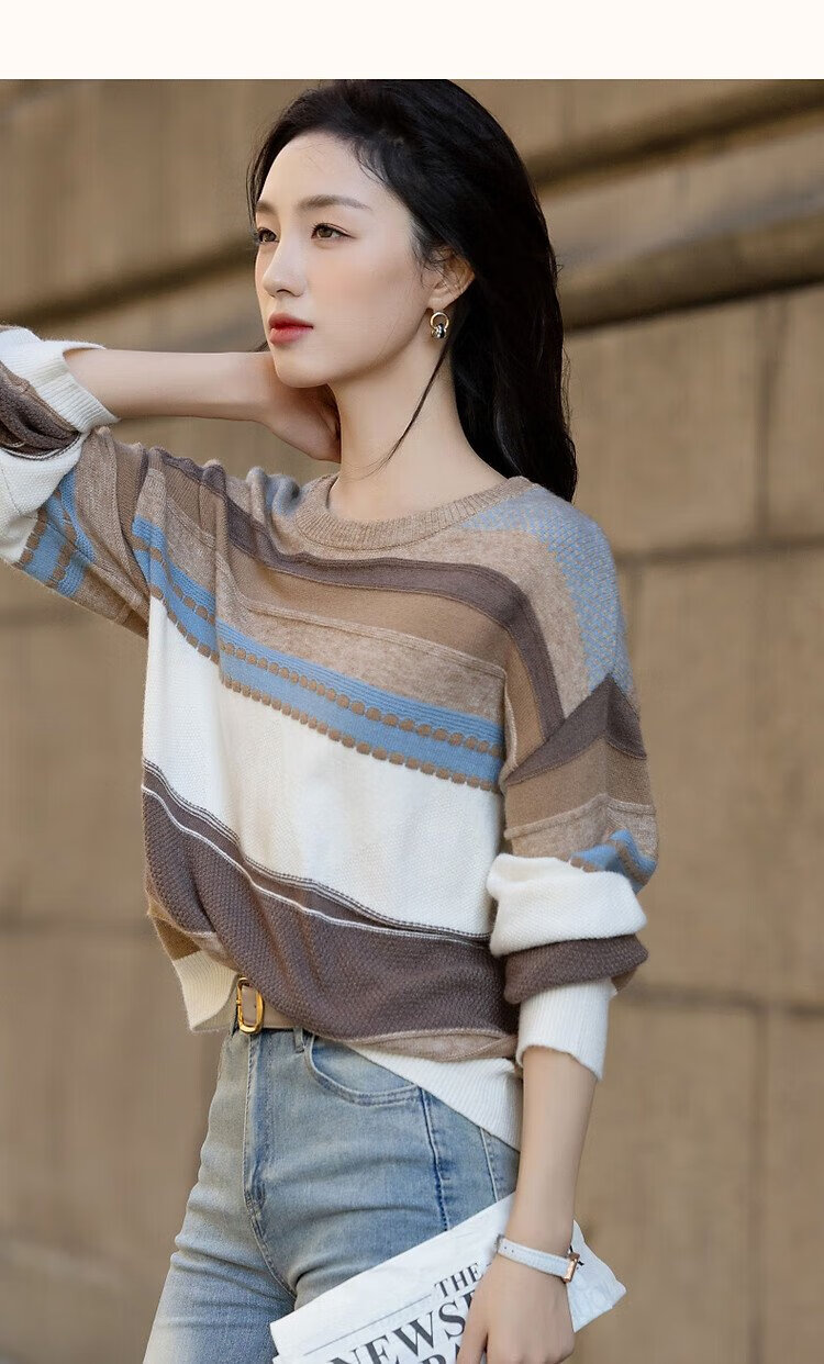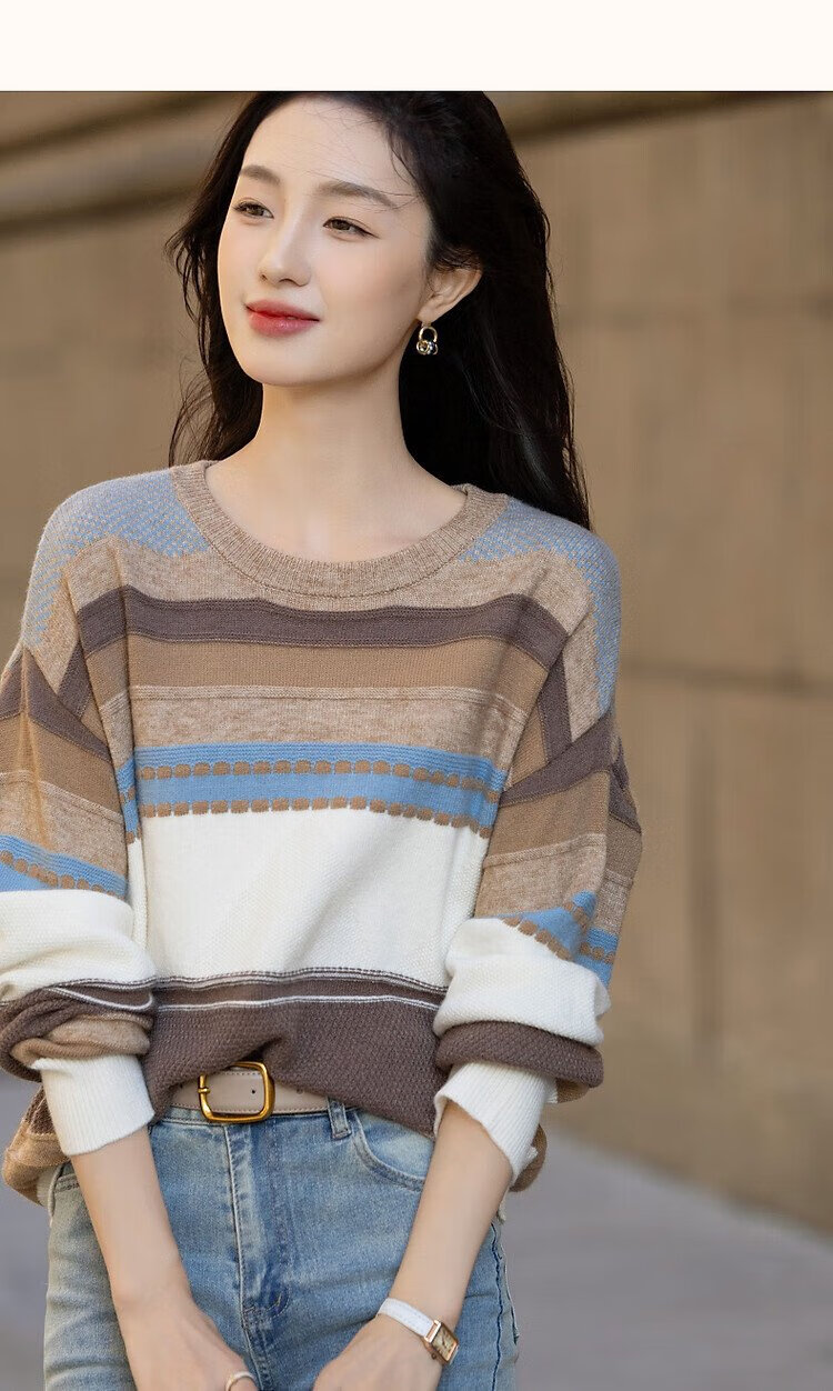 Demana Light Mature Commuting 2025 Winter Round Neck Velvet Yarn Striped Contrast Color Sweater Long Sleeve Knitted Sweater Women's Top