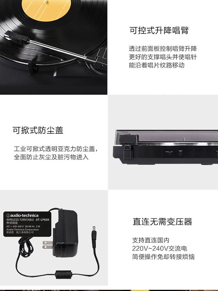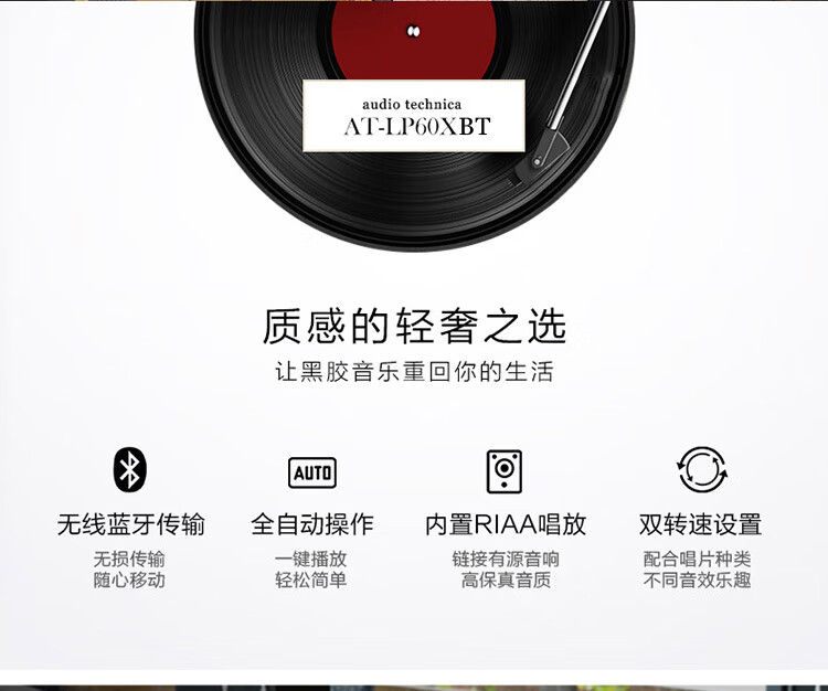 Audio-technica AT-LP60XBT GBK Bluetooth wireless turntable music record vinyl record player retro record player gramophone bright black