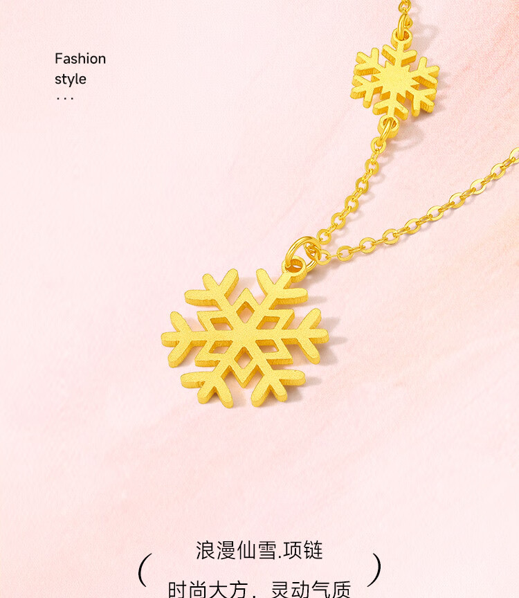 Saturday Fu 5G craft gold necklace romantic fairy snow pure gold pendant priced A0612361 about 3.88g birthday gift