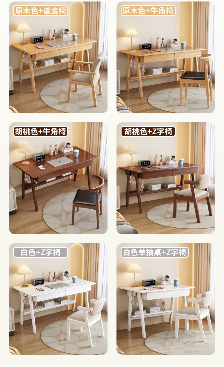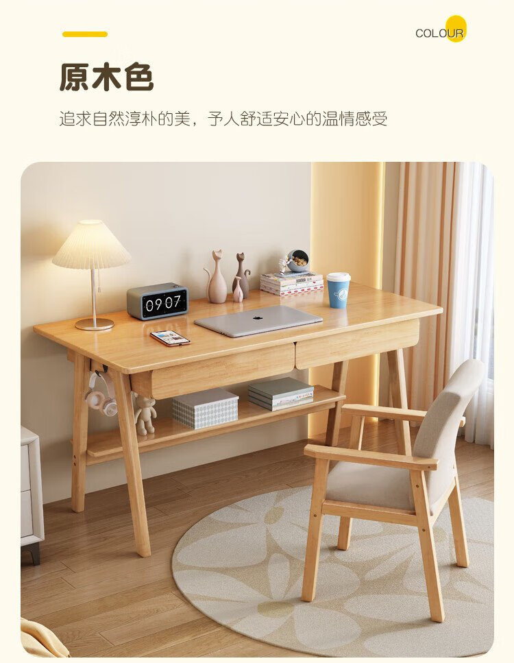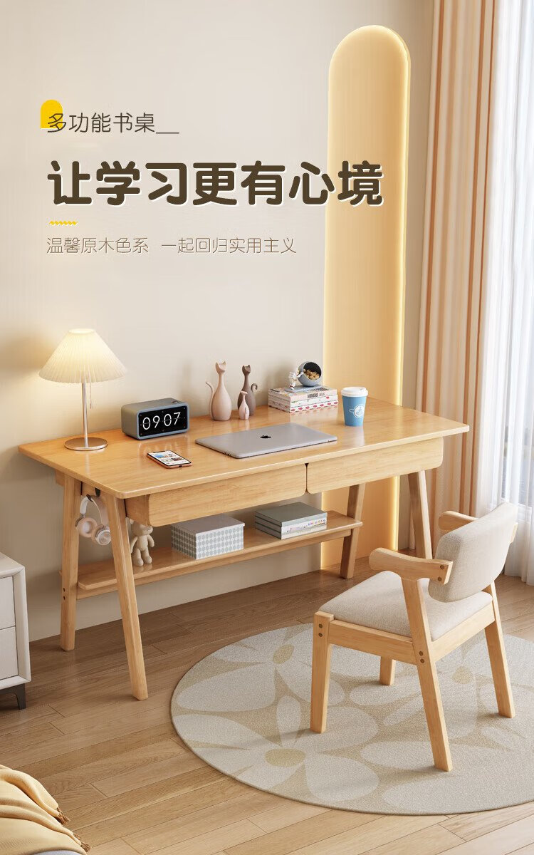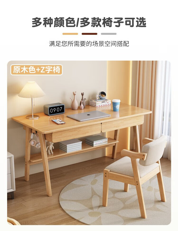 Huazhou solid wood desk simple small apartment home writing desk desktop computer table bedroom study table 1.2 meters solid wood color