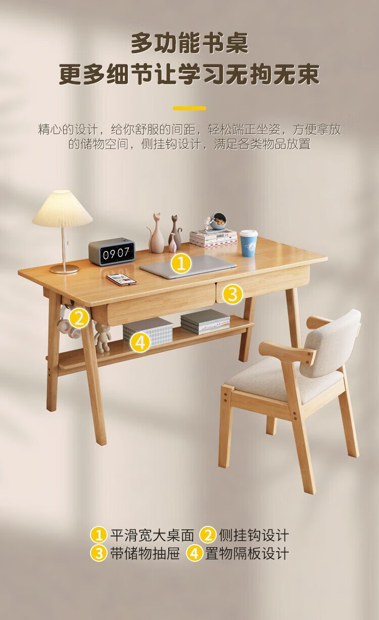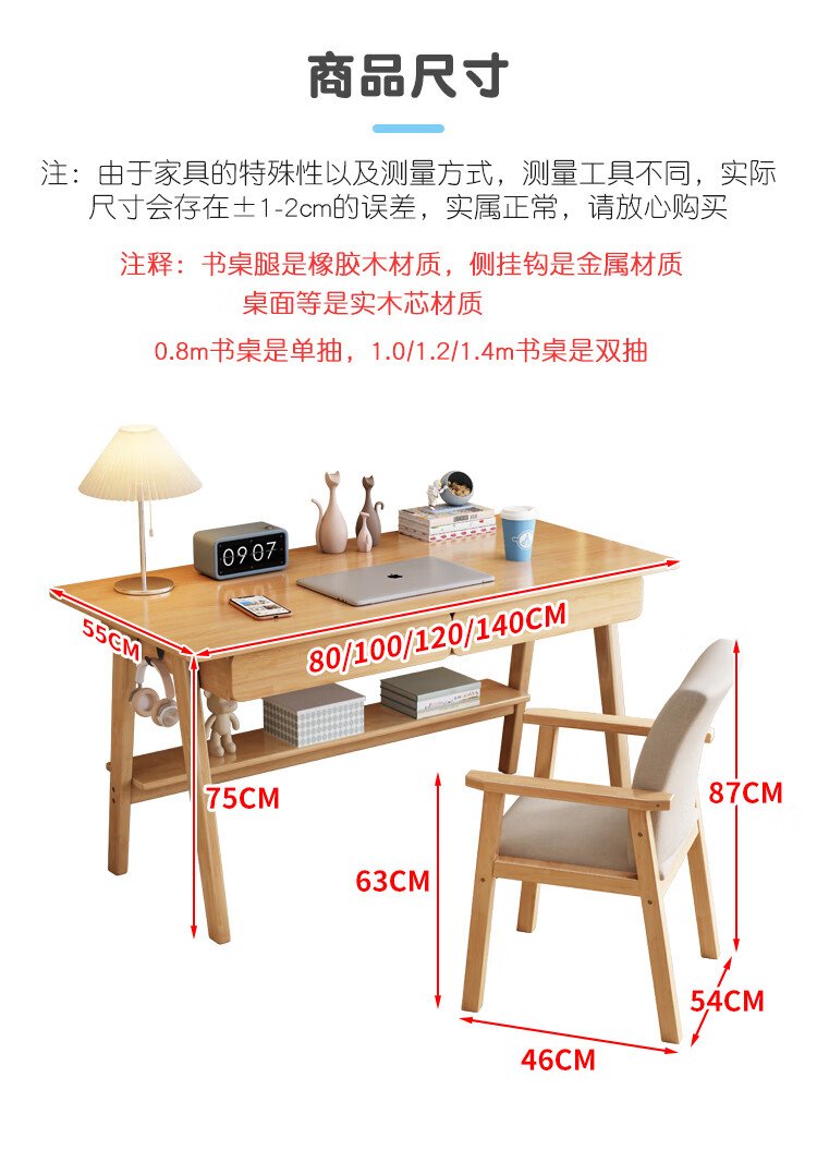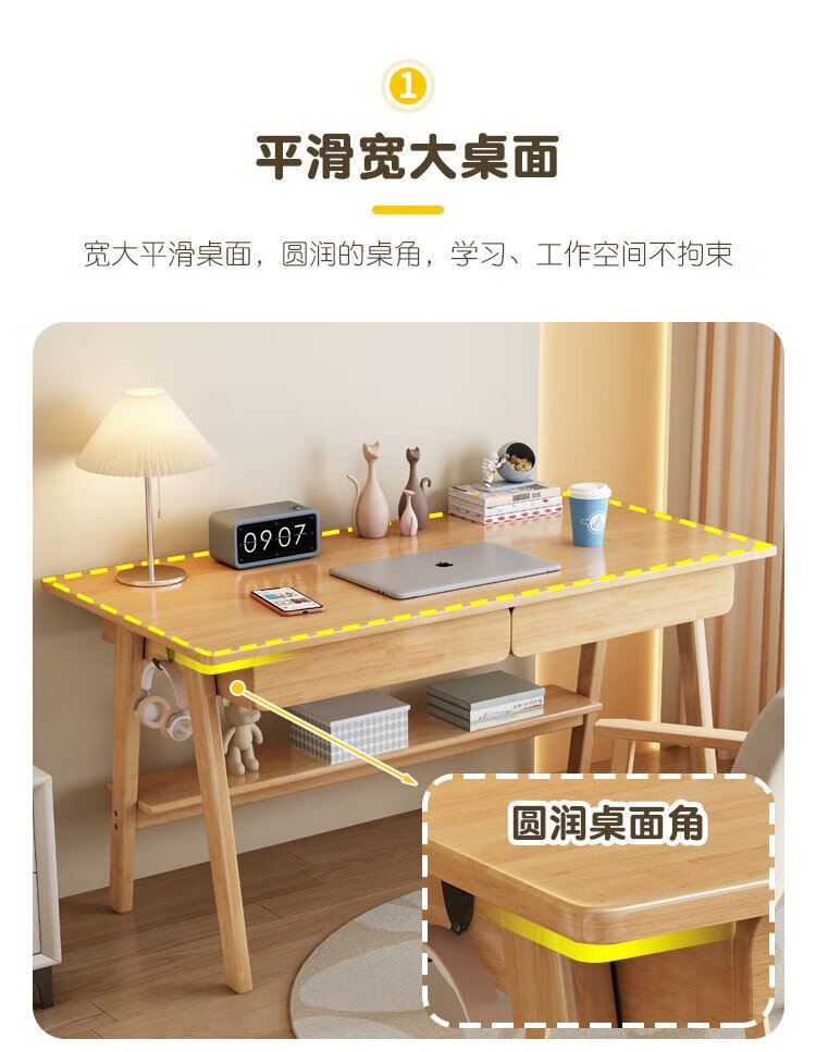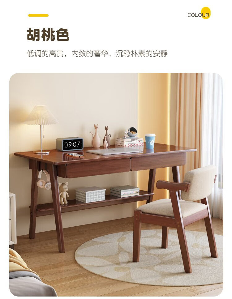 Huazhou solid wood desk simple small apartment home writing desk desktop computer table bedroom study table 1.2 meters solid wood color