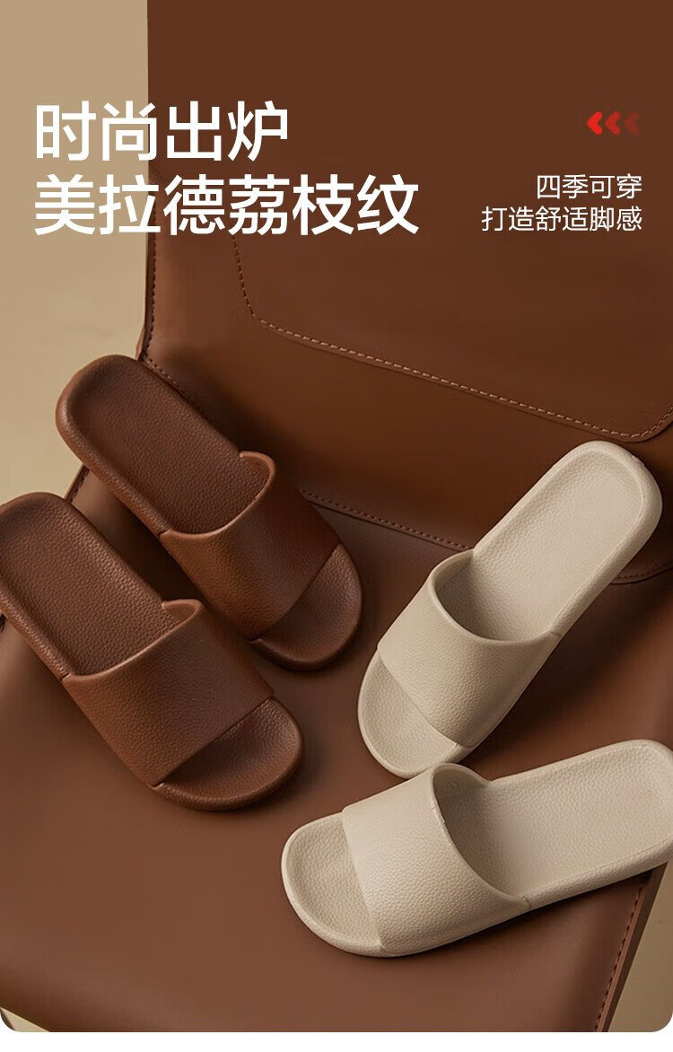 Made in Tokyo, antibacterial leather-textured slippers, EVA soft elastic home deodorant bathroom new slippers for men, taupe 42-43