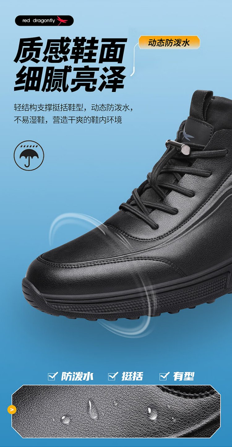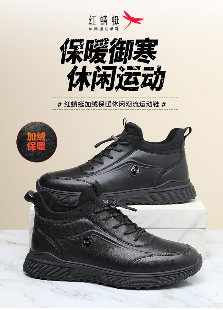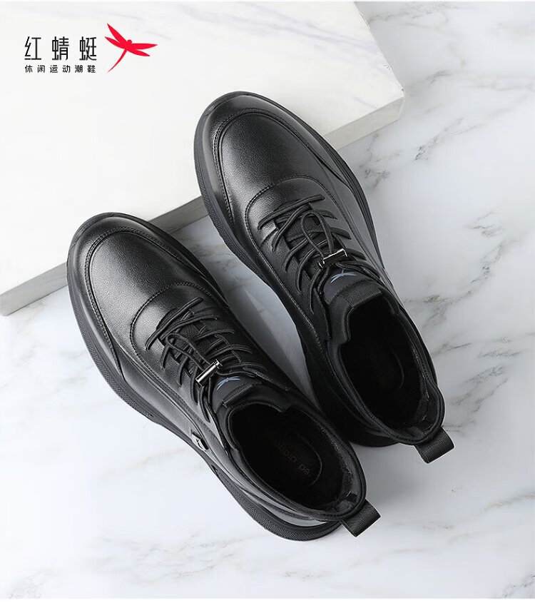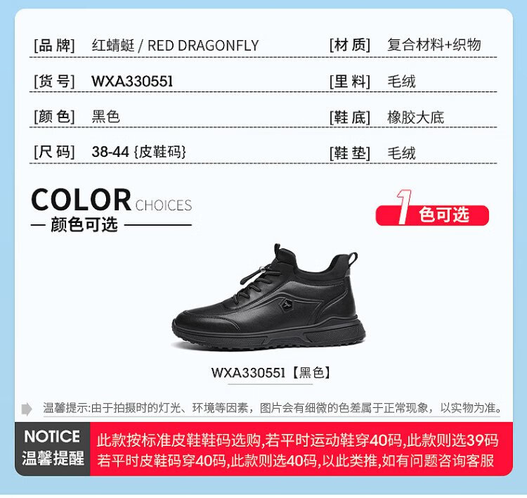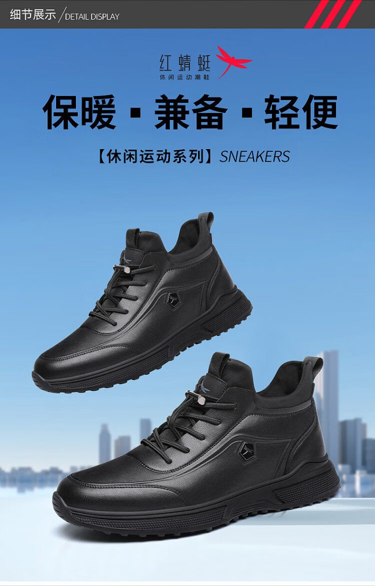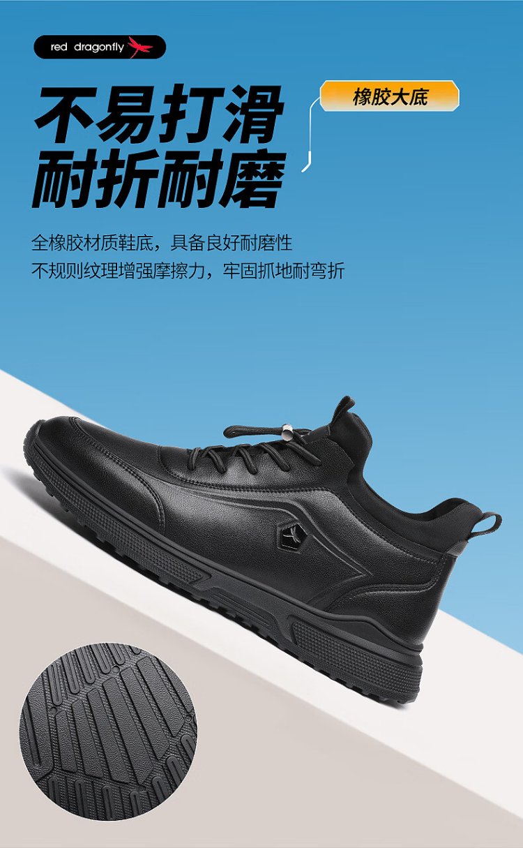 Red Dragonfly brand men's shoes, youth leather shoes, men's small black shoes, wear-resistant velvet warm business casual shoes for men WXA330551