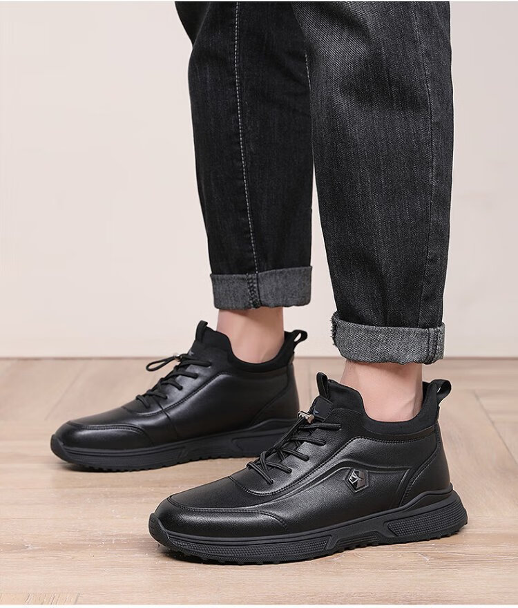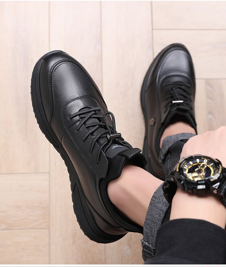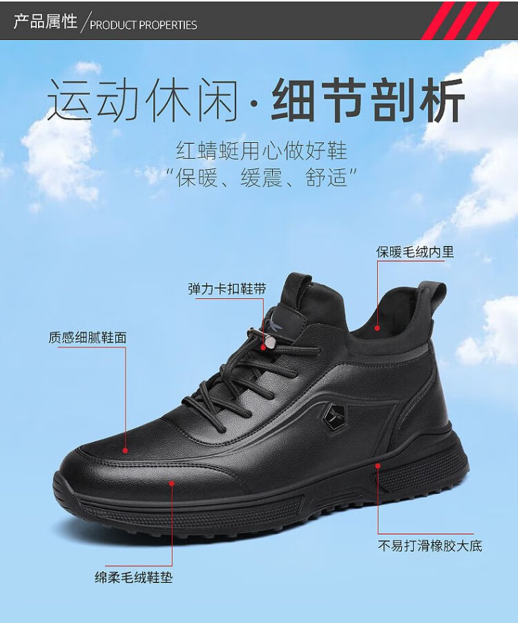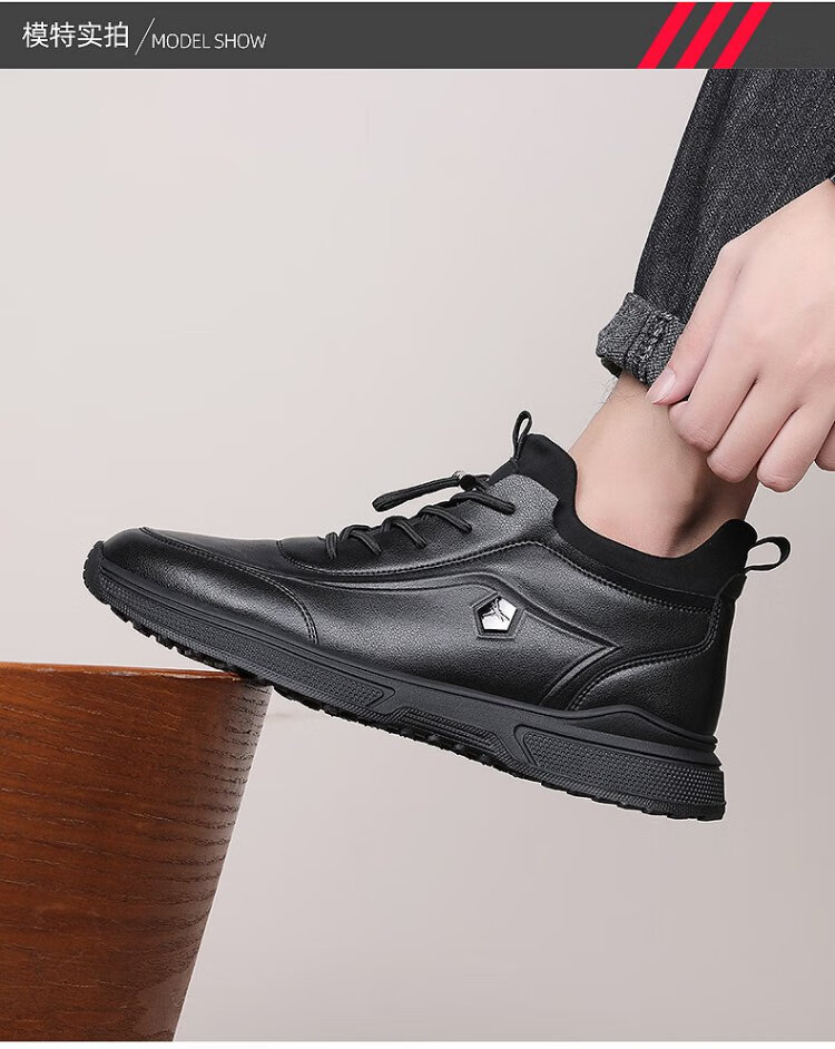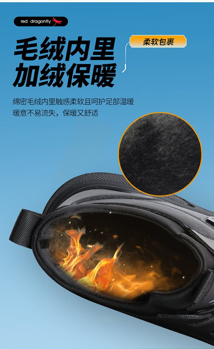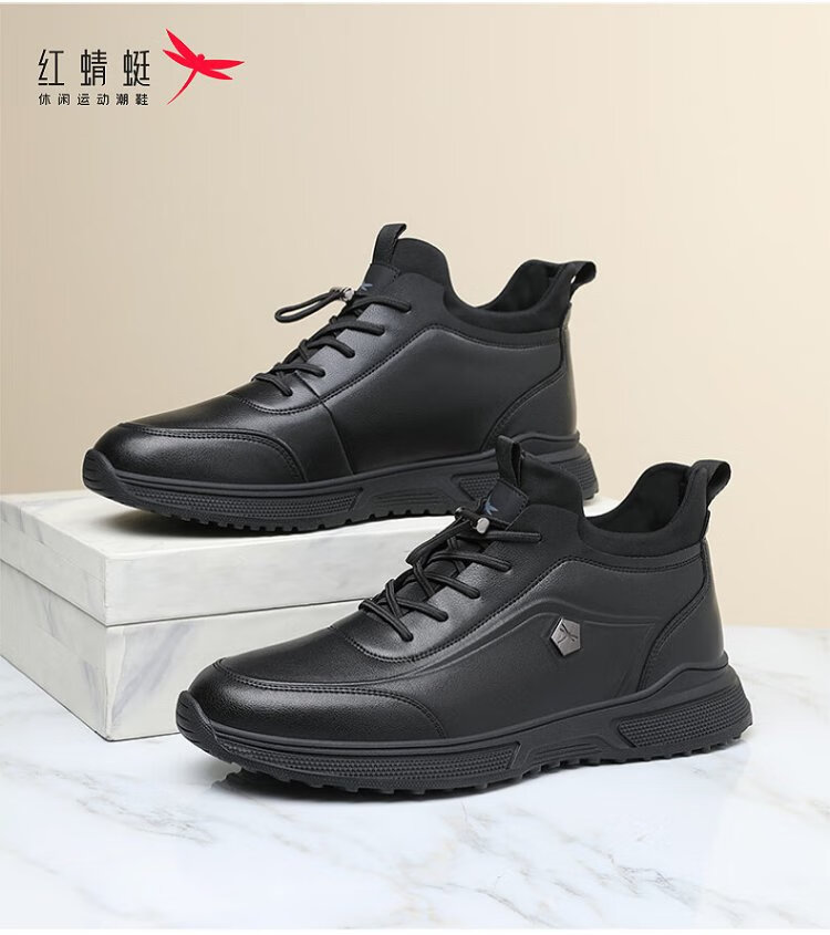 Red Dragonfly brand men's shoes, youth leather shoes, men's small black shoes, wear-resistant velvet warm business casual shoes for men WXA330551