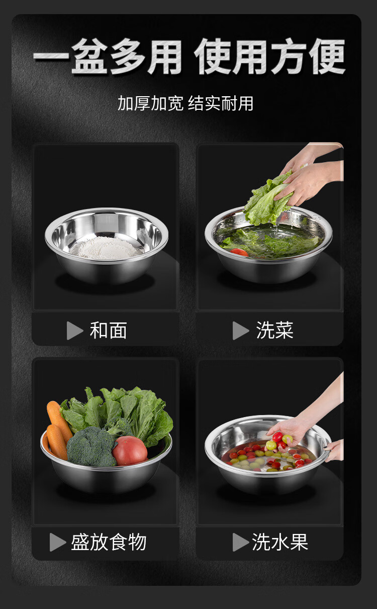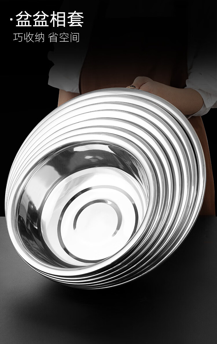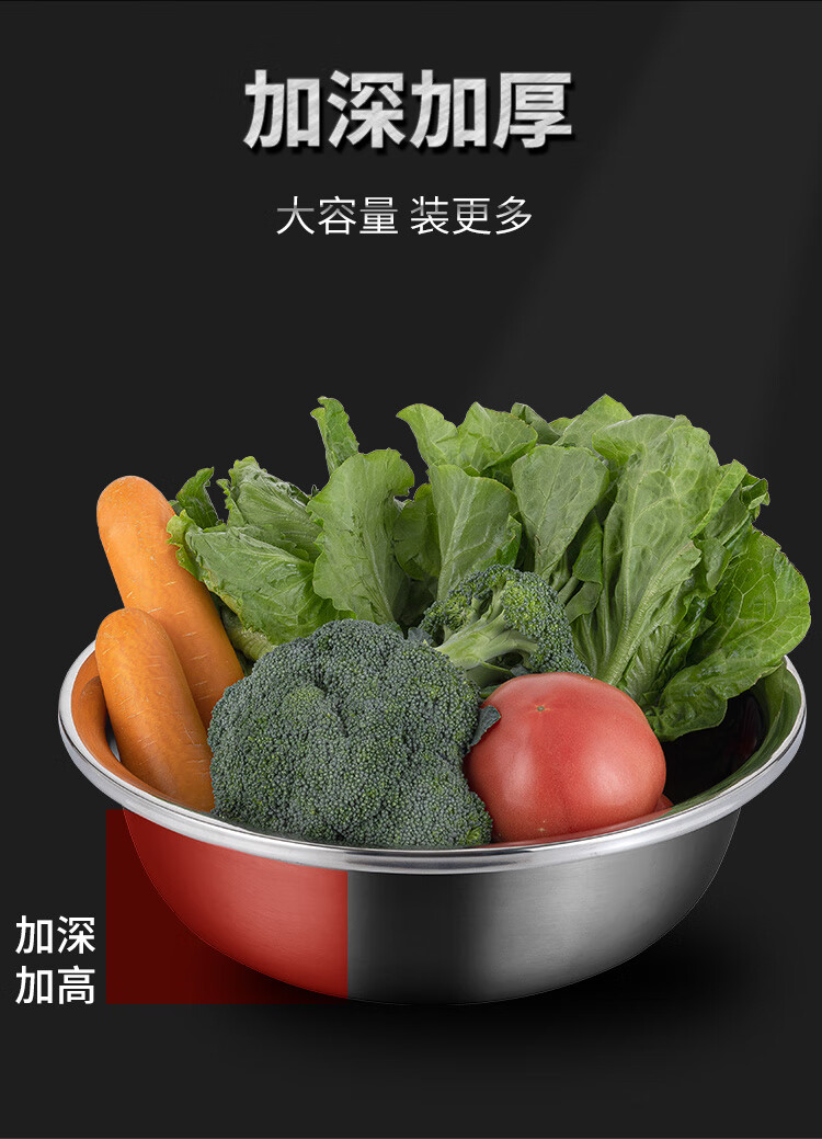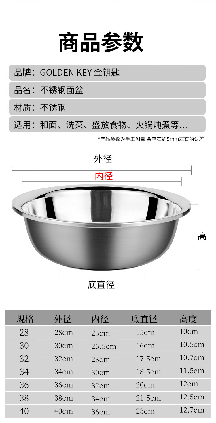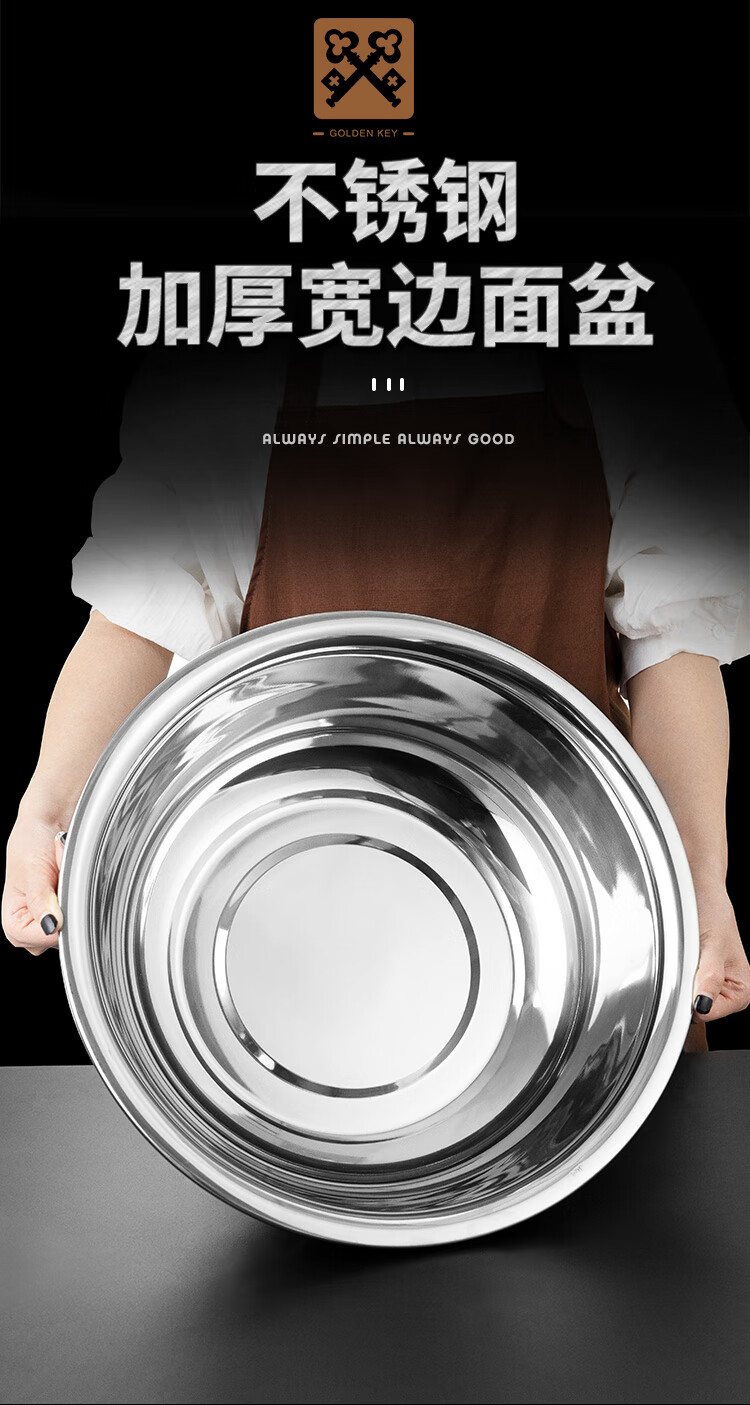 Golden Key stainless steel wide-rim basin 36cm thickened washbasin, kneading basin, multi-purpose cooking basin GK-LB360
