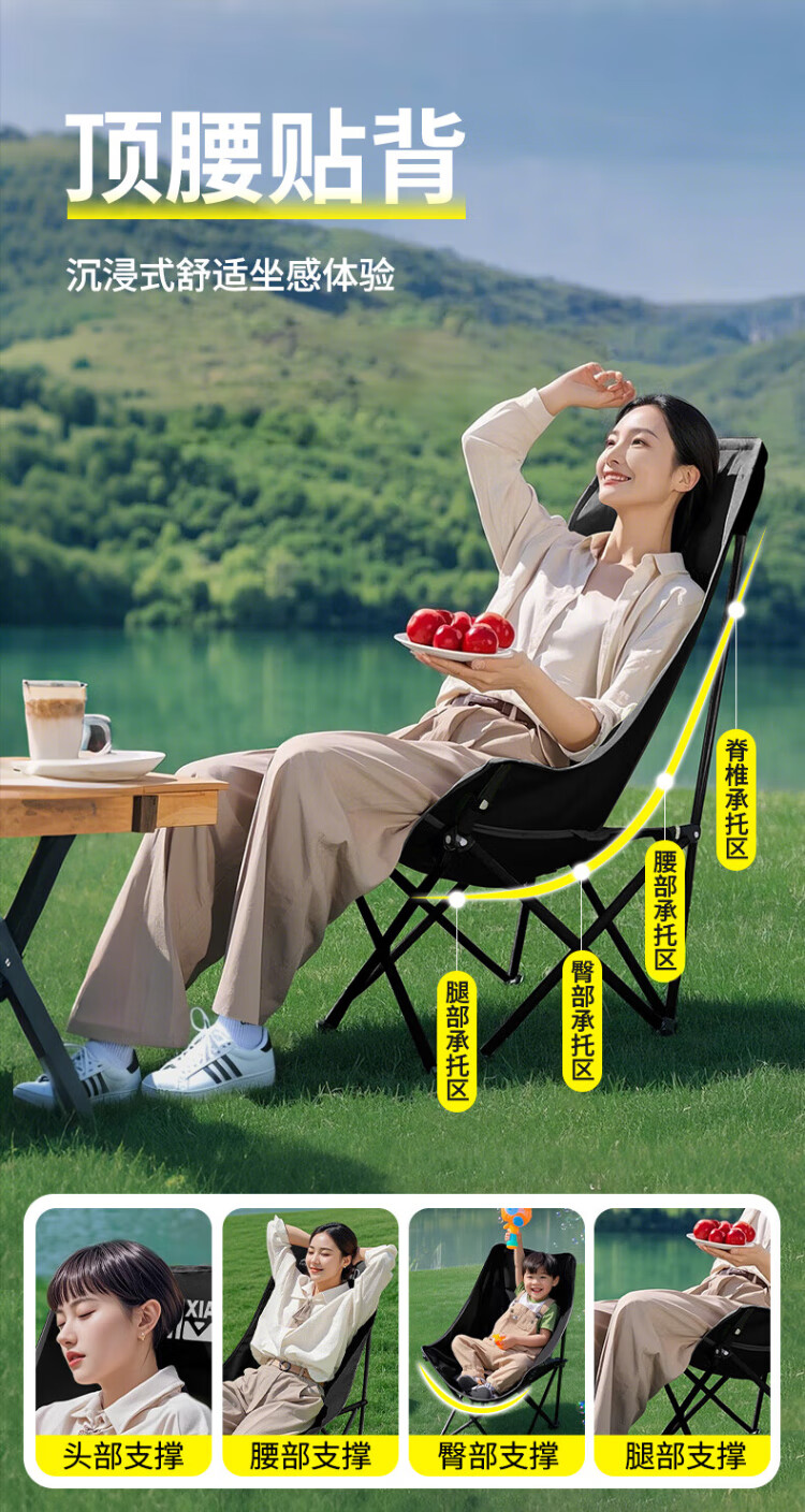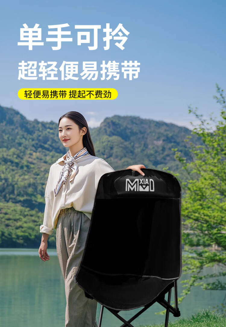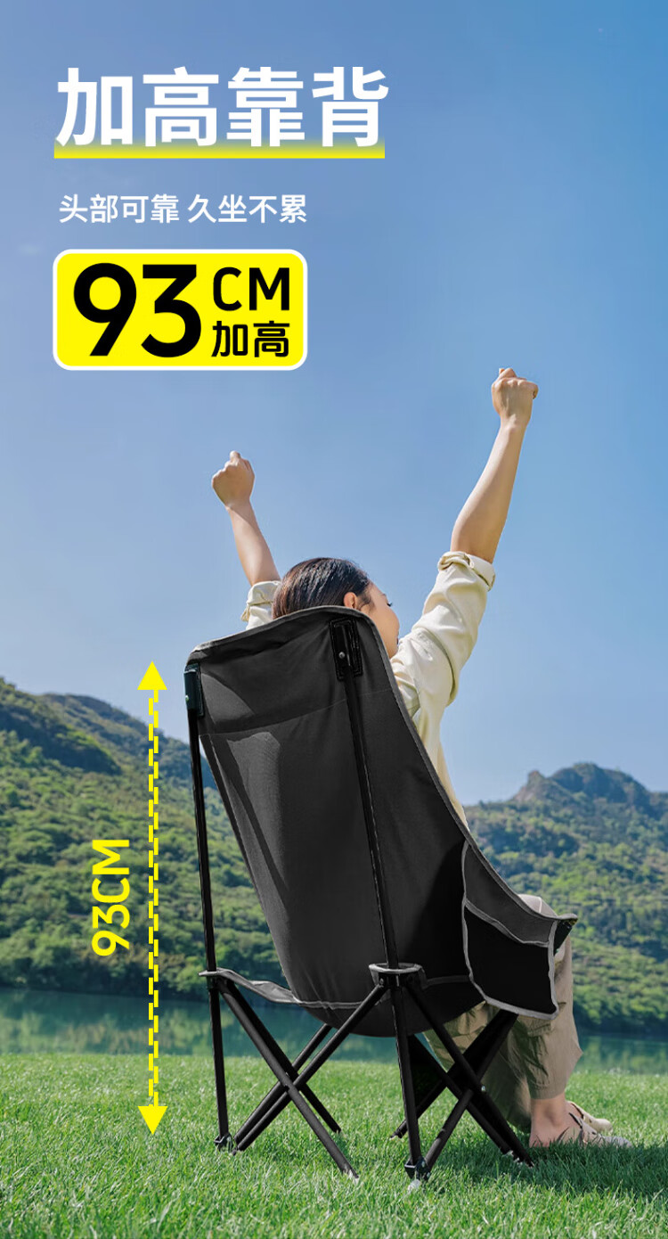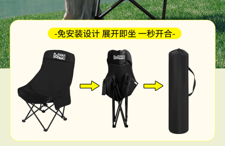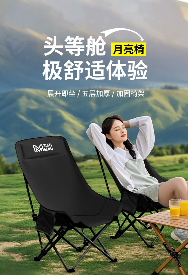 Xiaomo outdoor folding chair folding back chair plus height moon chair camping folding stool portable recliner fishing chair black