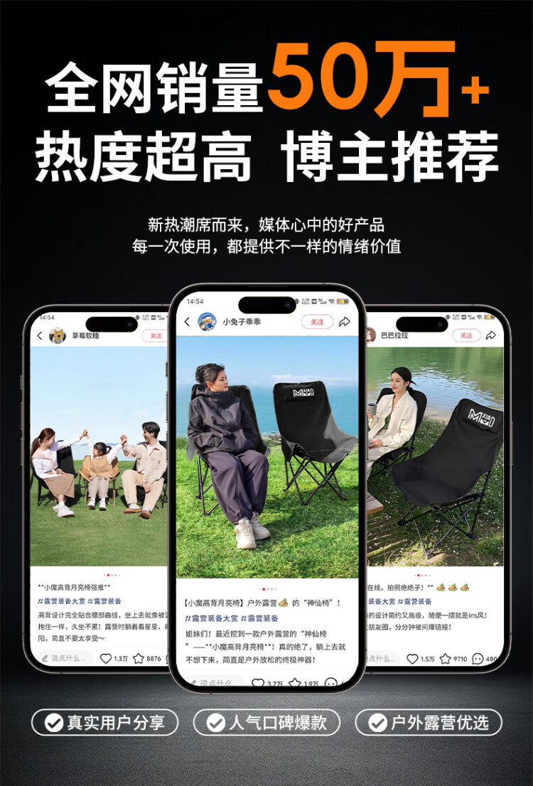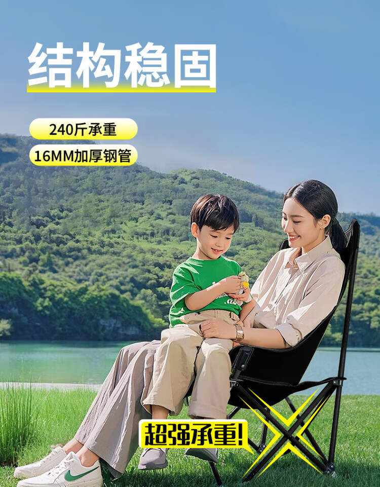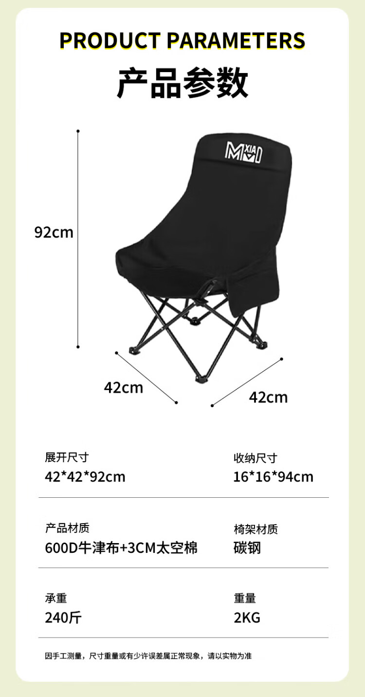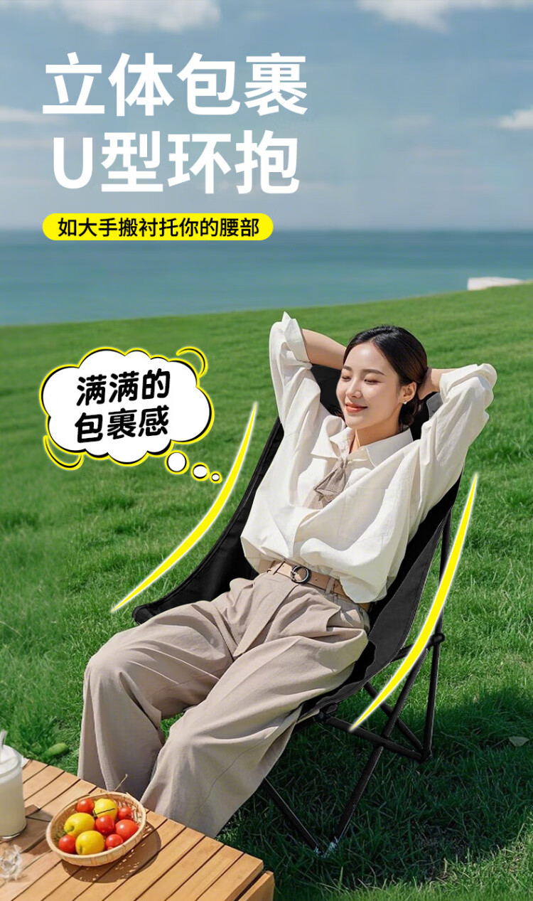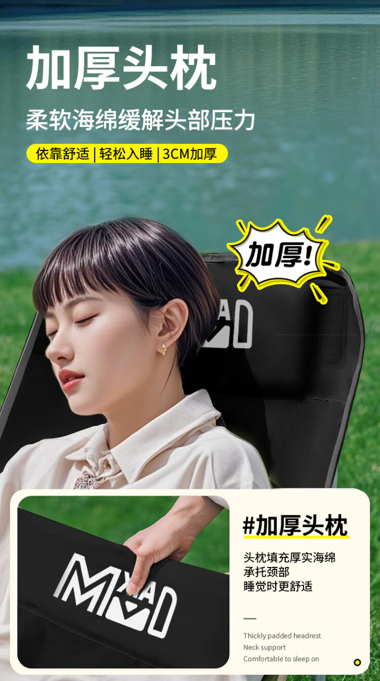 Xiaomo outdoor folding chair folding back chair plus height moon chair camping folding stool portable recliner fishing chair black
