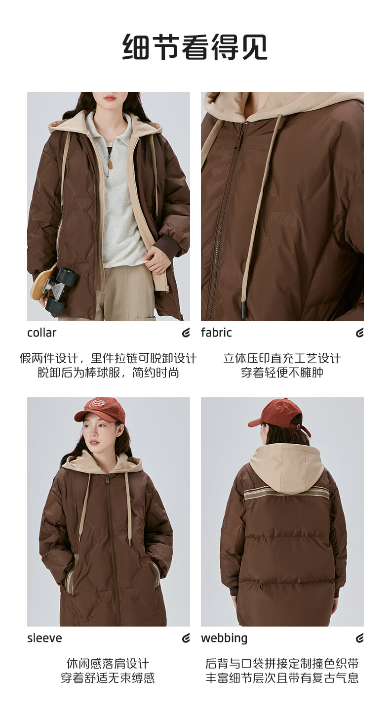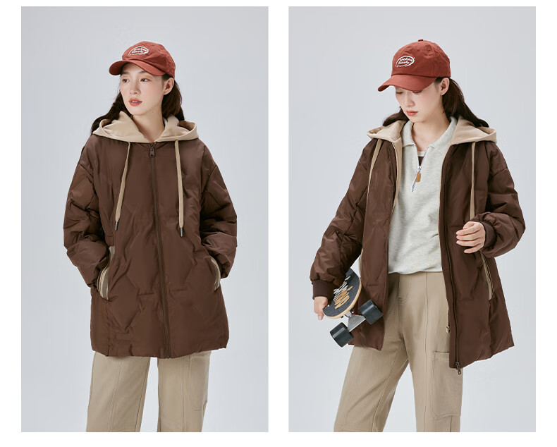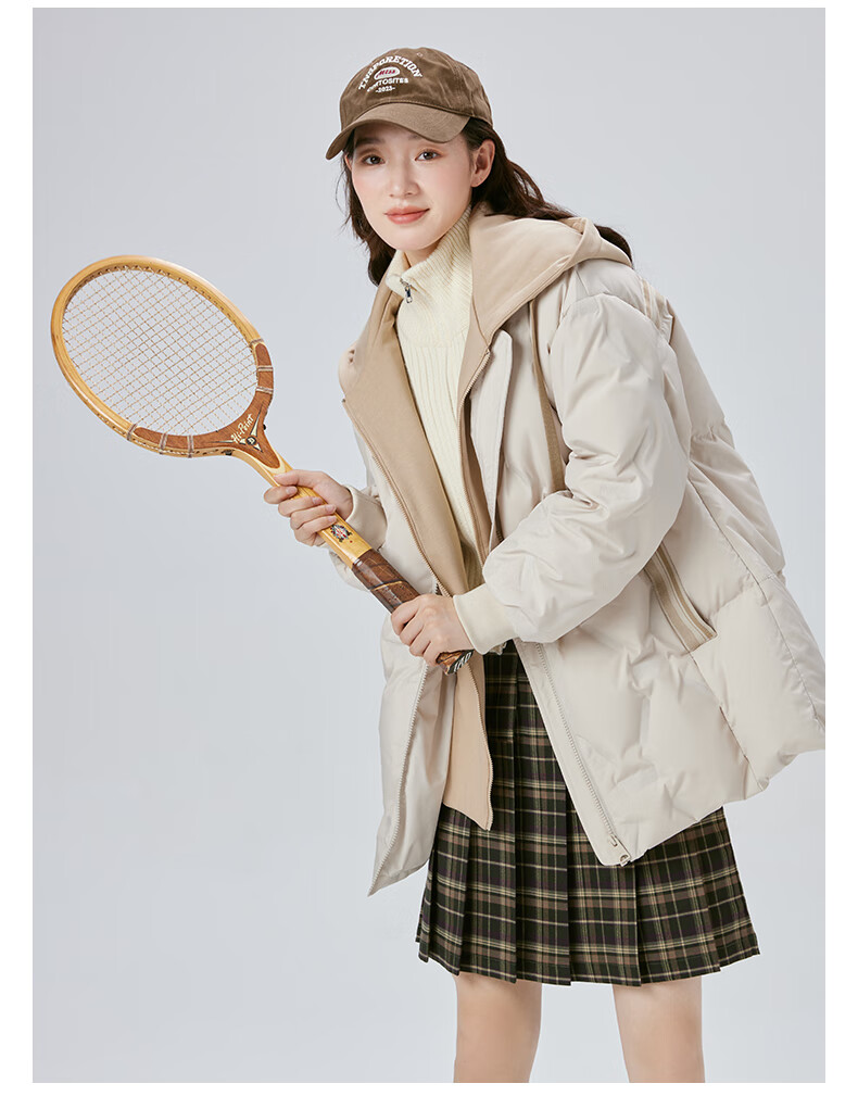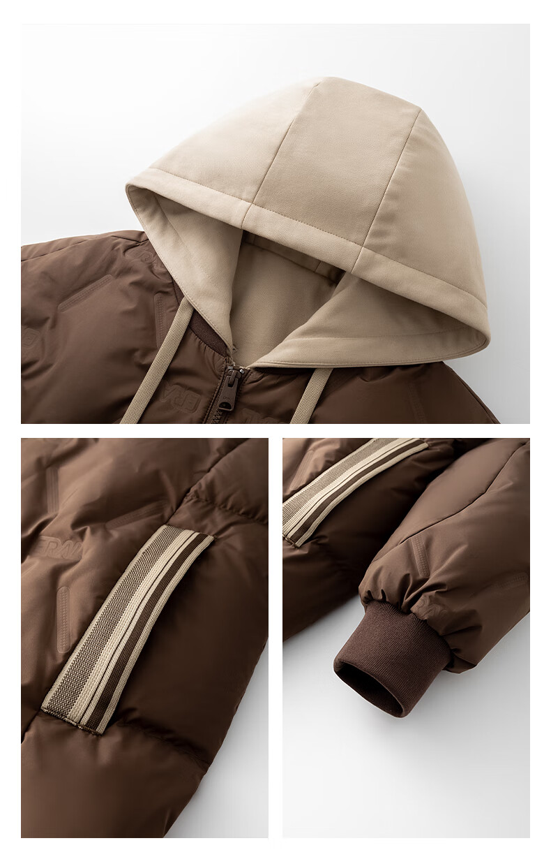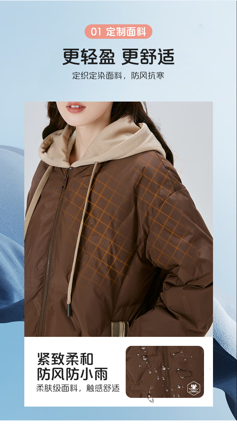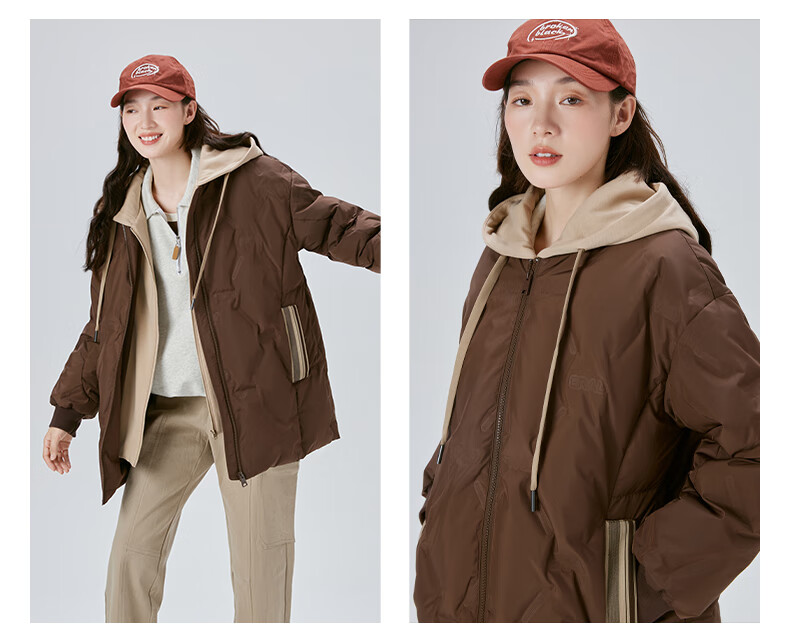 Ai Lai down jacket women's fake two-piece short hooded loose fashion warm baseball jacket honey tea brown 165