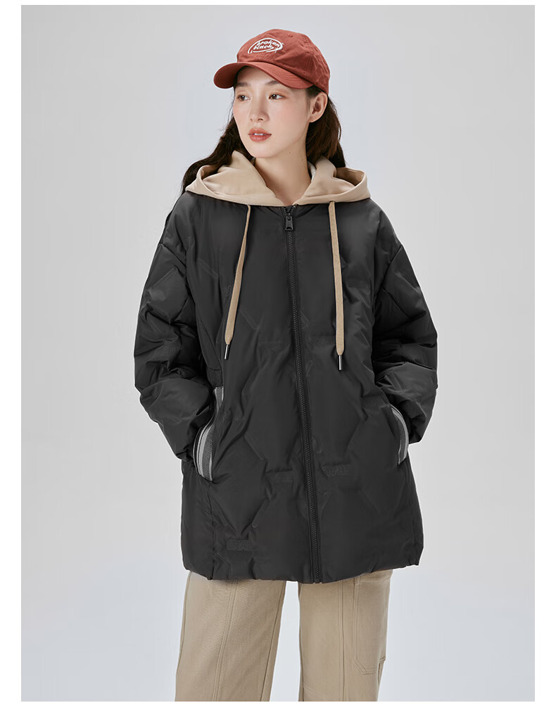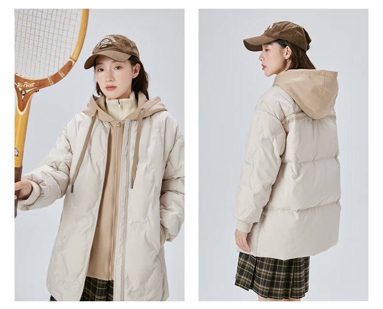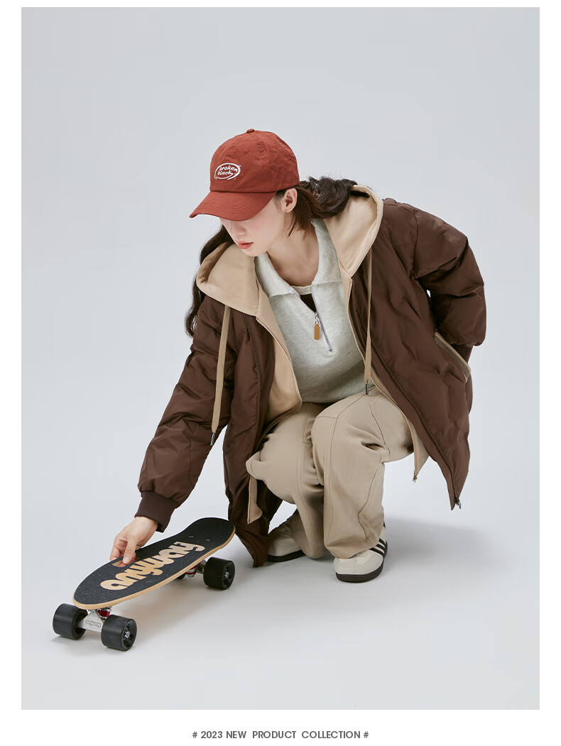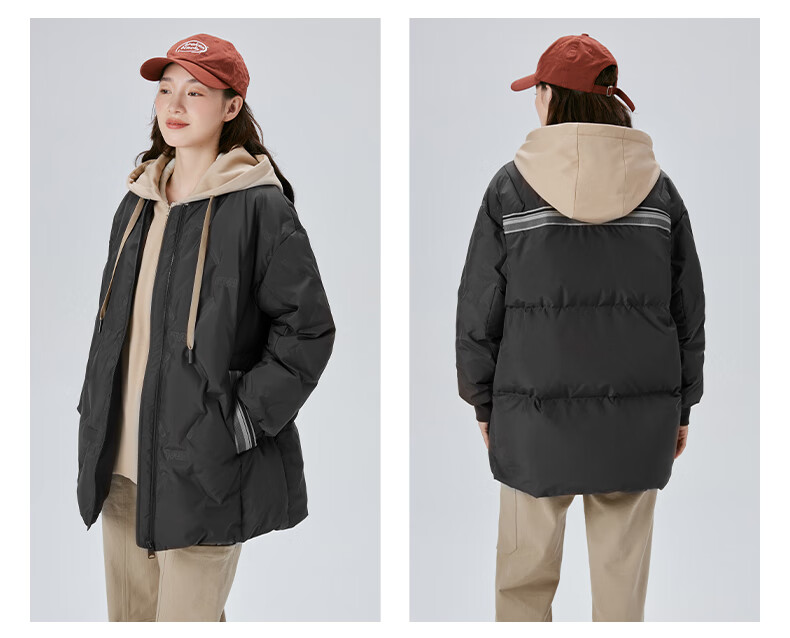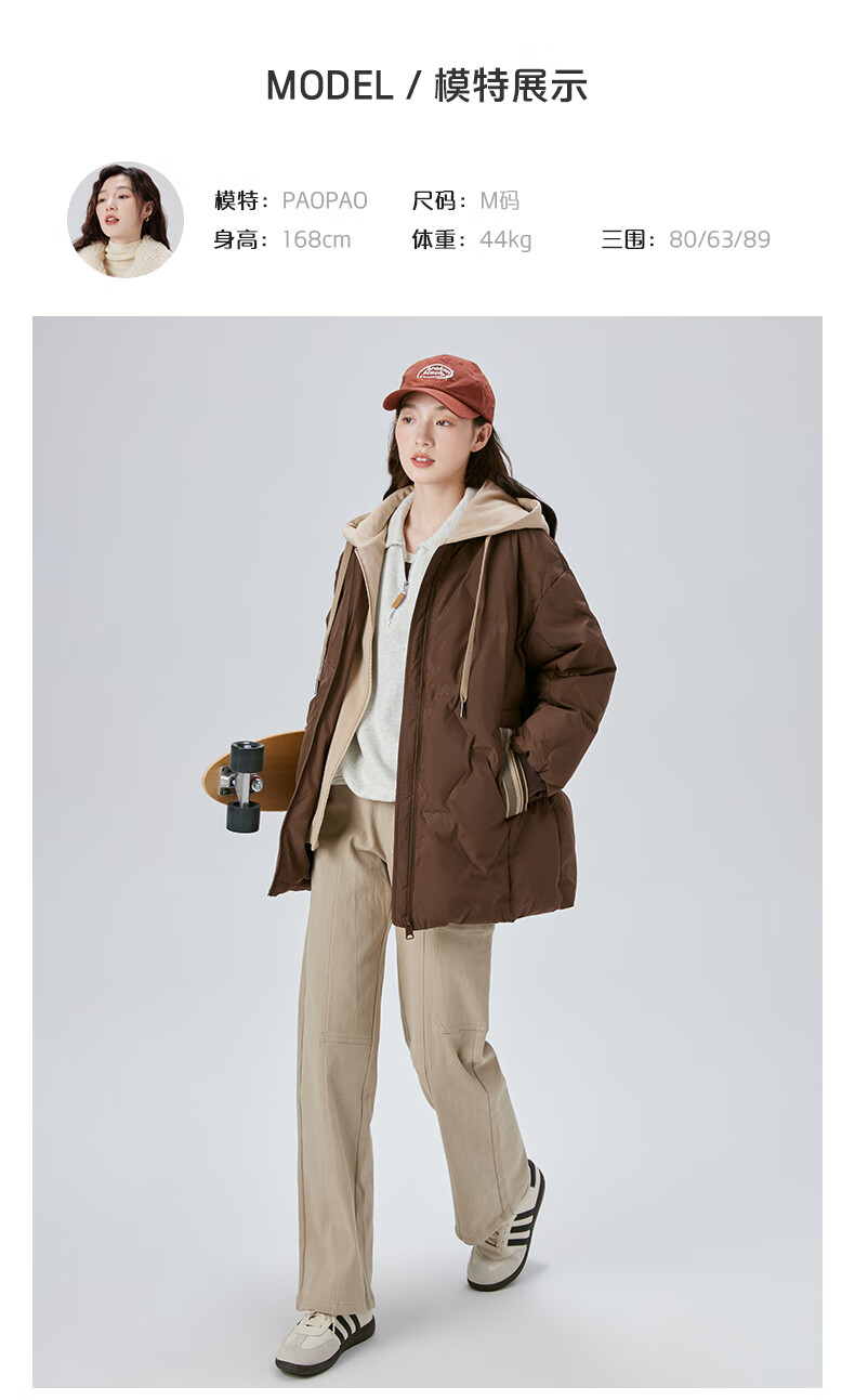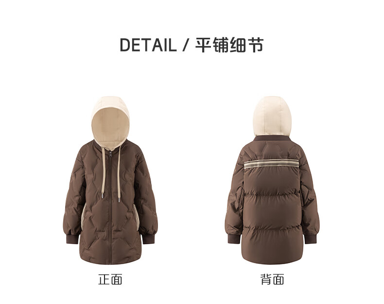 Ai Lai down jacket women's fake two-piece short hooded loose fashion warm baseball jacket honey tea brown 165