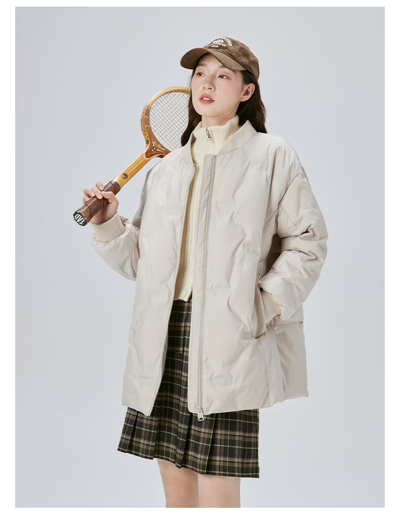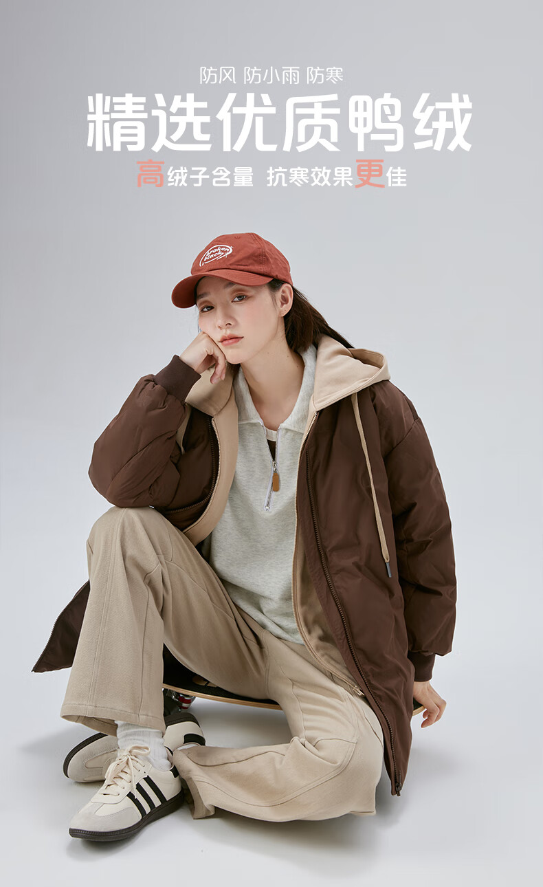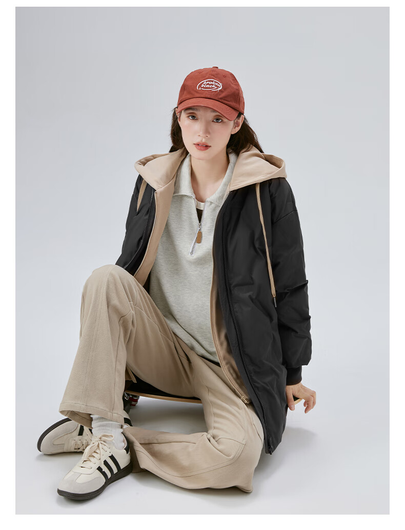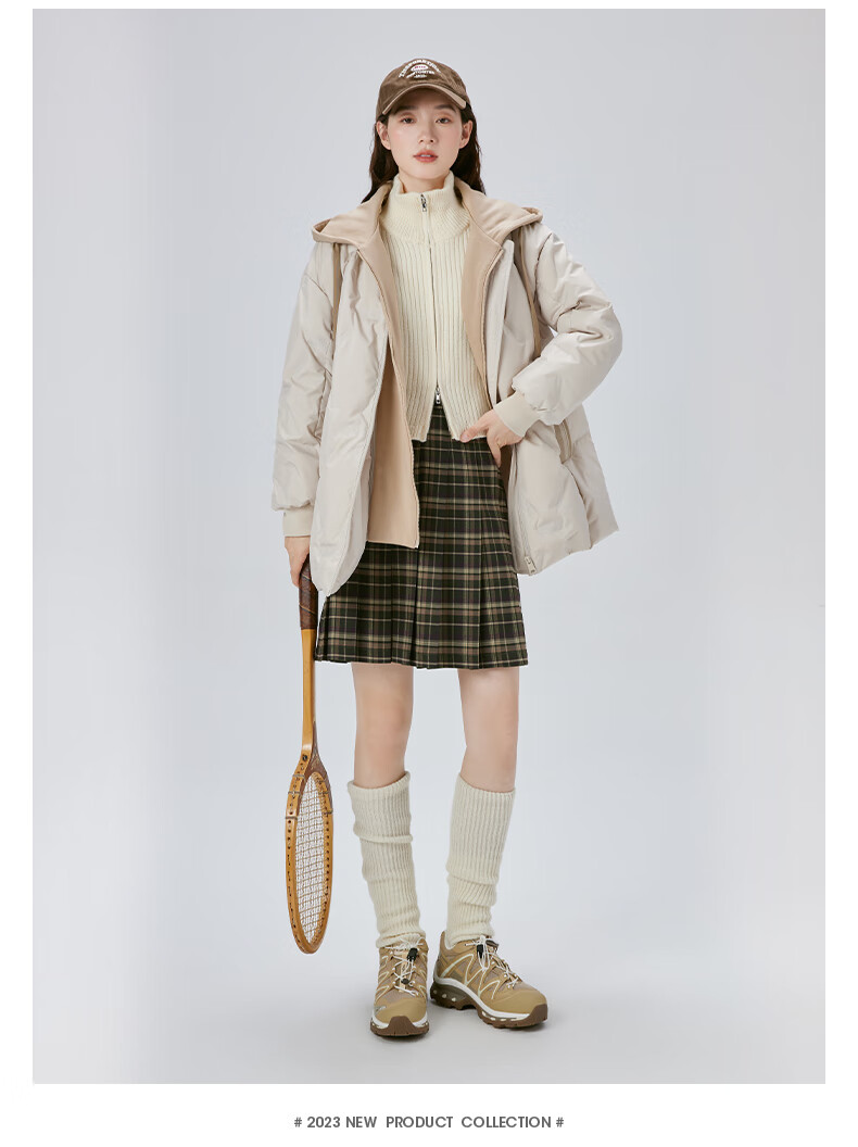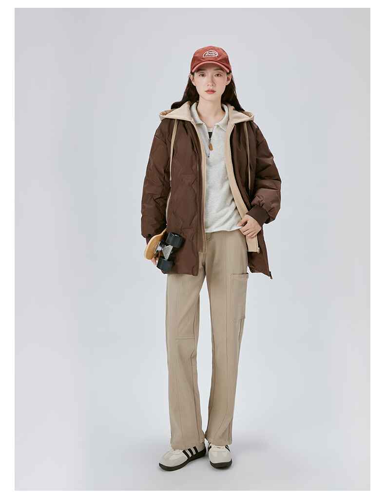 Ai Lai down jacket women's fake two-piece short hooded loose fashion warm baseball jacket honey tea brown 165