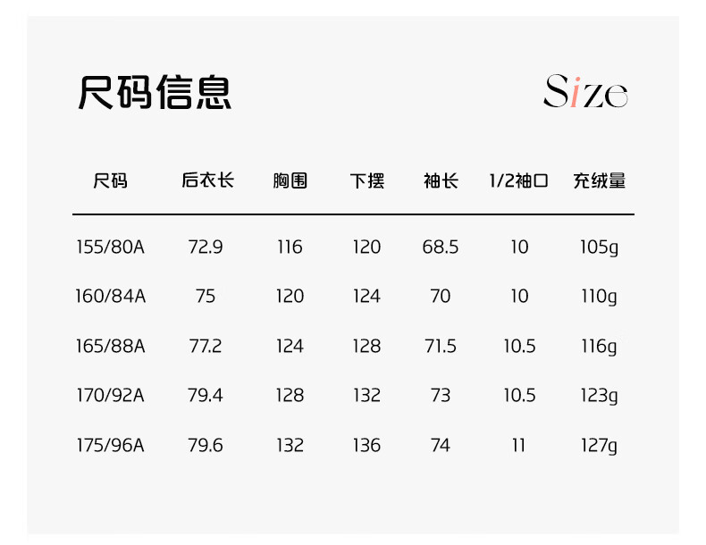 China (cm) 160-165/84-86 165-170 / 88-90 167-172 / 92-96 168-173 / 98-102 170-176 / 106-110
