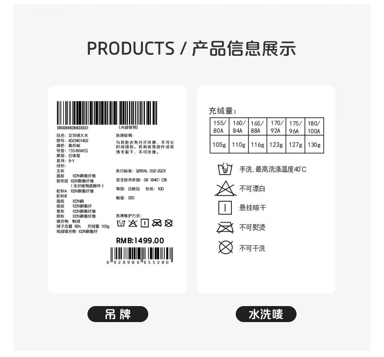 China (cm) 165 / 88-90 170 / 96-98 175 / 108-110 180 / 118-122 185 / 126-130