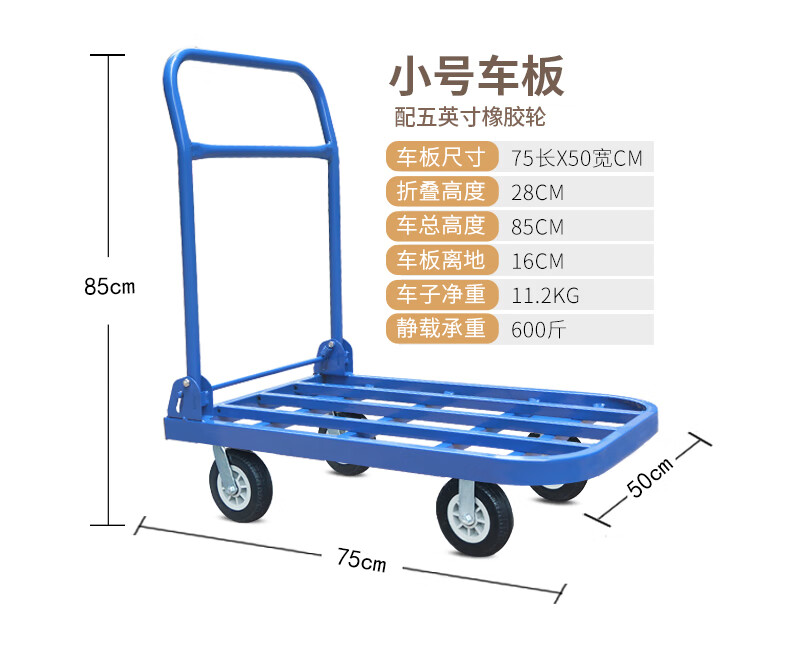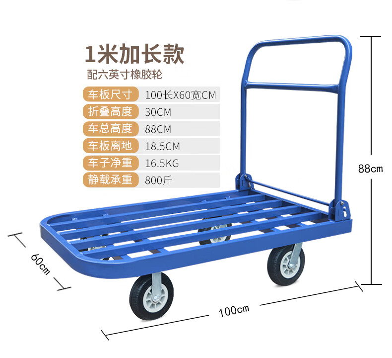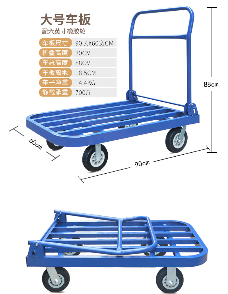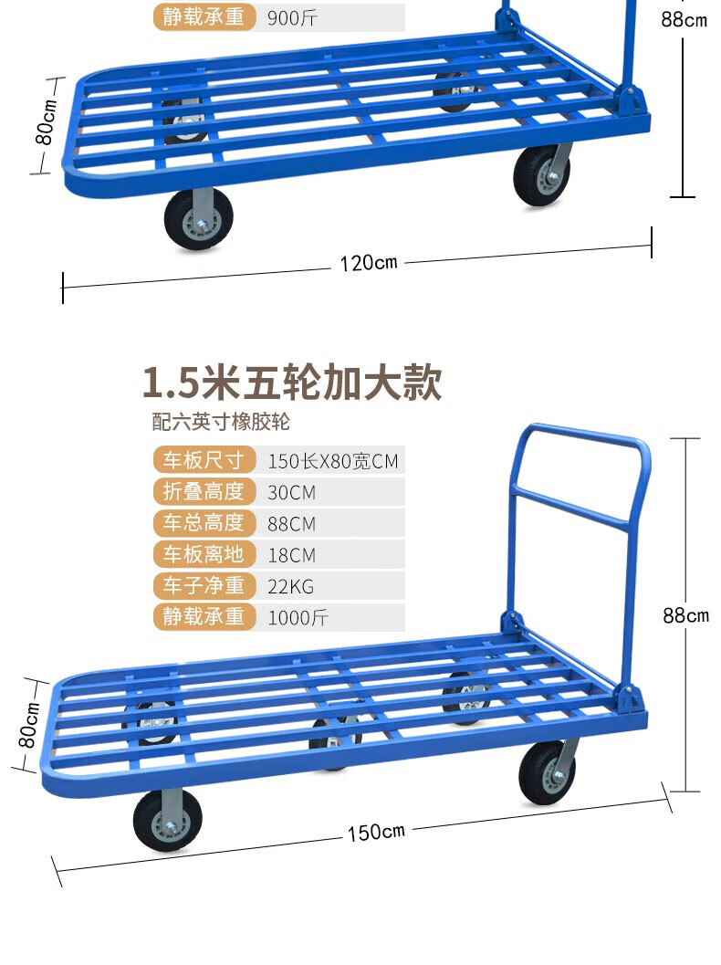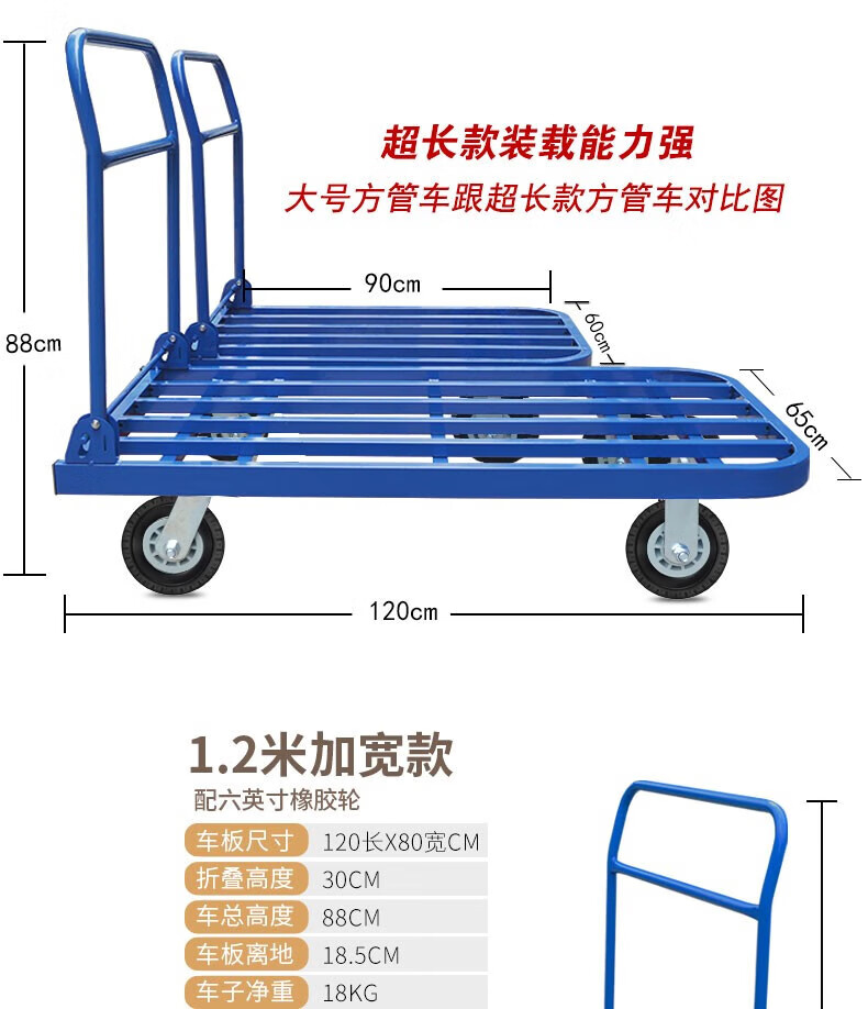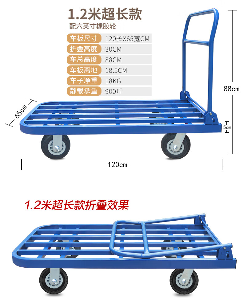 Handun trolley, flatbed, small trolley, trailer, folding trolley, truck, truck, driver, pull truck, 120*80 with wear-resistant nylon wheels