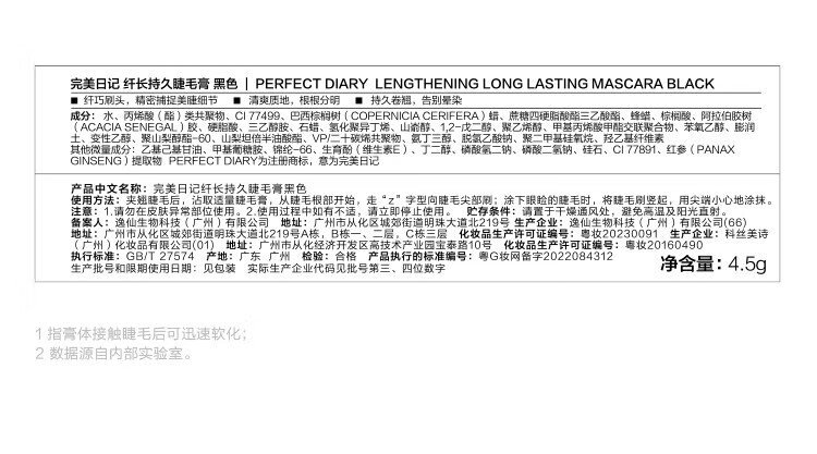 Perfect Diary Long-Lasting Mascara Black, Not Easy to Smudge, Fast Setting 4.5g Birthday Gift