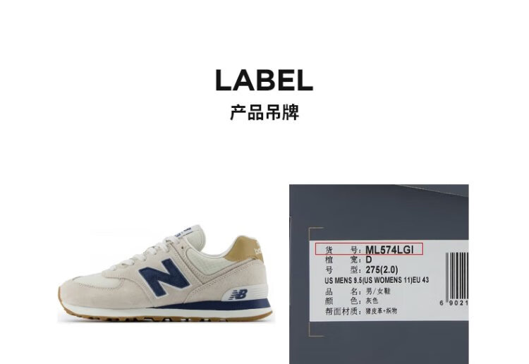 NEW BALANCE Casual Shoes Men's Shoes Women's Shoes Retro Comfortable Breathable Versatile Light Sports Shoes 574 Series ML574LGI 40.5