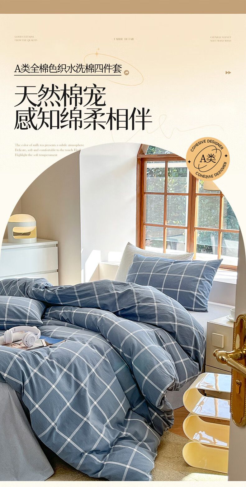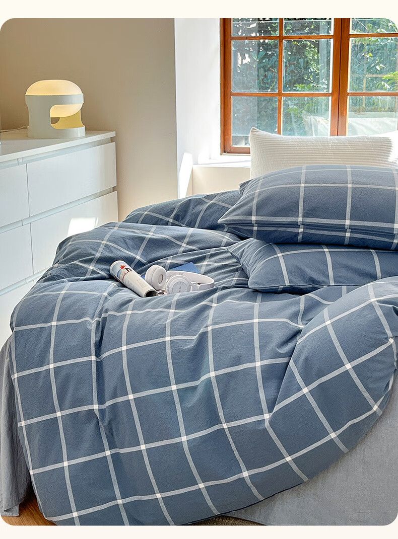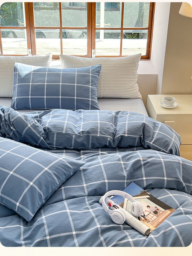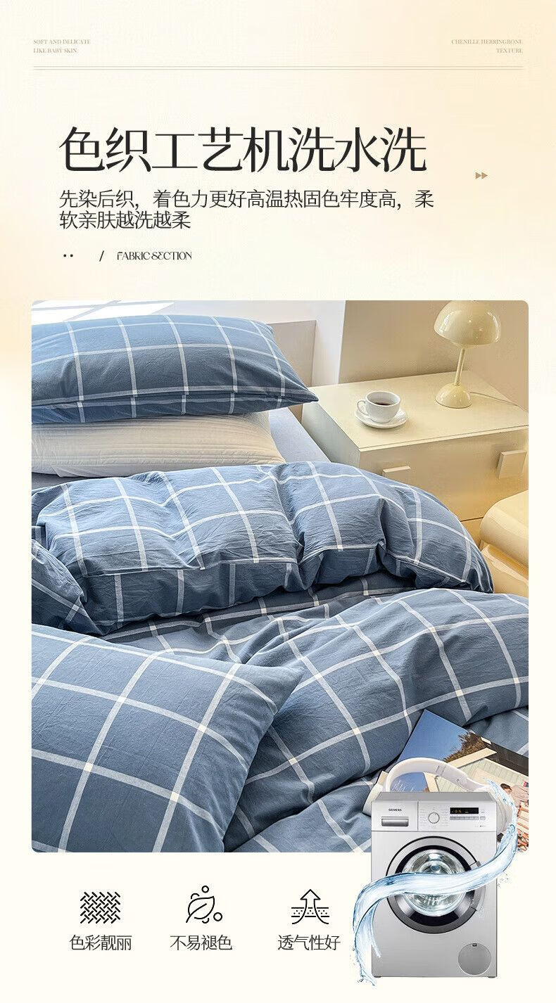 Yingyinguo four-piece bed set Japanese-style yarn-dyed washed cotton unprinted style sheets and fitted sheets bedding