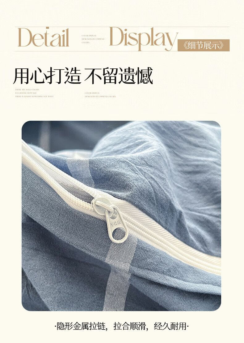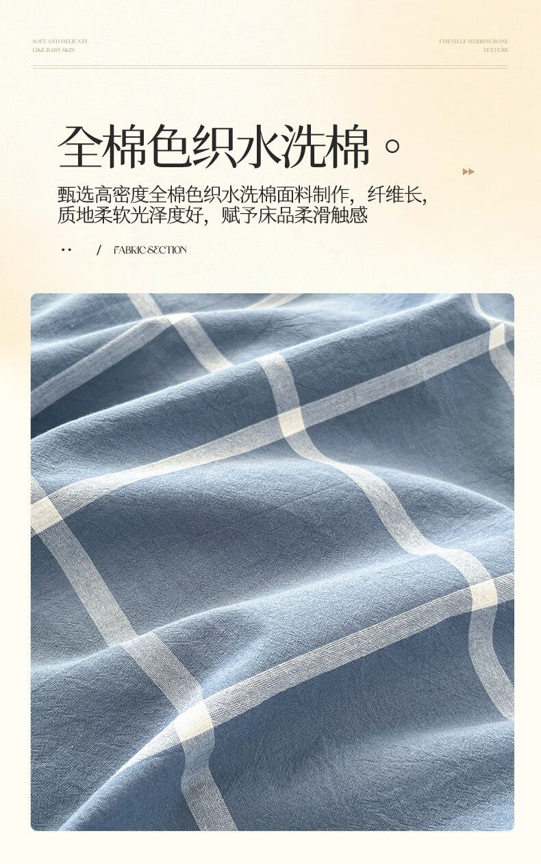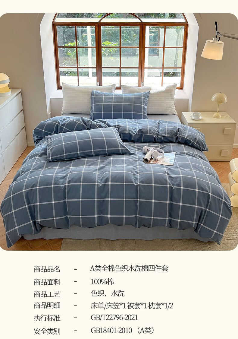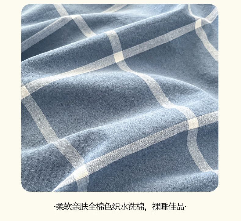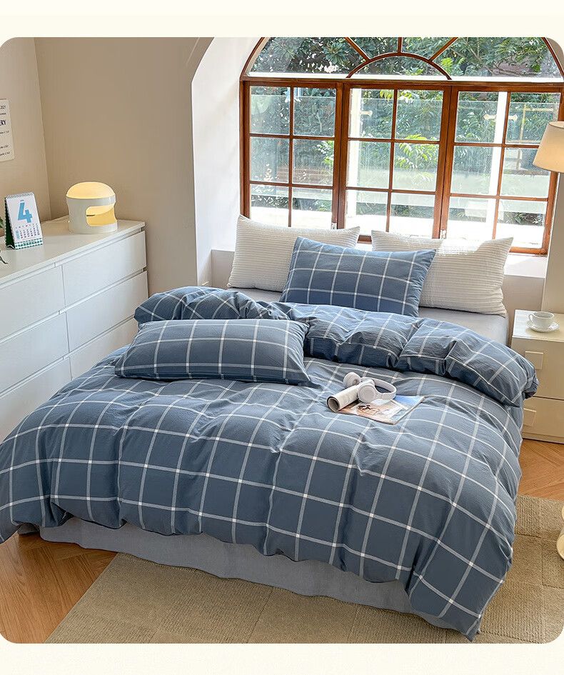 Yingyinguo four-piece bed set Japanese-style yarn-dyed washed cotton unprinted style sheets and fitted sheets bedding