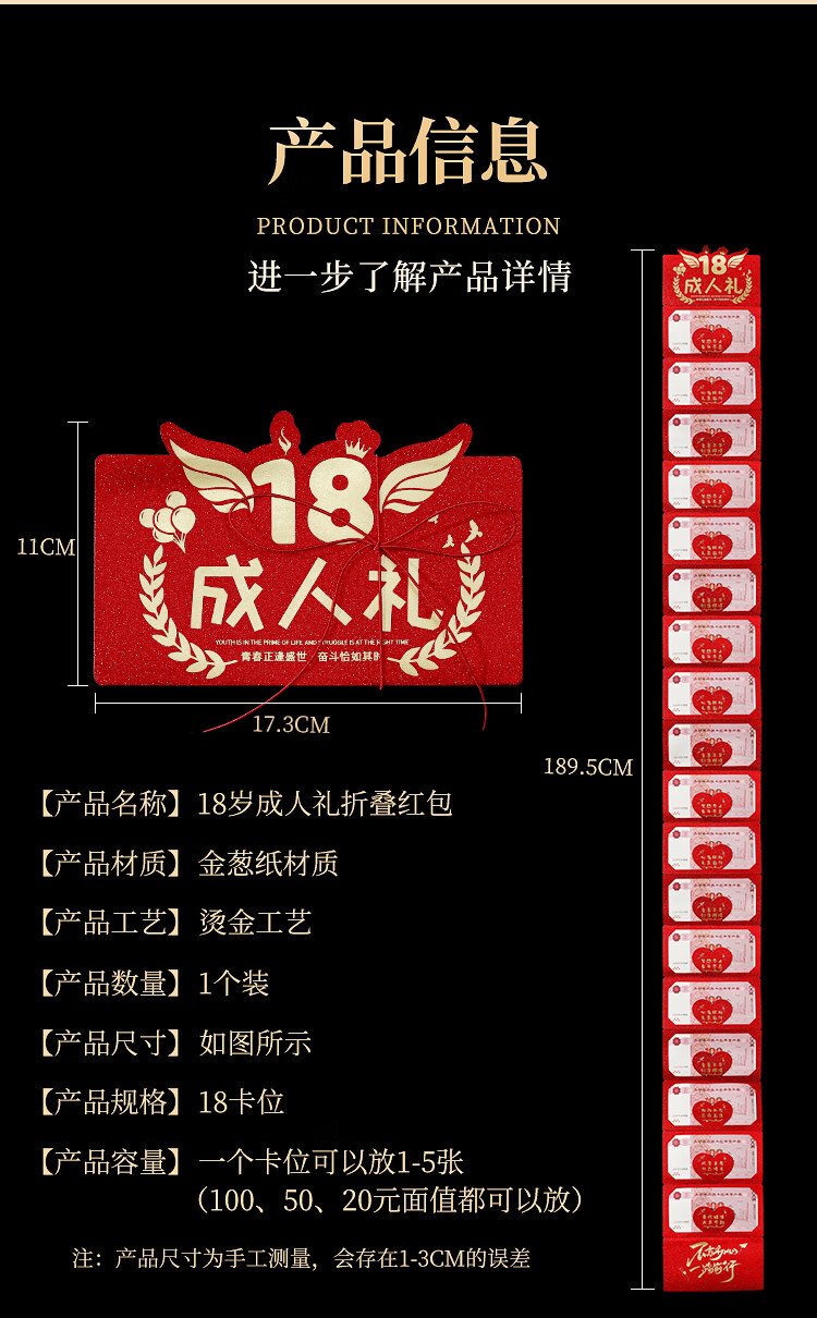 Yanyuji Adult Gift Red Packet Gift for Men and Women 18-year-old Surprise Creative 18-year-old Ceremony Birthday Enrollment Folding 18 Cards