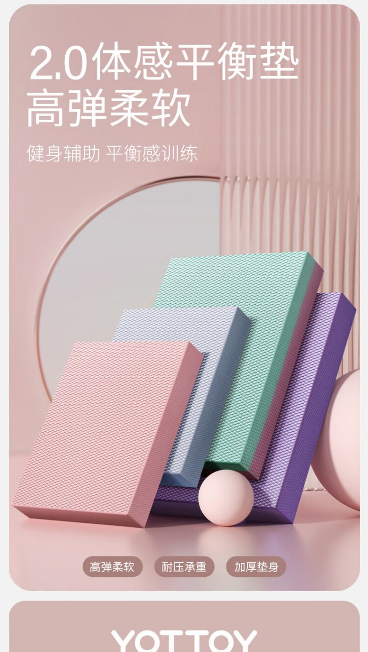 Yottoy balance mat yoga mat flat support core training yoga fitness silent non-slip thickened soft tread foam kneeling mat