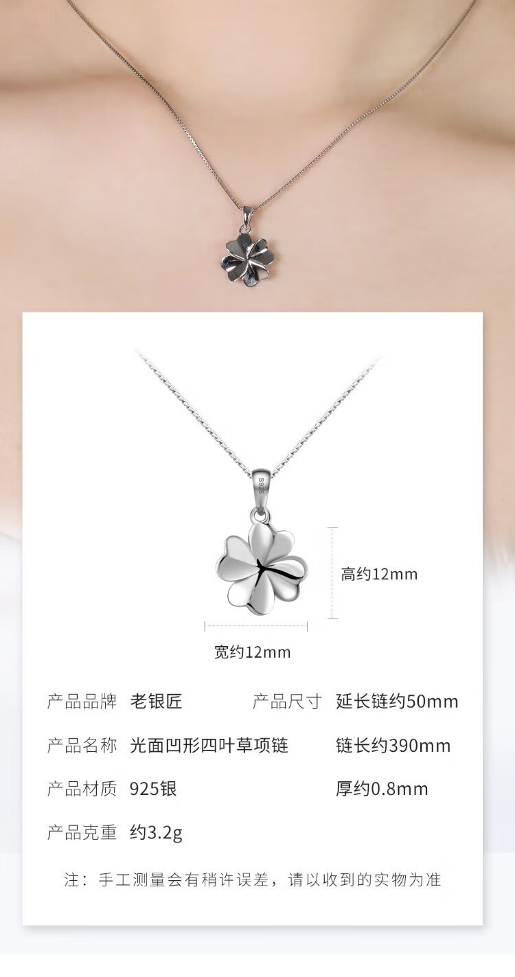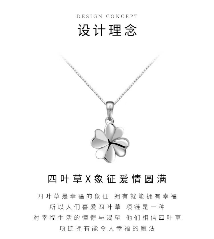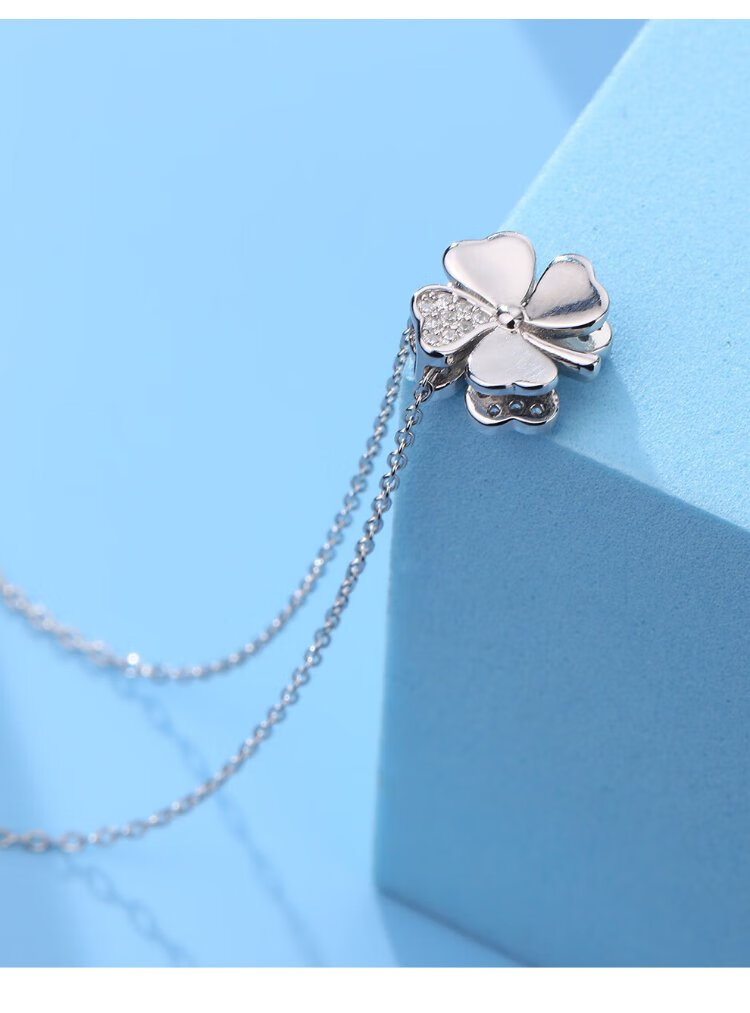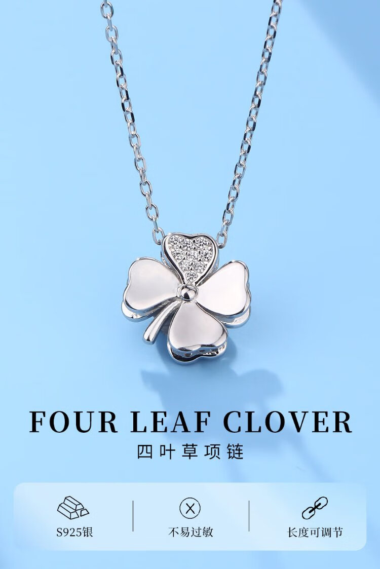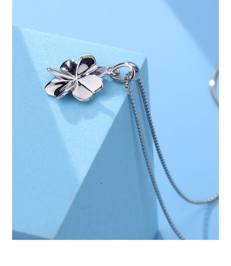Old silversmith s925 silver four-leaf clover necklace as a Chinese Valentine's Day gift for girlfriend, simple, trendy and personalized female pendant, plain silver clavicle chain