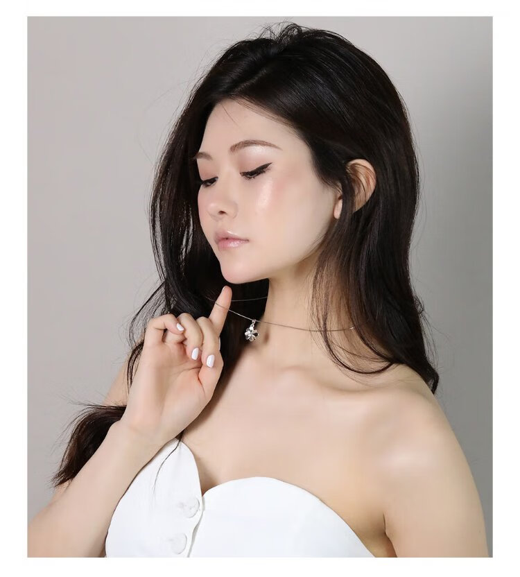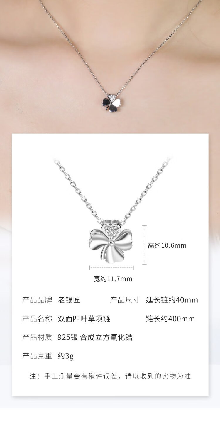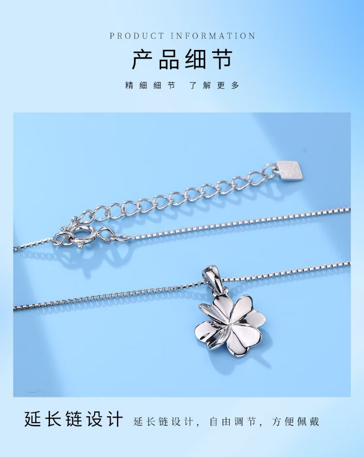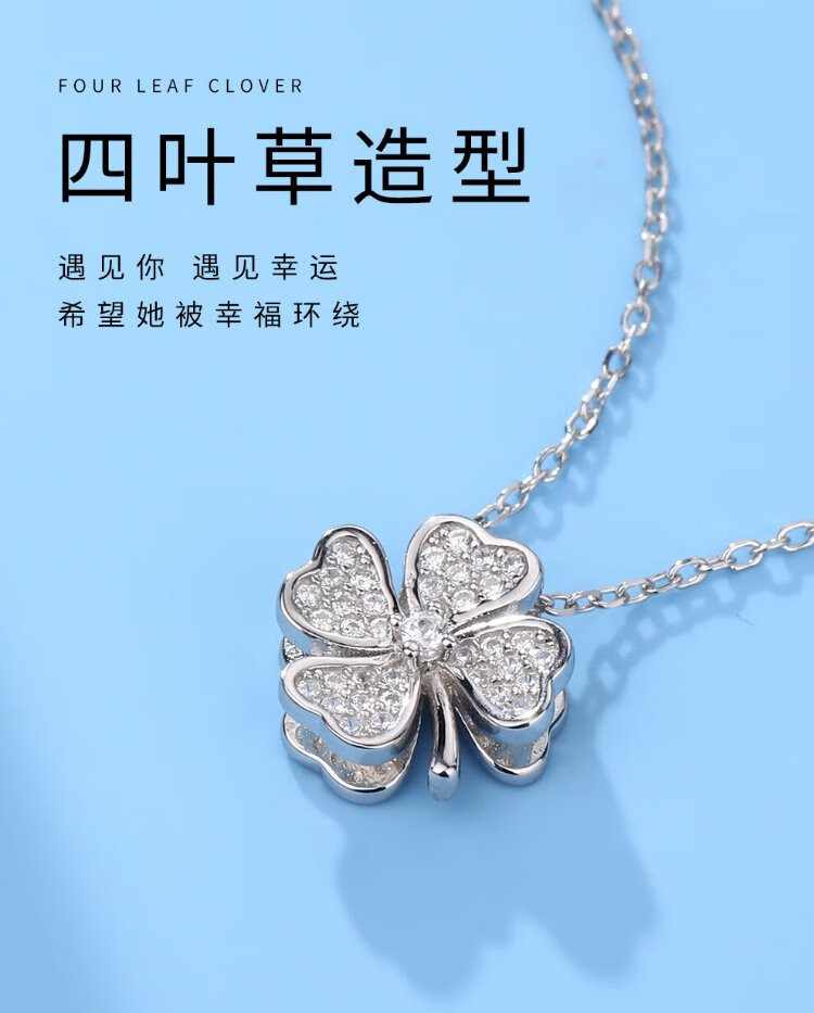Old silversmith s925 silver four-leaf clover necklace as a Chinese Valentine's Day gift for girlfriend, simple, trendy and personalized female pendant, plain silver clavicle chain