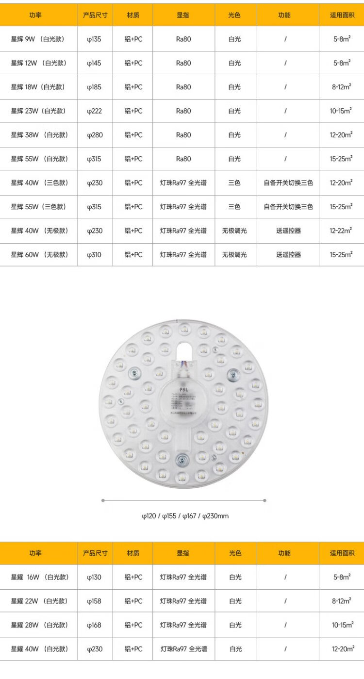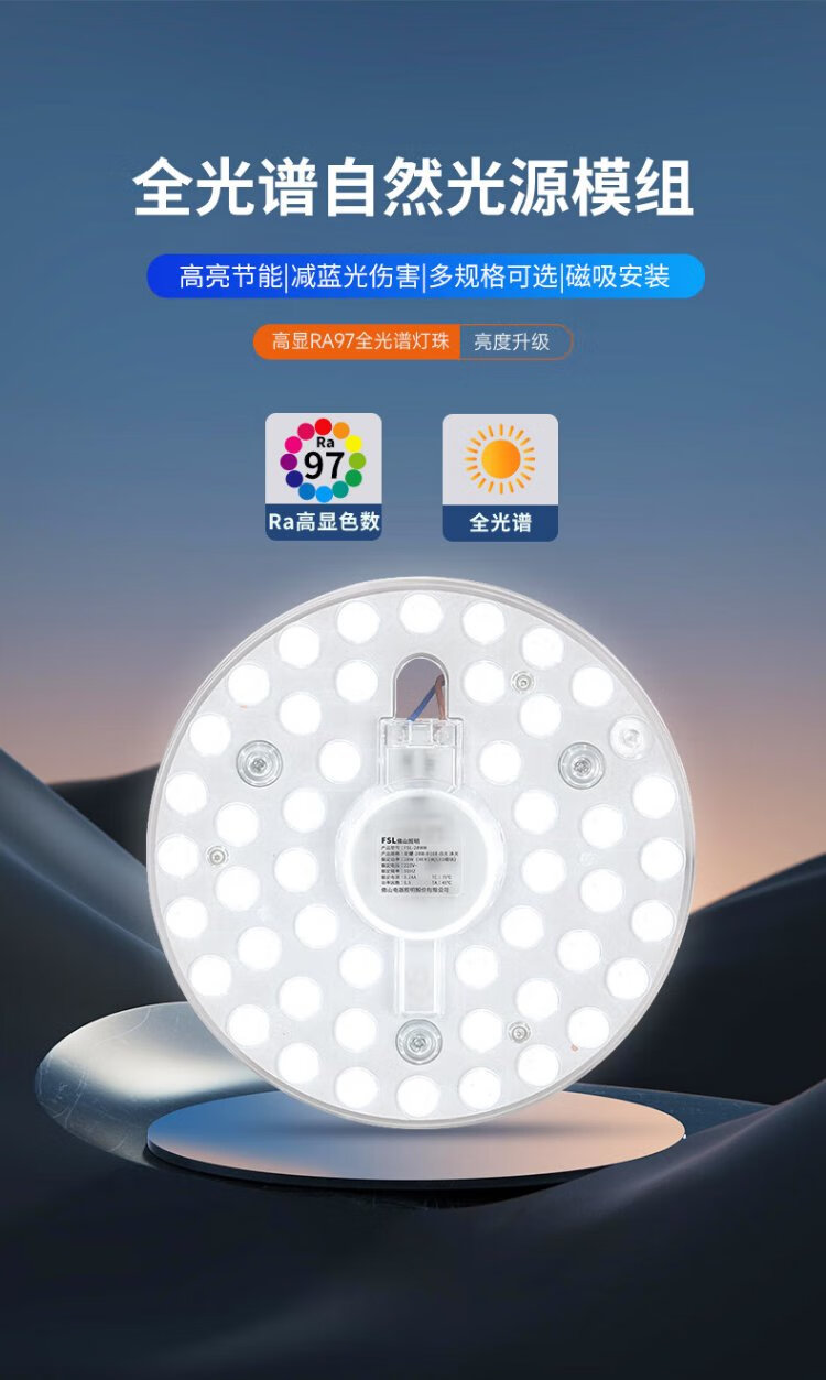 Foshan Lighting (FSL) led ceiling lamp wick modification lamp panel Ra97 high display full spectrum module replacement lamp panel light source full spectrum 28W/positive white light